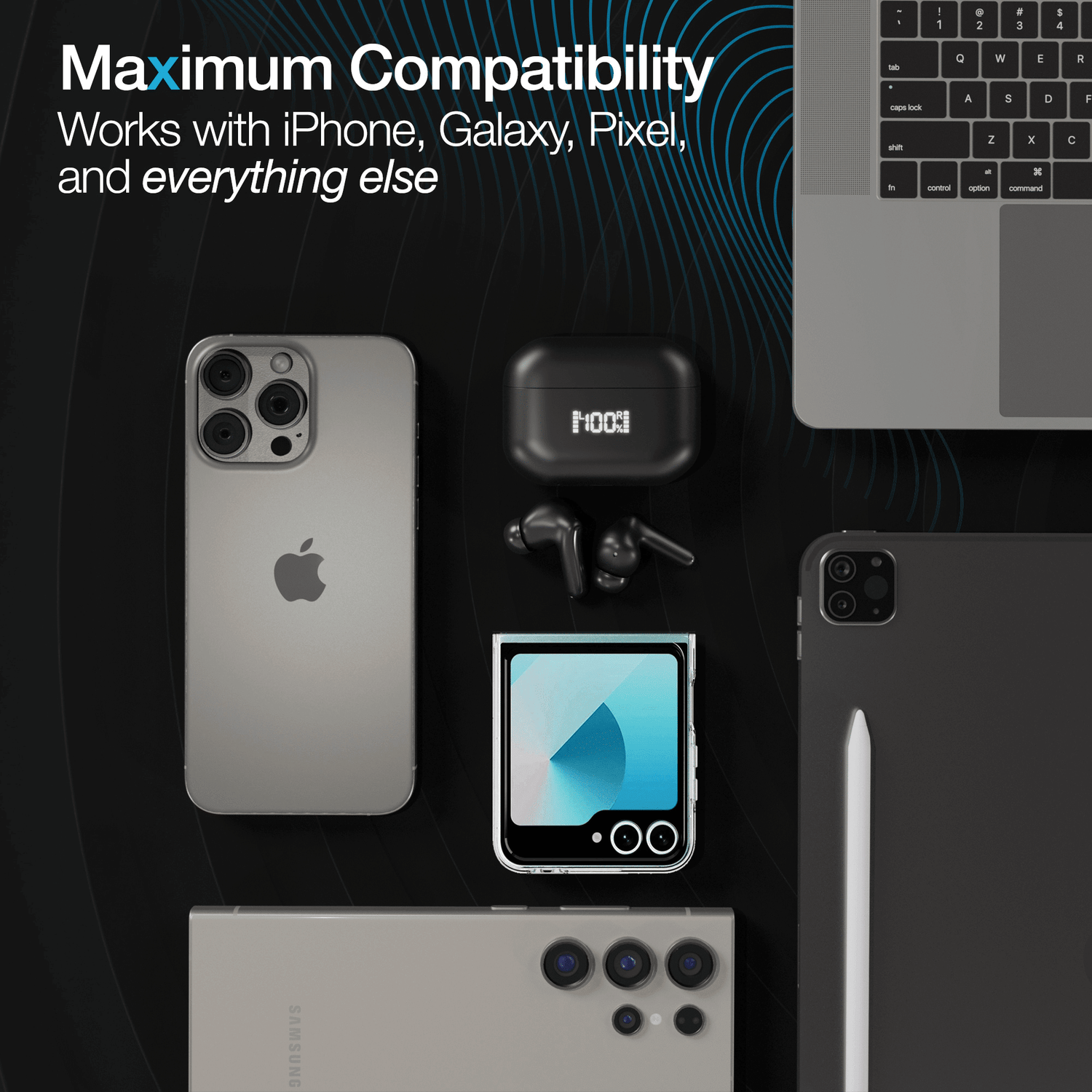 - Includes Wireless Charging Case with Digital Battery Display