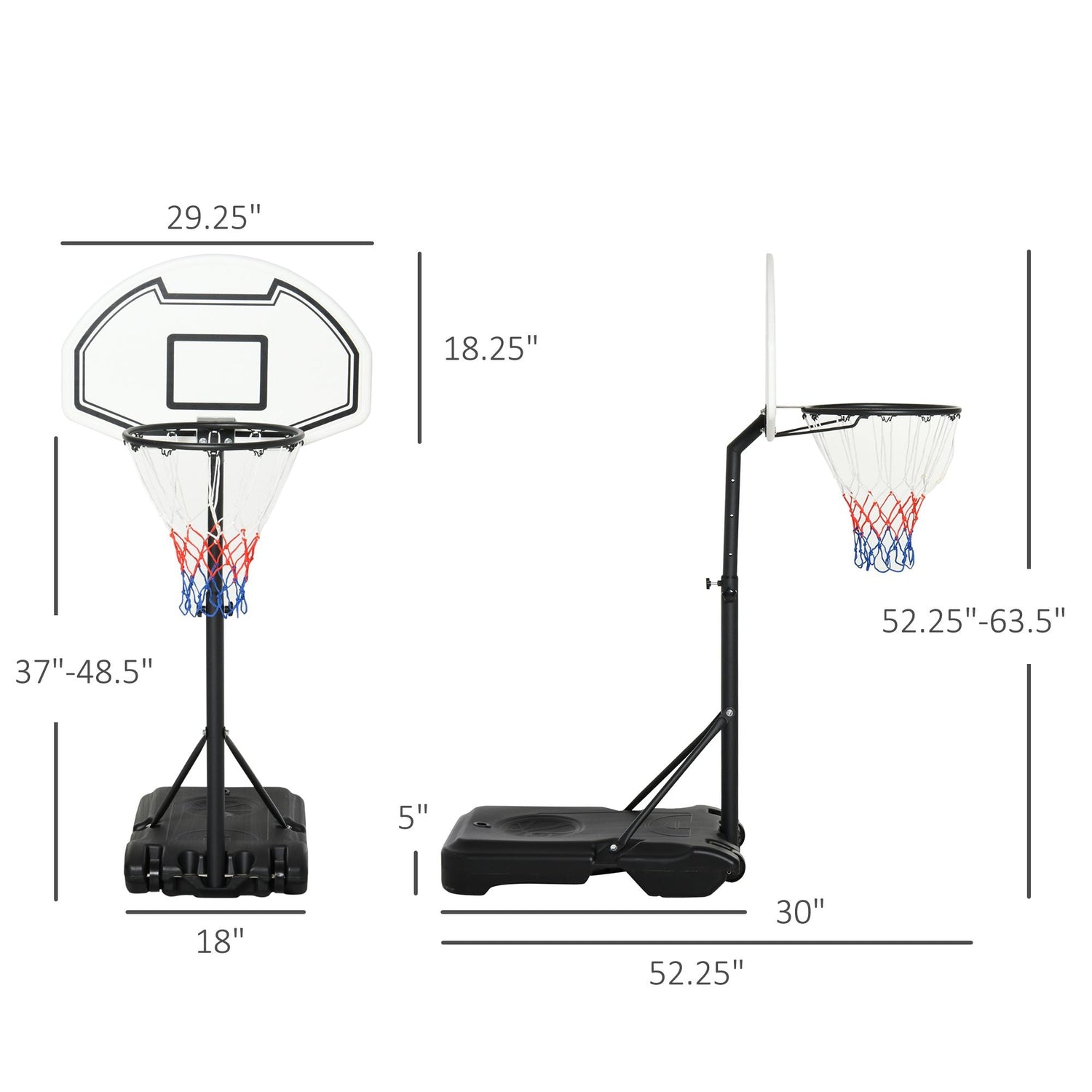 Aosom Height Adjustable Basketball Hoop, Portable Basketball Stand, 30" Backboard, Indoor Outdoor Goals Set for Kids Youth Adults