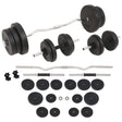 This versatile barbell and dumbbell set is perfect for chest, biceps, arms, triceps and back muscles. It includes two 22 lb. plates, four 11 lb. plates, four 4.4 lb. plates, four 2.8 lb. plates, one barbell bar and two dumbbell bar and has a total weight of about 132.3 lb.