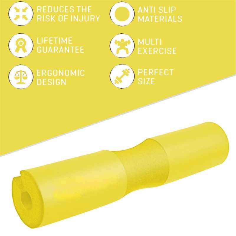 The barbell pad which adopts high-density 1.3in thick memory sponge, non-slip surface.