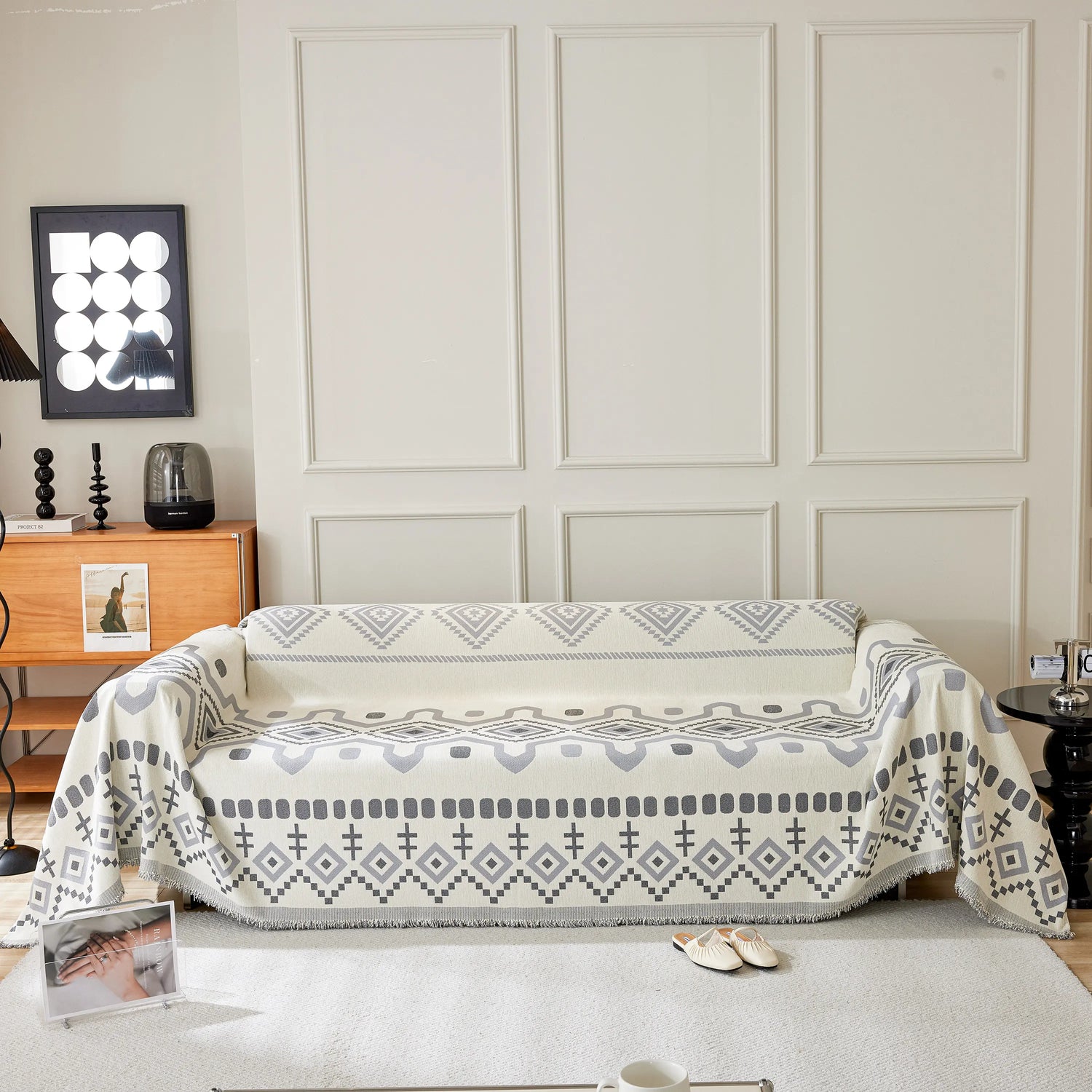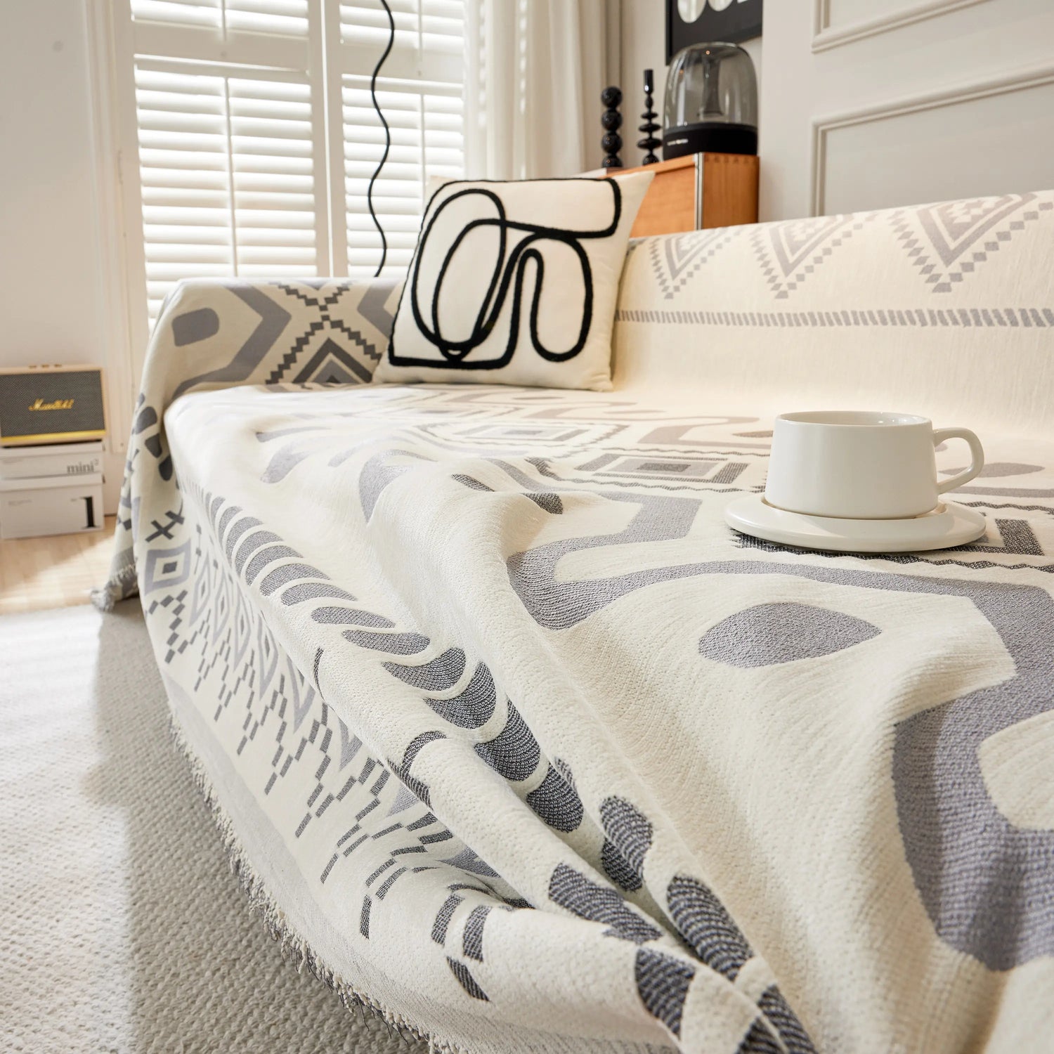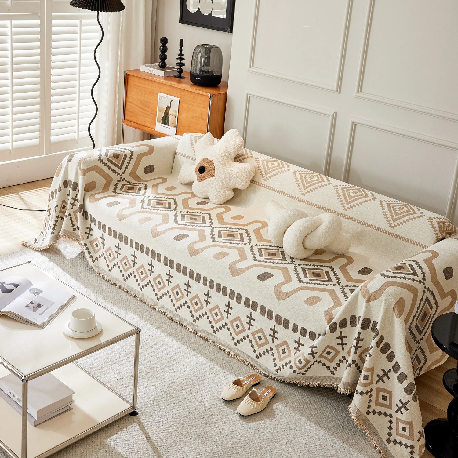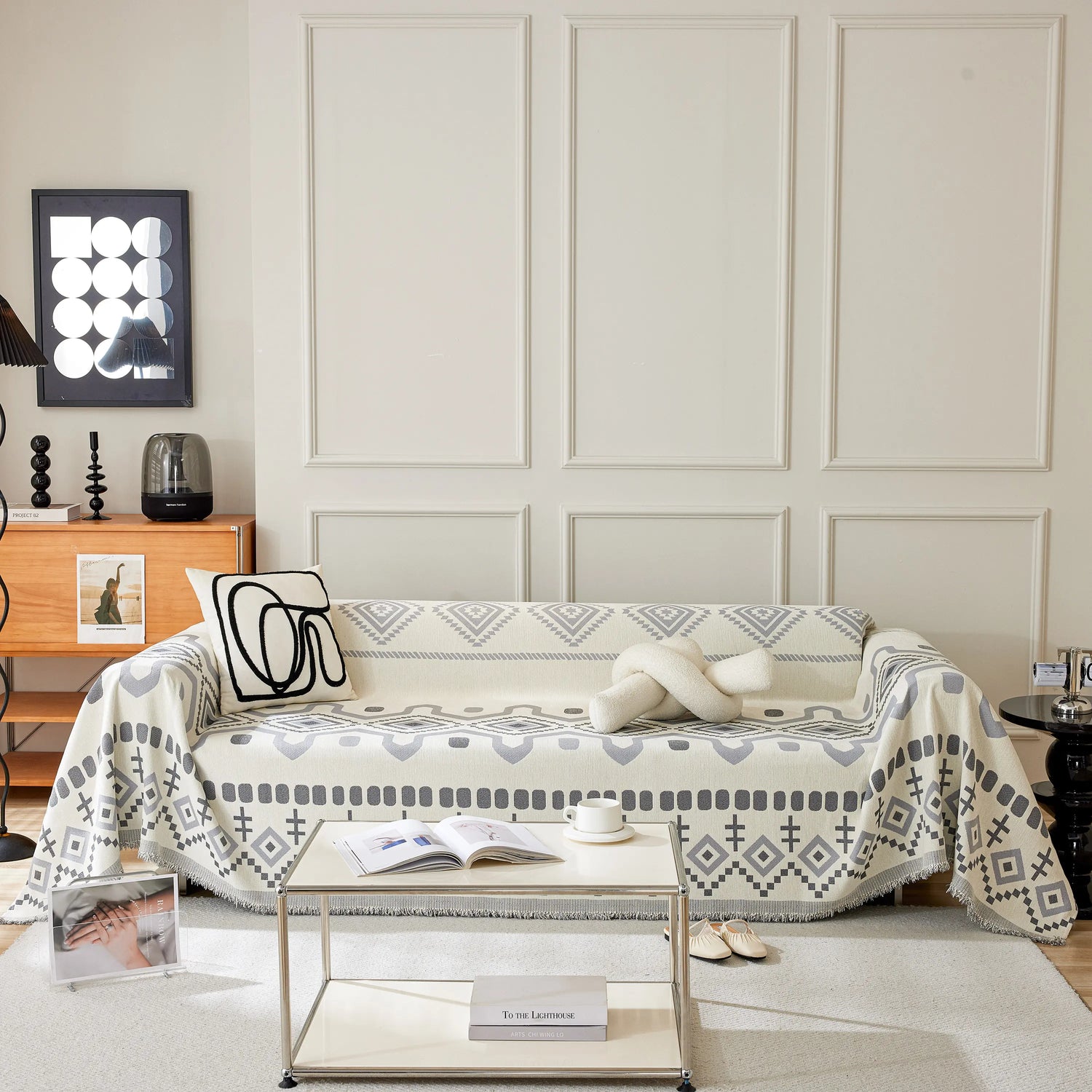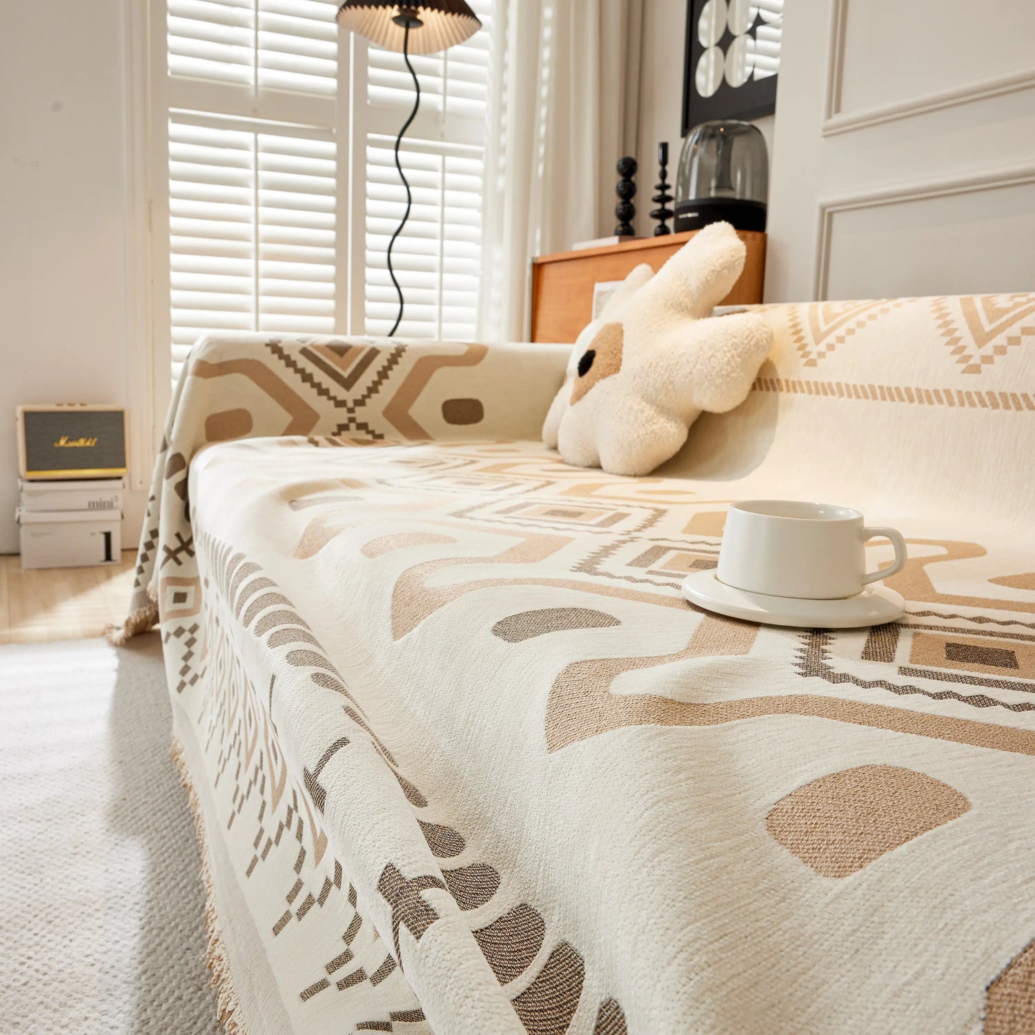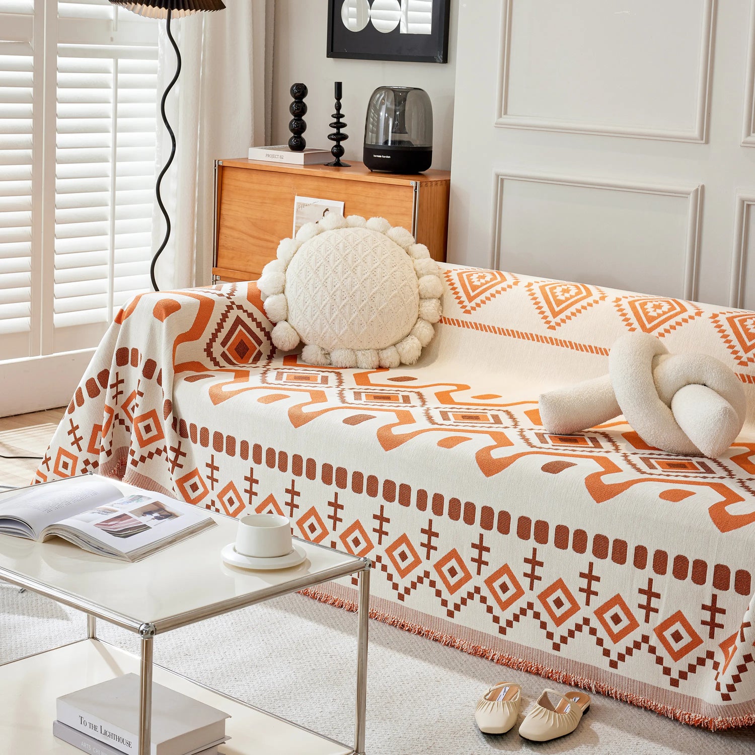 This boho geometric chenille throw sofa cover features soft, textured fabric with a stylish design. It provides full coverage while remaining breathable and comfortable. Ideal as a decorative couch blanket or furniture protector, it adds a cozy and modern touch to any living space. Machine washable for easy care.