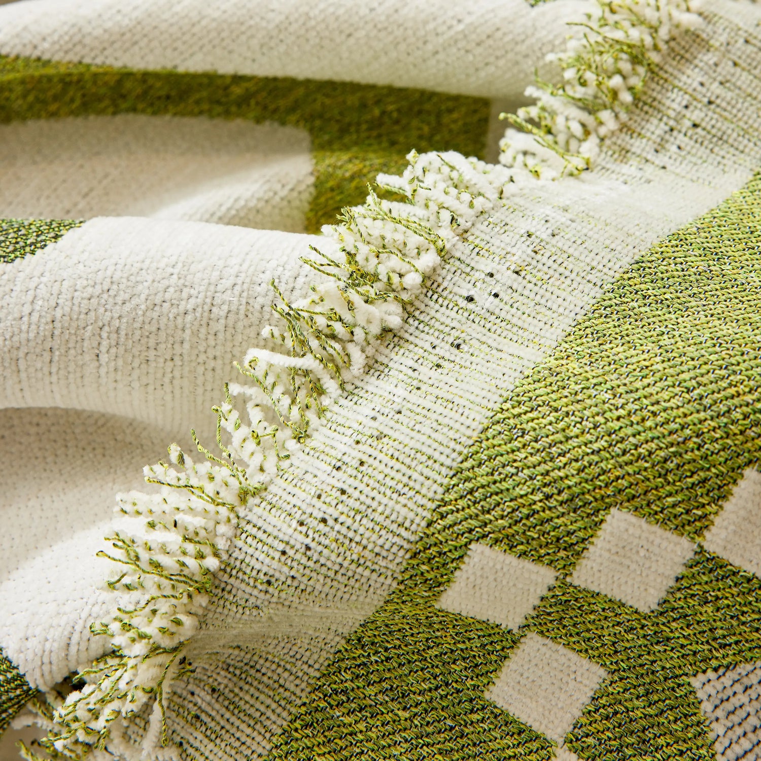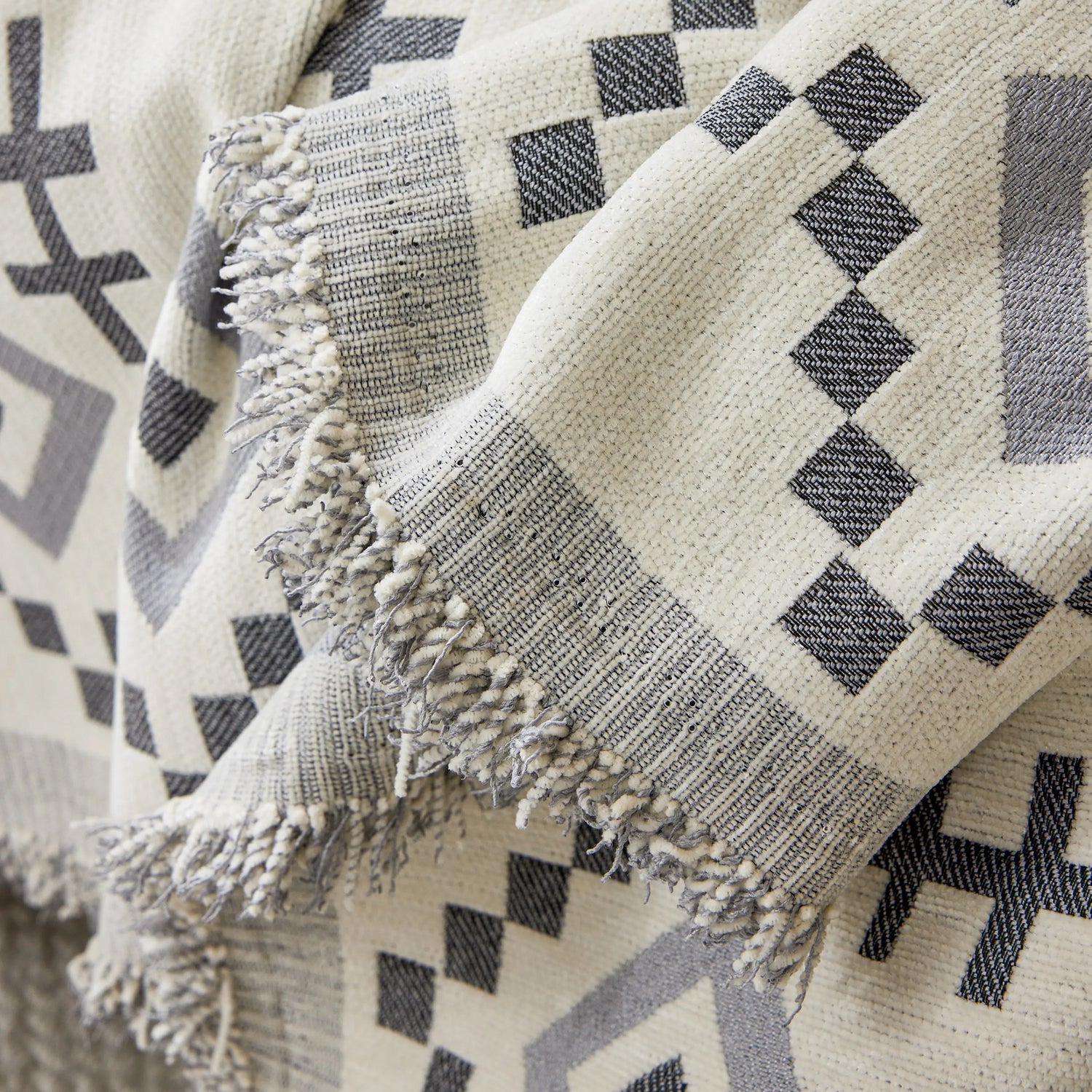 Boho Geometric Chenille Throw Sofa Cover Soft Textured Decorative Couch Blanket