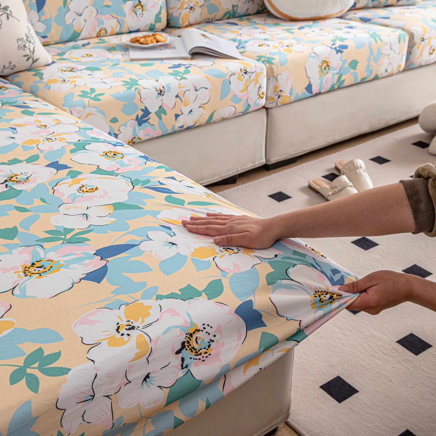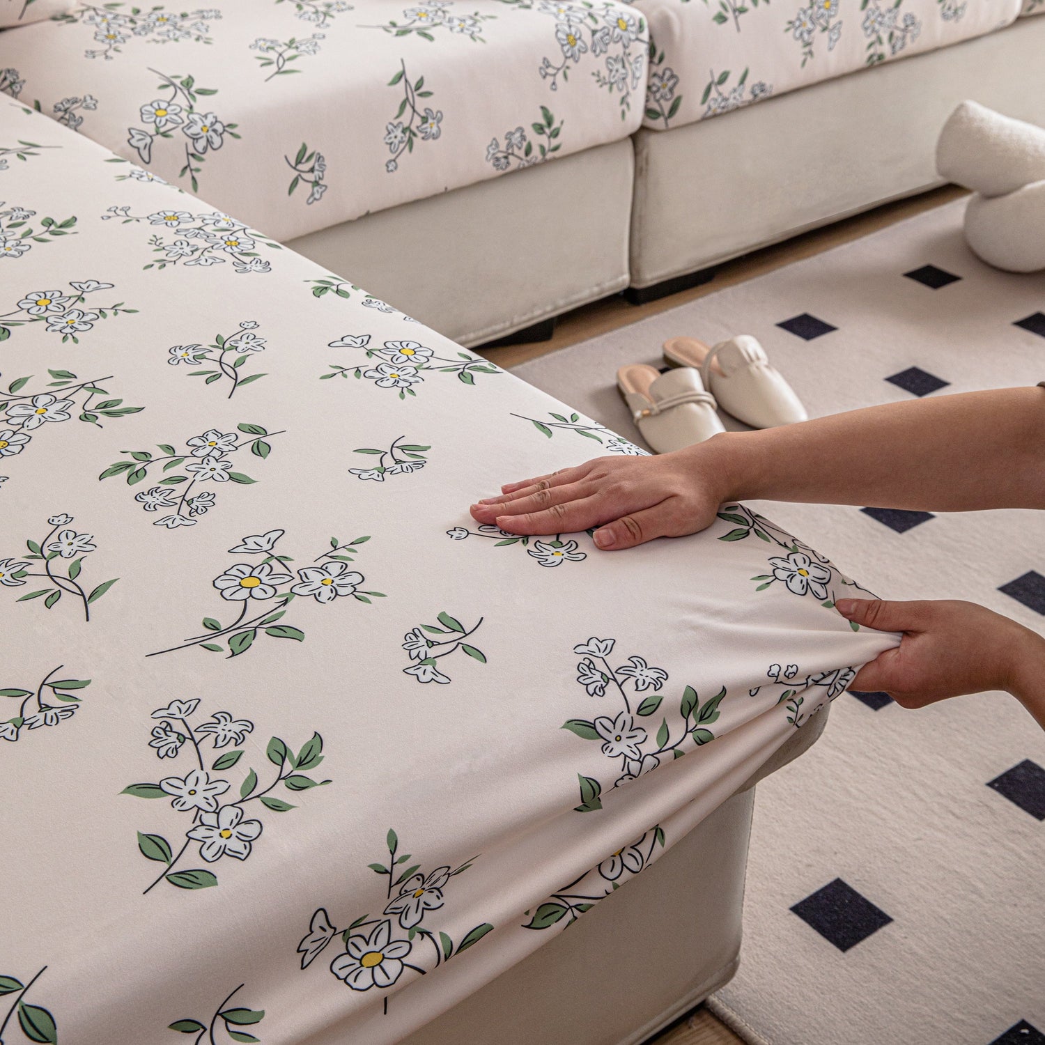 Super easy to install/put on: Our sofa cover is hassle-free to install, thanks to its high elasticity and secure adjustable straps that wrap snugly around your sofa. The stretchable fabric and innovative design allow for easy dressing of your sofa without extra tools or help, making it a convenient choice for any home.