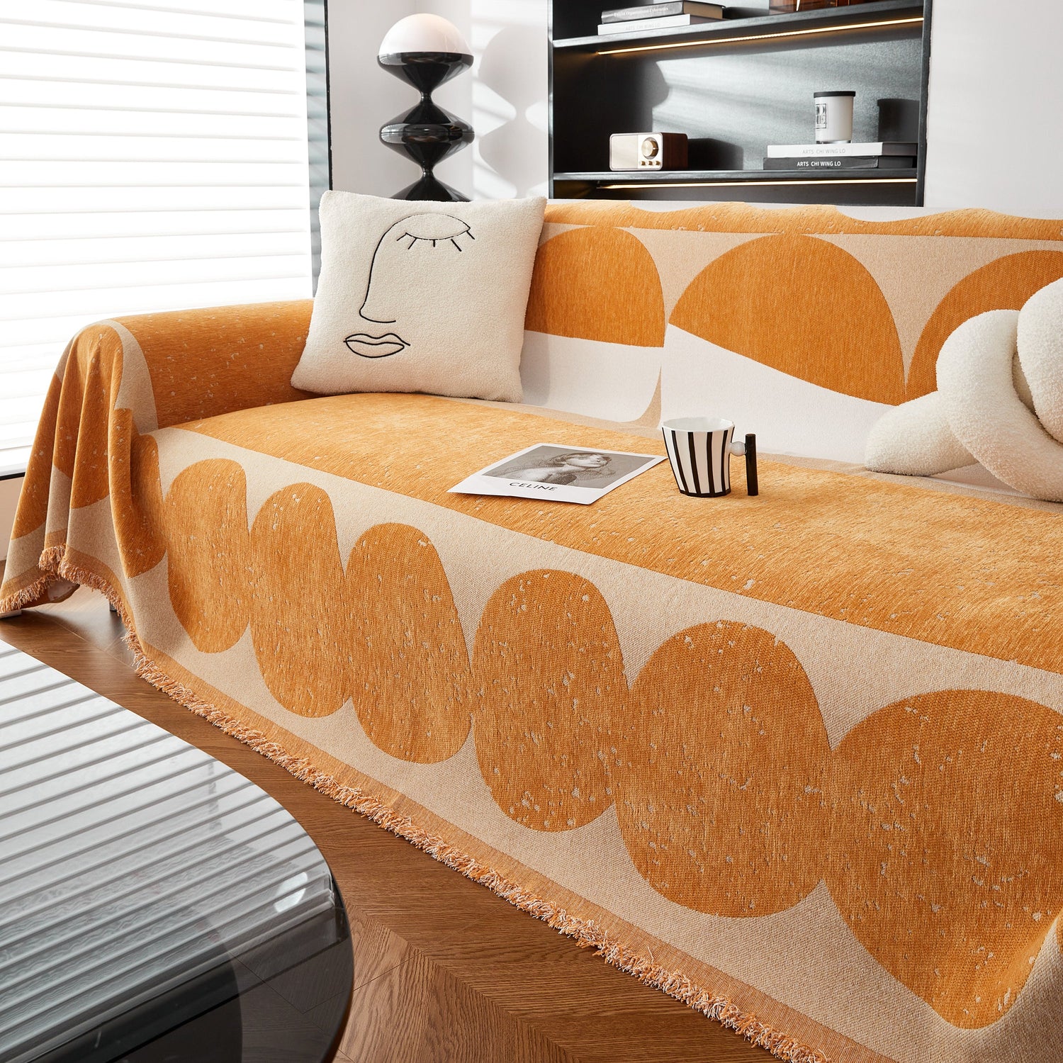 Chenille Circular Motif Sofa Protector Cover, Sofa Slipcovers L Shape, Sectional Sofa Couch Covers - Orange / 180x130cm (70" x 51") is backordered and will ship as soon as it is back in stock.