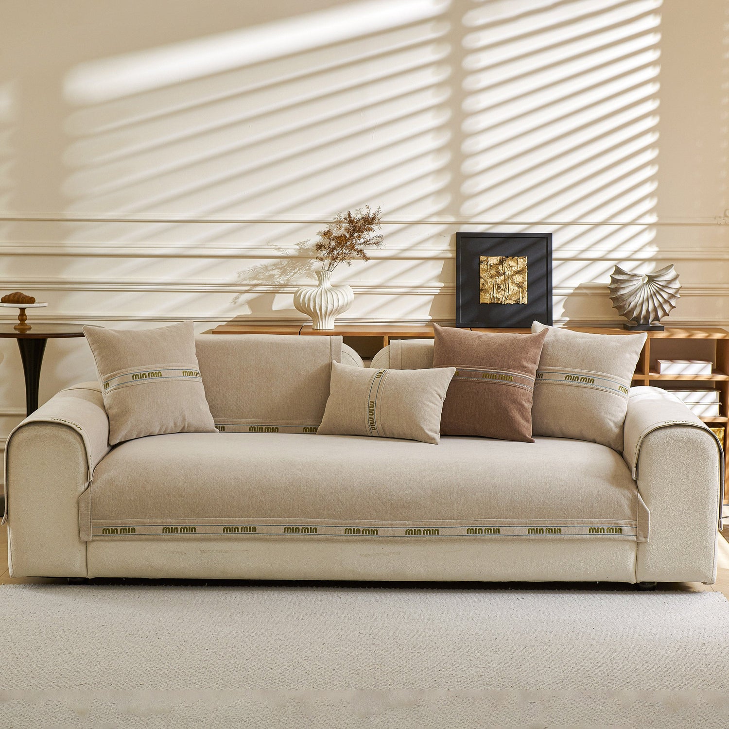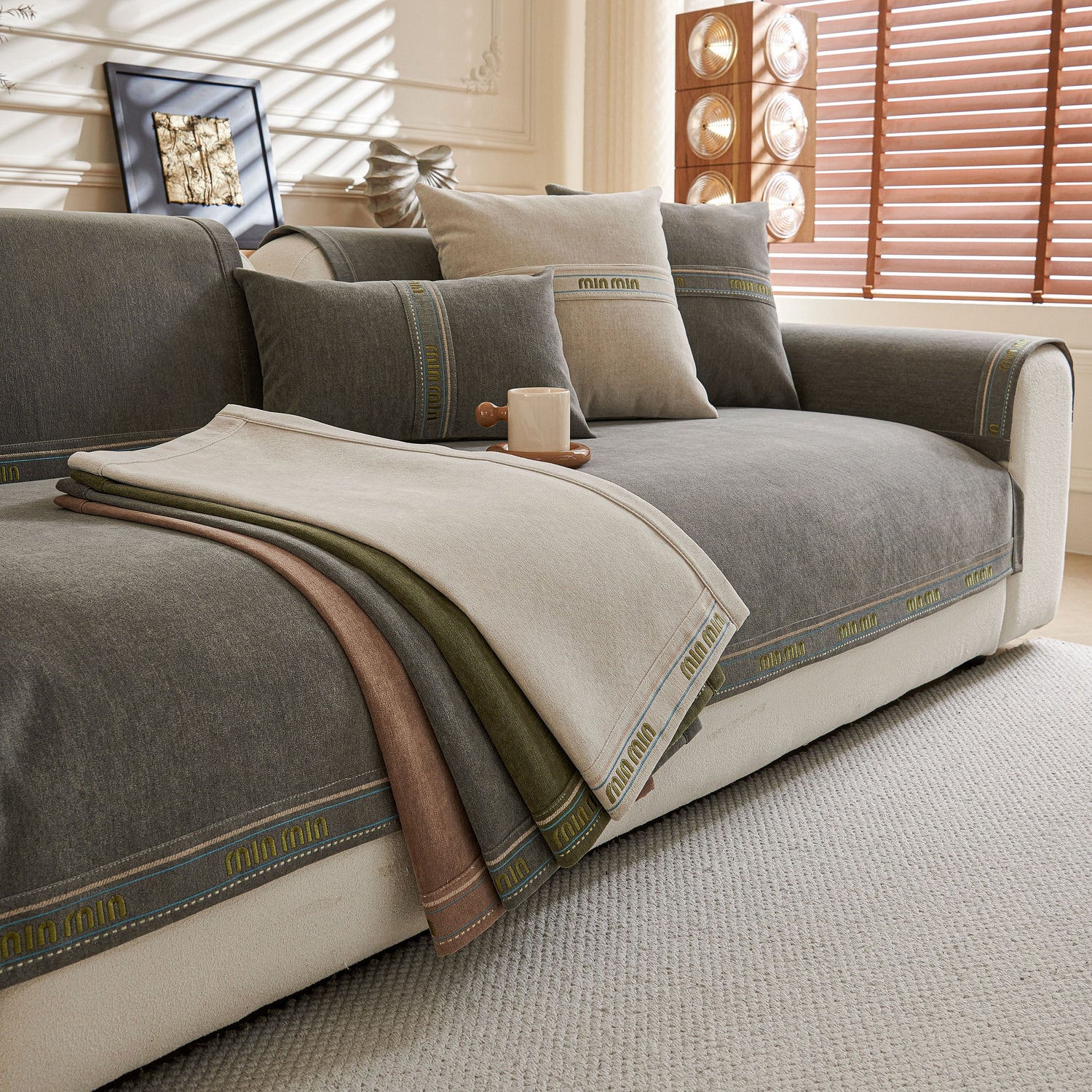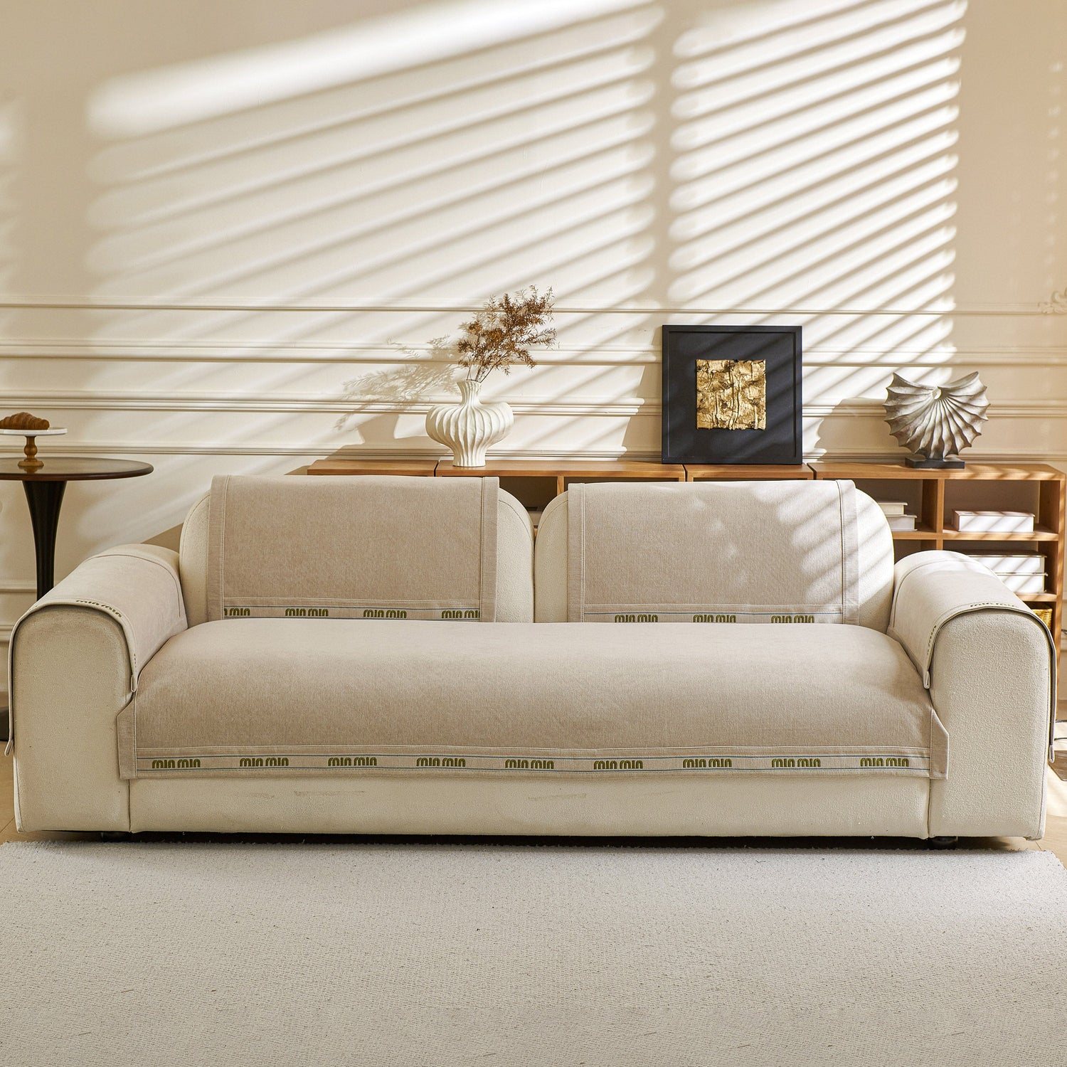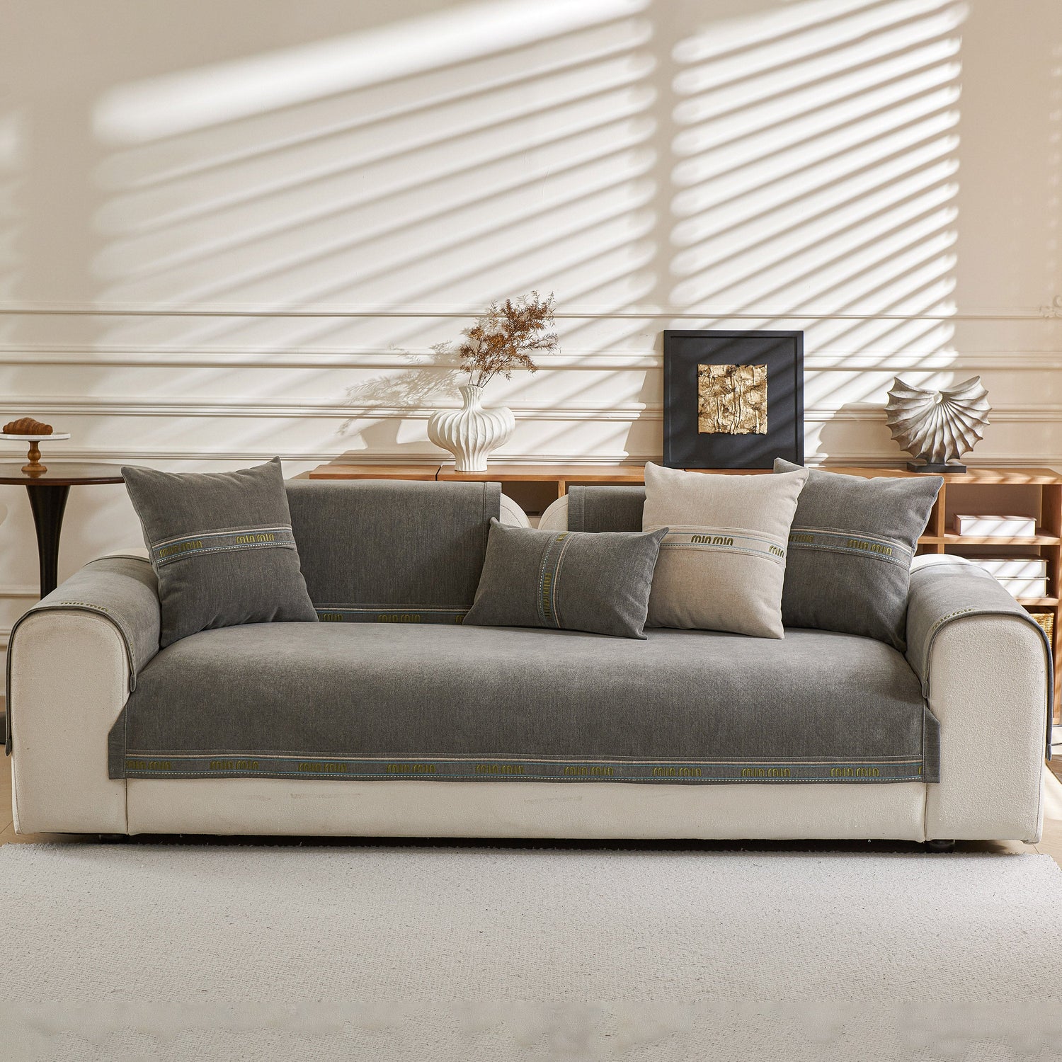 This sofa cover pet mat features thick, soft, and breathable chenille fabric for year-round comfort, with neutral tones and textured design that suit various home styles. Its unique separated pieces allow flexible coverage—you can buy only the seat, backrest, or armrest covers—ideal for sectional or irregular sofas. The anti-slip silicone backing keeps each piece securely in place, reducing movement. The chenille material naturally resists dust, pet hair, and light scratches, and each piece is easy to remove and machine wash. Combining practicality, flexibility, and style, it offers customizable protection and a cozy, elegant look.