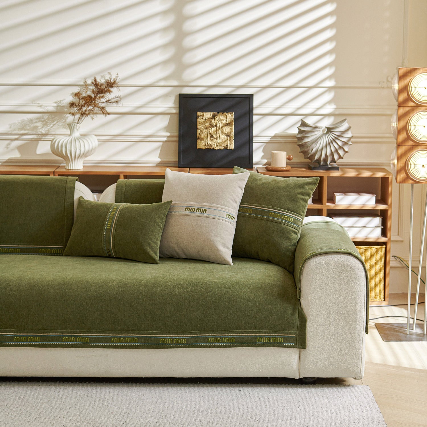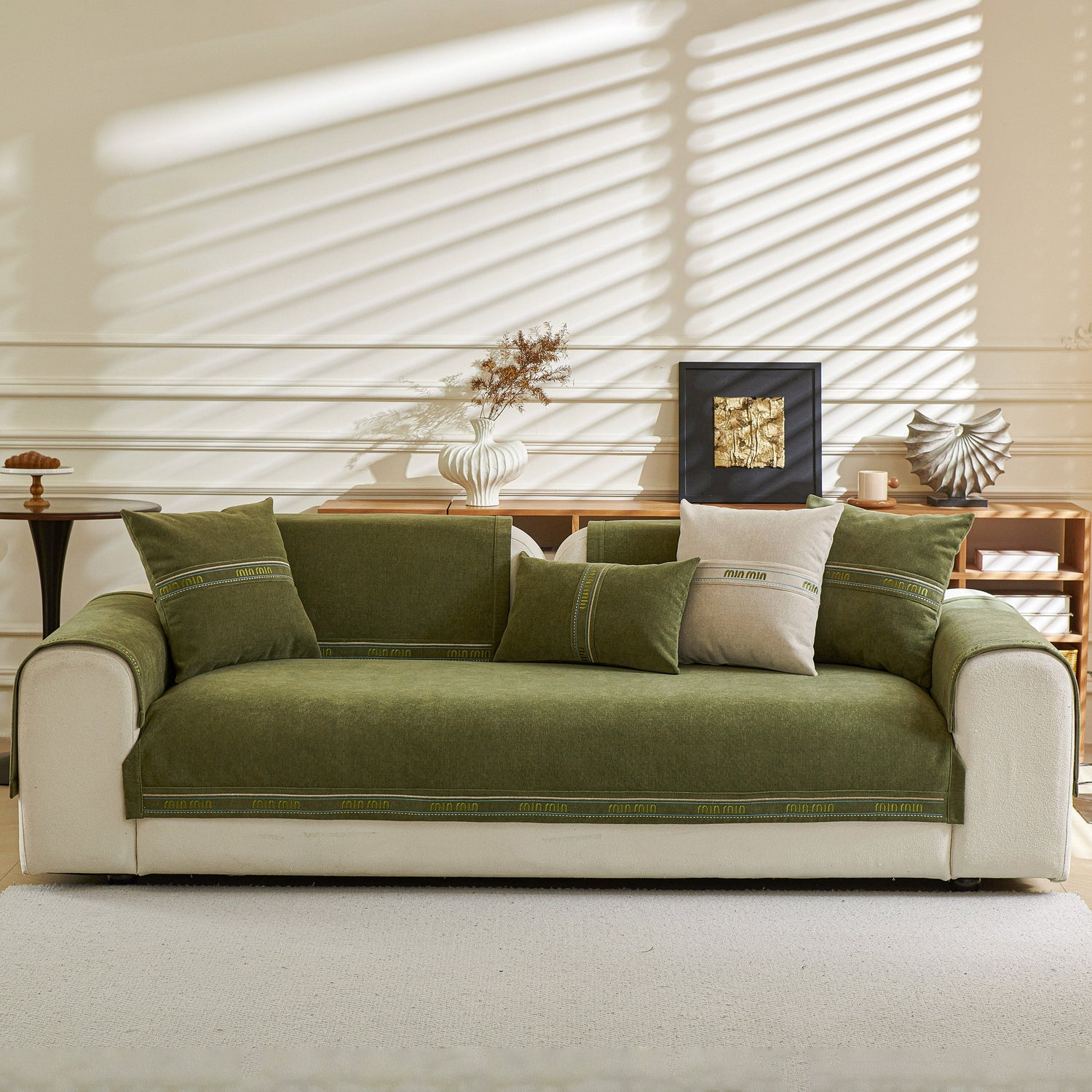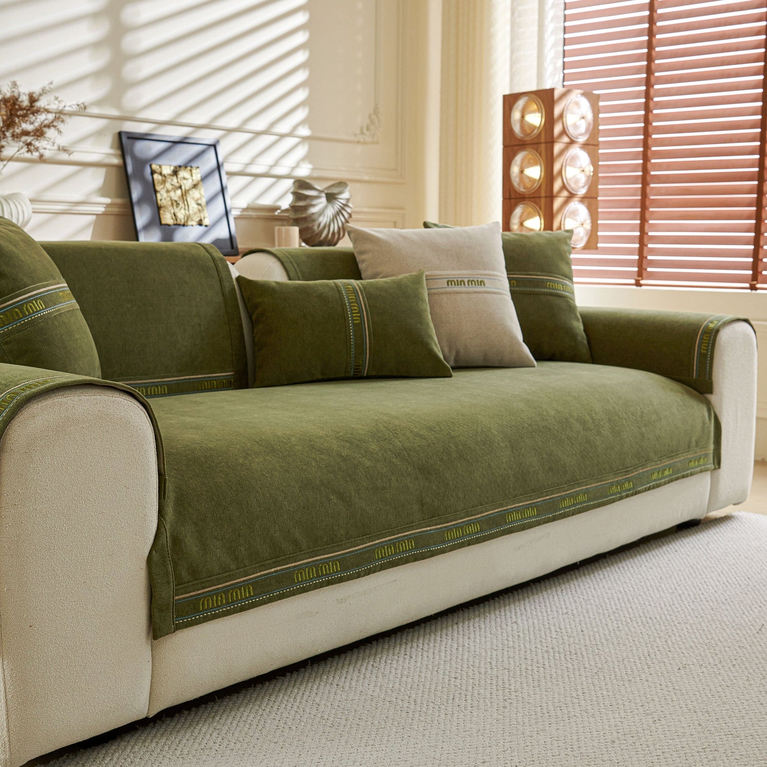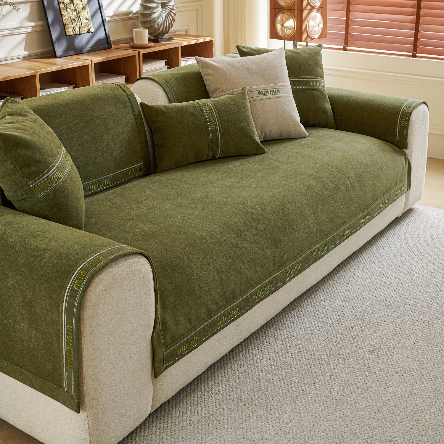 This sofa cover pet mat features thick, soft, and breathable chenille fabric for year-round comfort, with neutral tones and textured design that suit various home styles. Its unique separated pieces allow flexible coverage—you can buy only the seat, backrest, or armrest covers—ideal for sectional or irregular sofas. The anti-slip silicone backing keeps each piece securely in place, reducing movement. The chenille material naturally resists dust, pet hair, and light scratches, and each piece is easy to remove and machine wash. Combining practicality, flexibility, and style, it offers customizable protection and a cozy, elegant look.