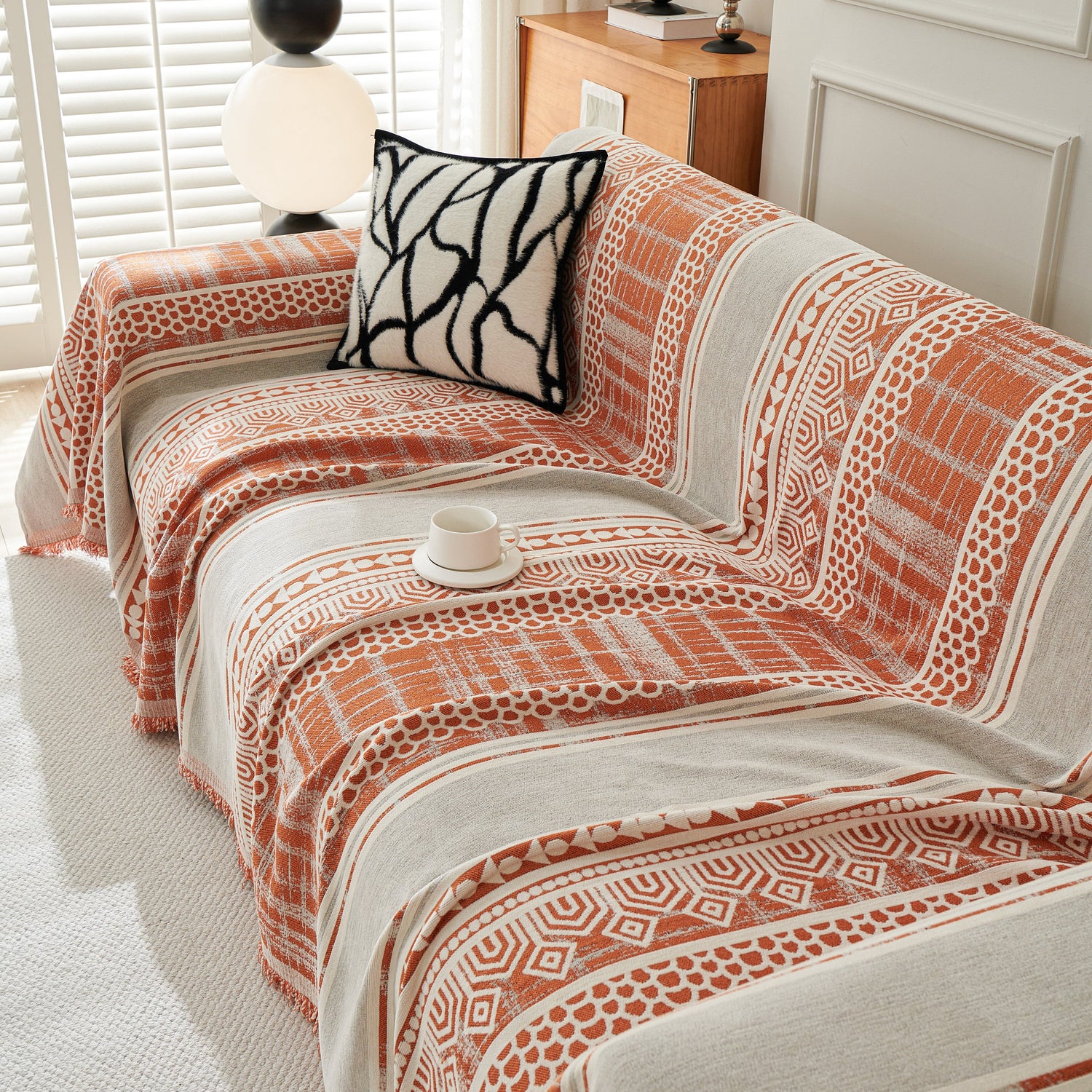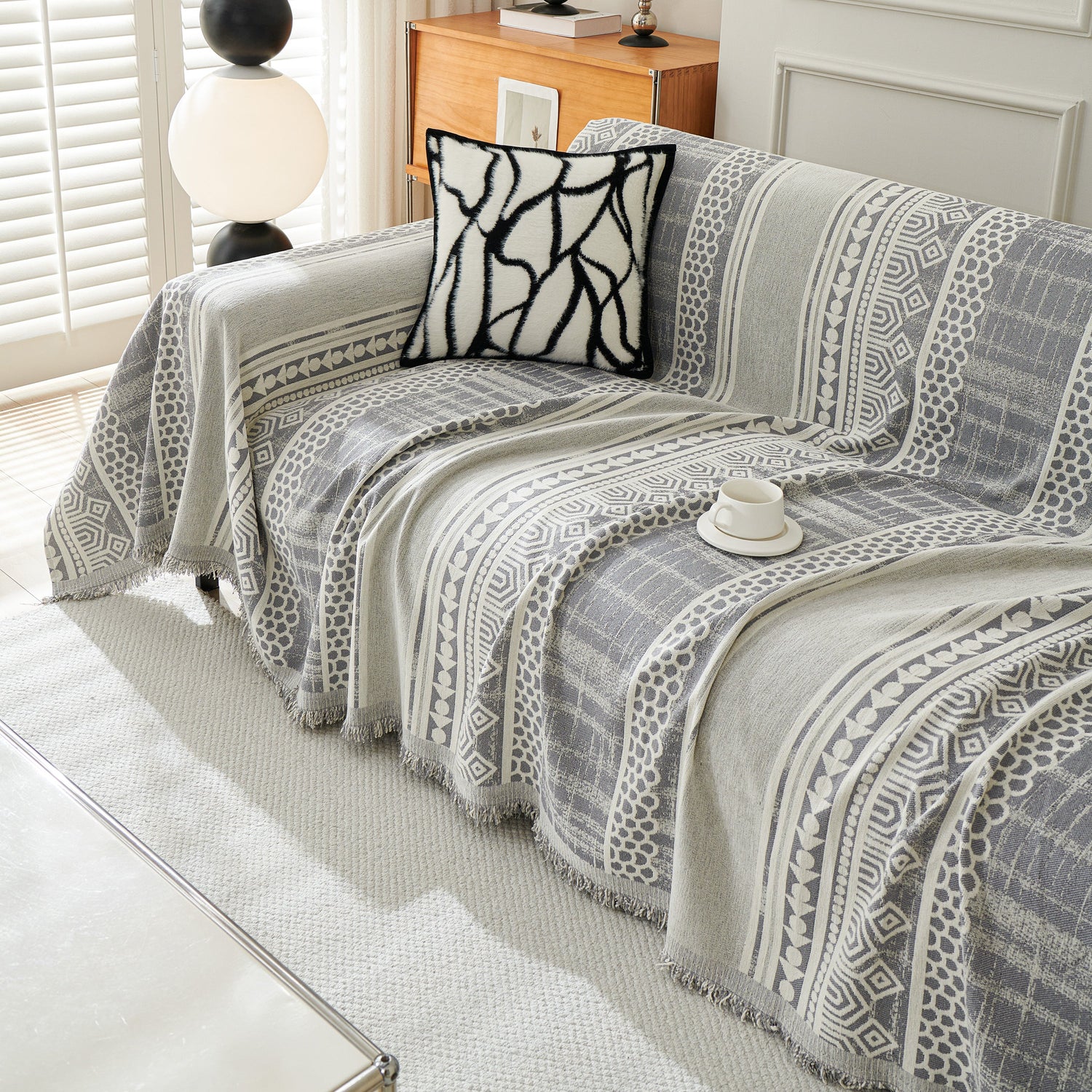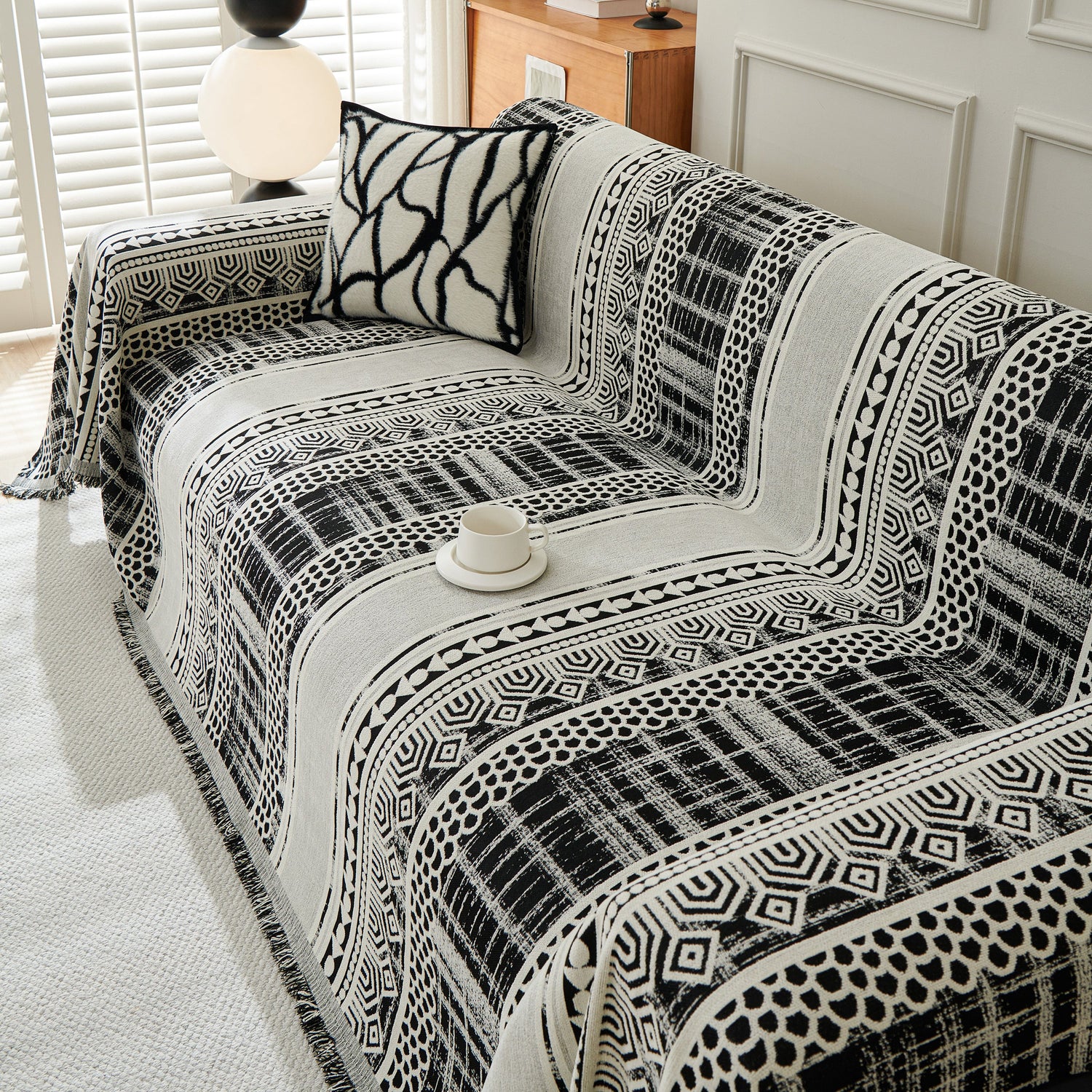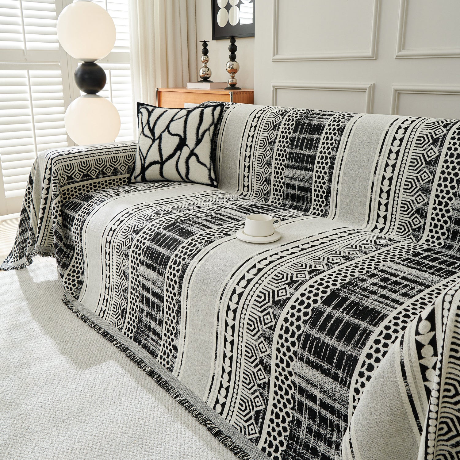Chenille Sofa Cover Throw Blanket, Boho Geometric Scratch Proof Couch Protector