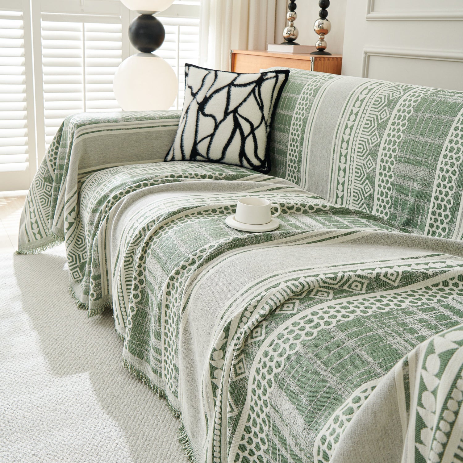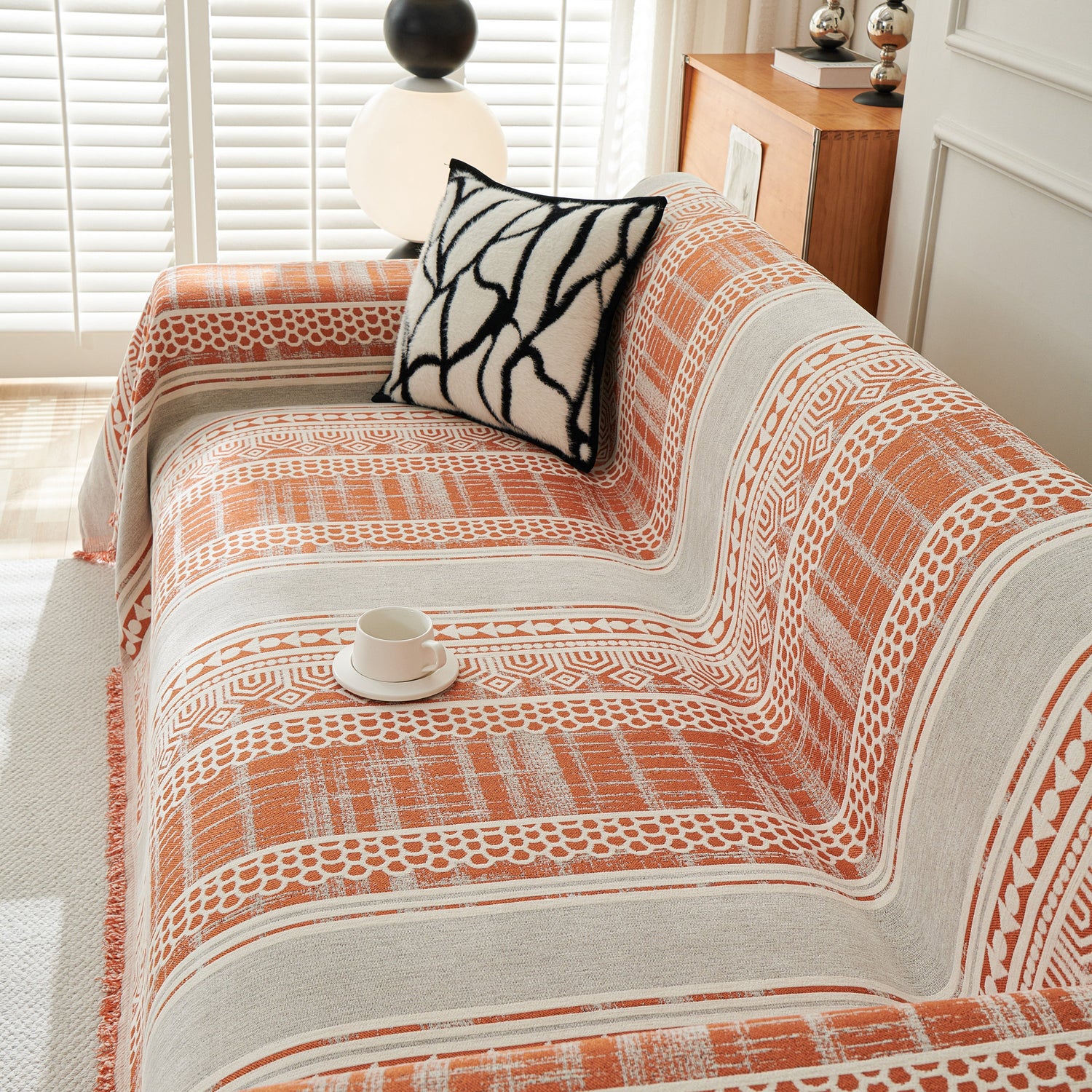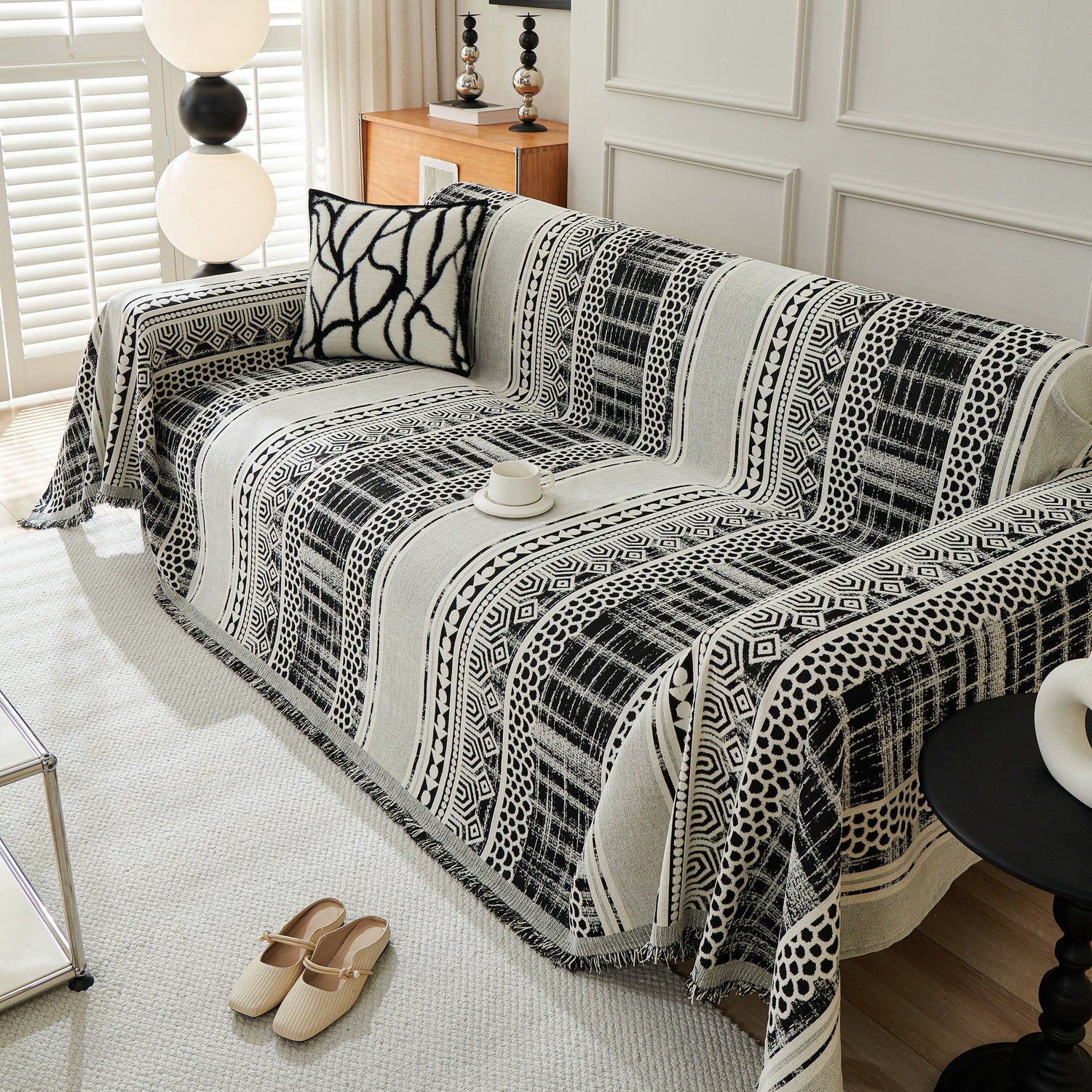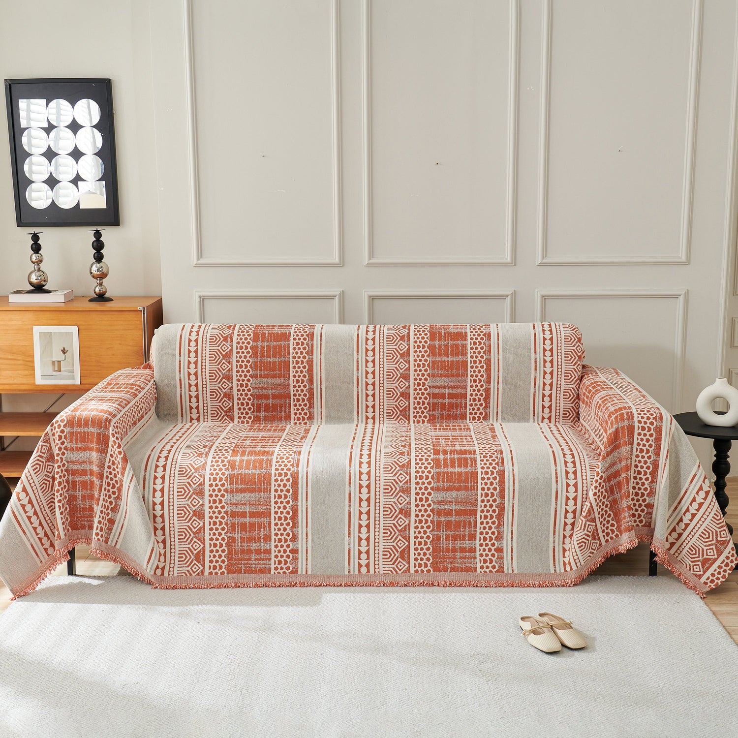 Chenille Sofa Cover Throw Blanket, Boho Geometric Scratch Proof Couch Protector