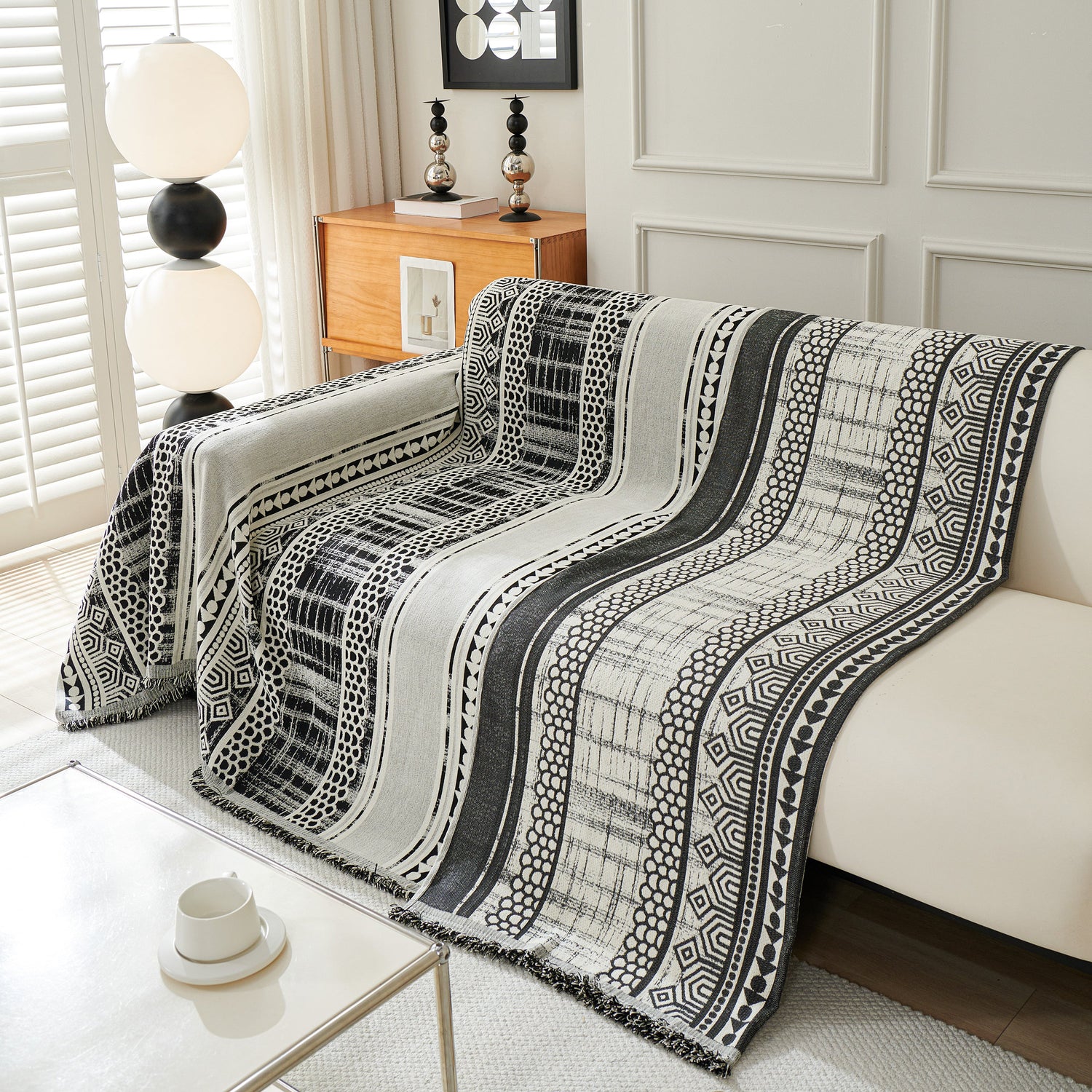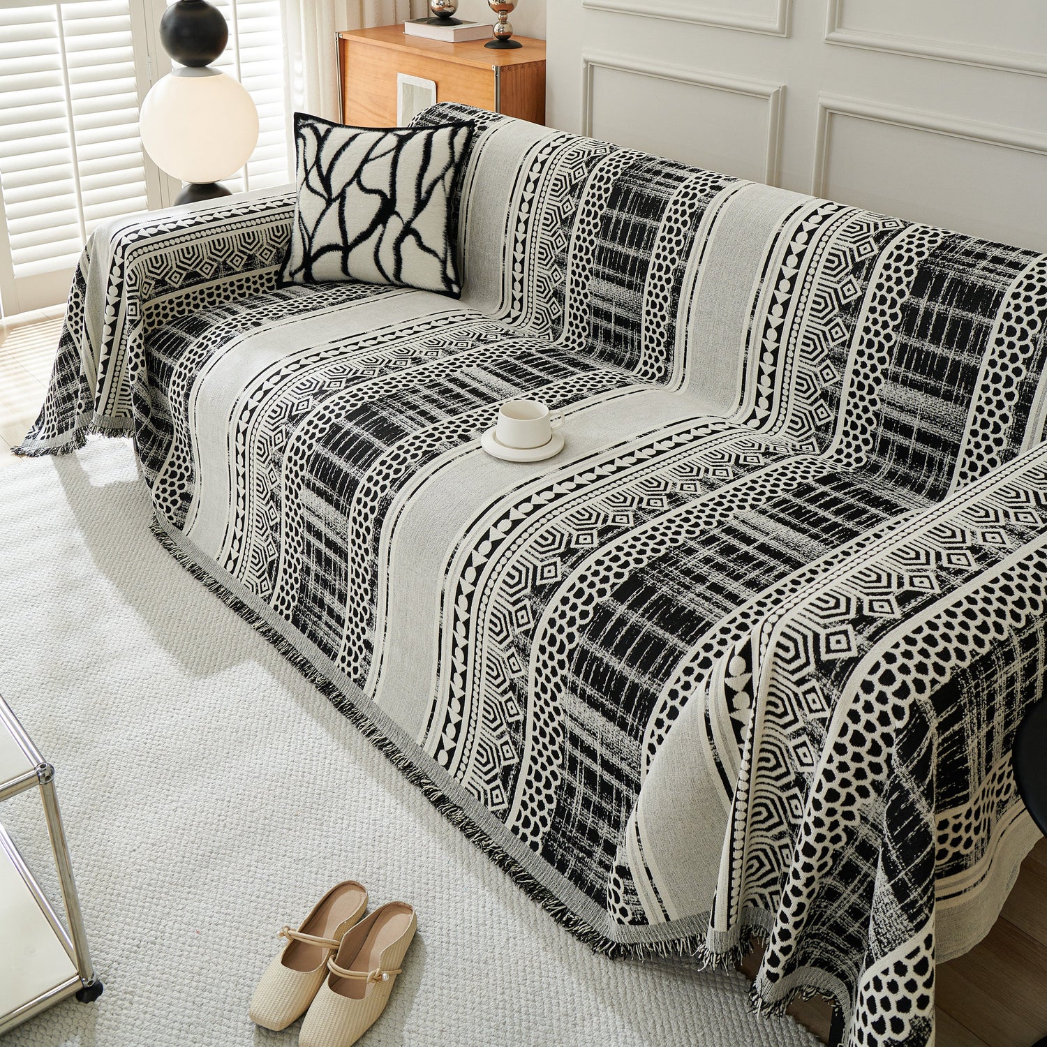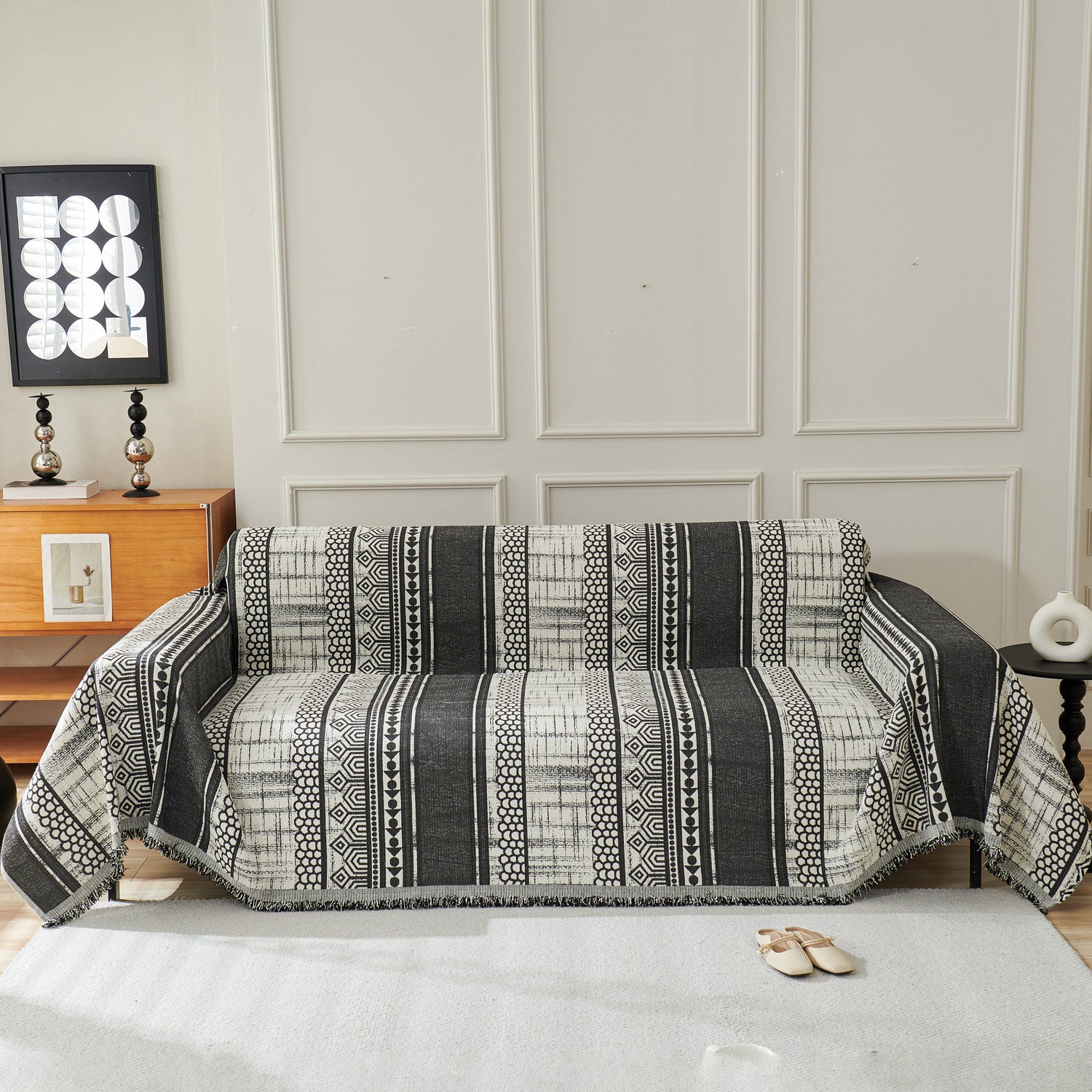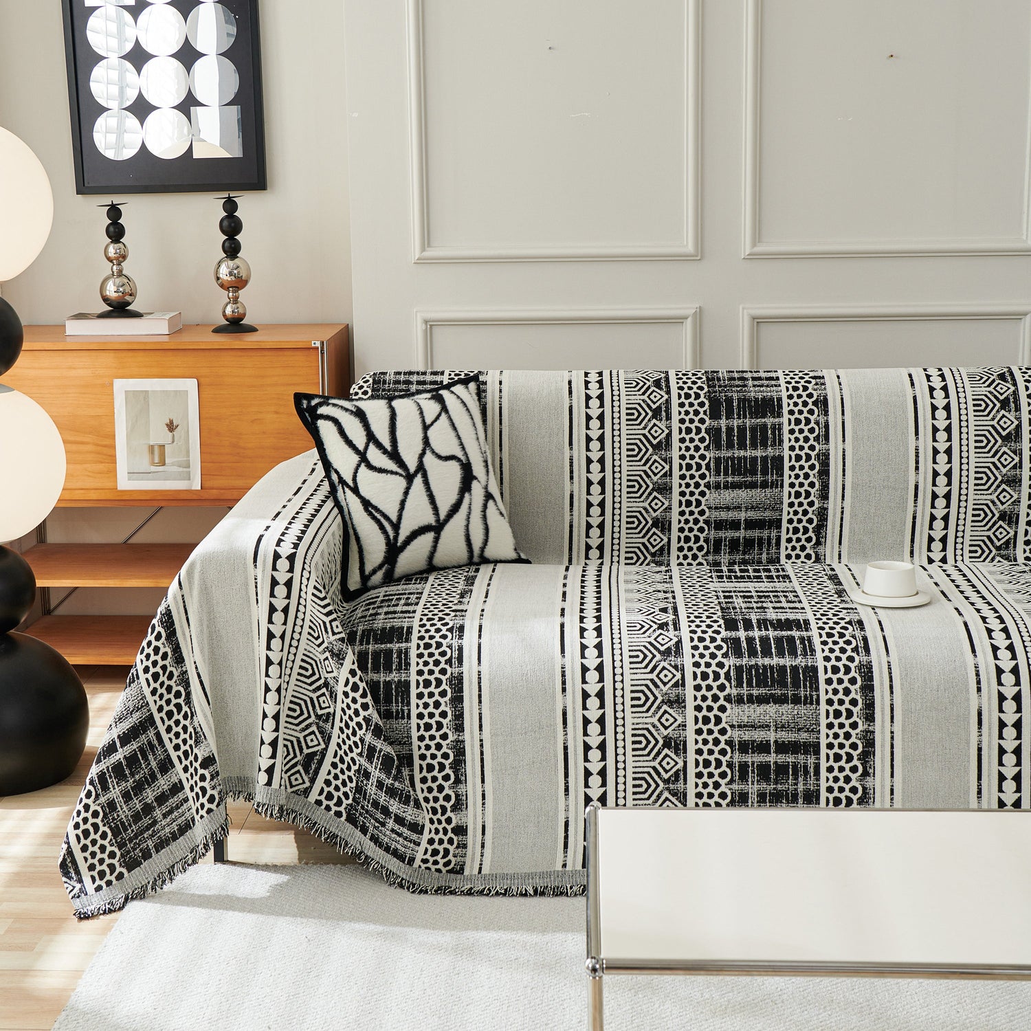 Chenille Sofa Cover Throw Blanket, Boho Geometric Scratch Proof Couch Protector