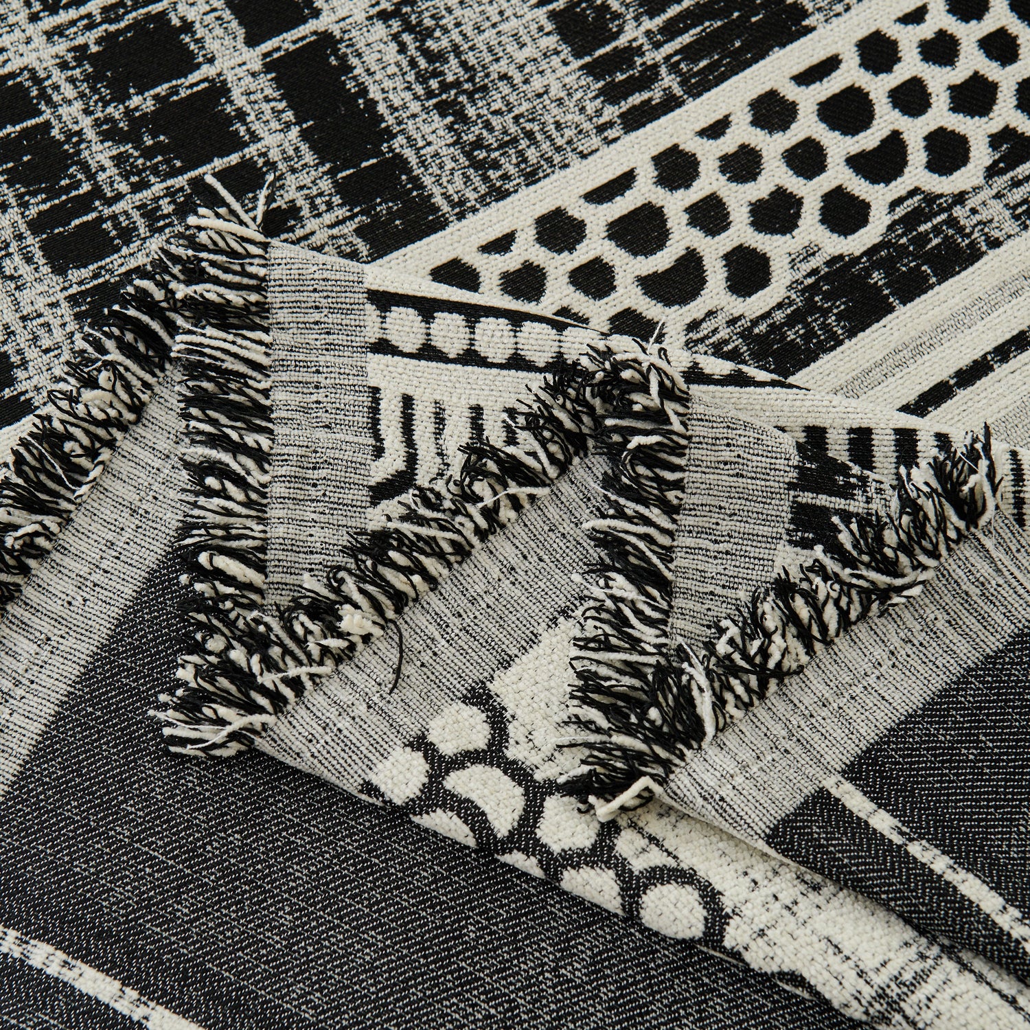 This chenille couch cover blanket features a soft texture and a repeating geometric pattern with fringe edges for added style. It protects the seat, backrest, and armrests from dust, pet hair, scratches, and daily wear. With moderate thickness and flexible design, it can be used as a sofa slipcover, throw, bed runner, picnic mat, or decorative layer, adding a clean, balanced look to any room.