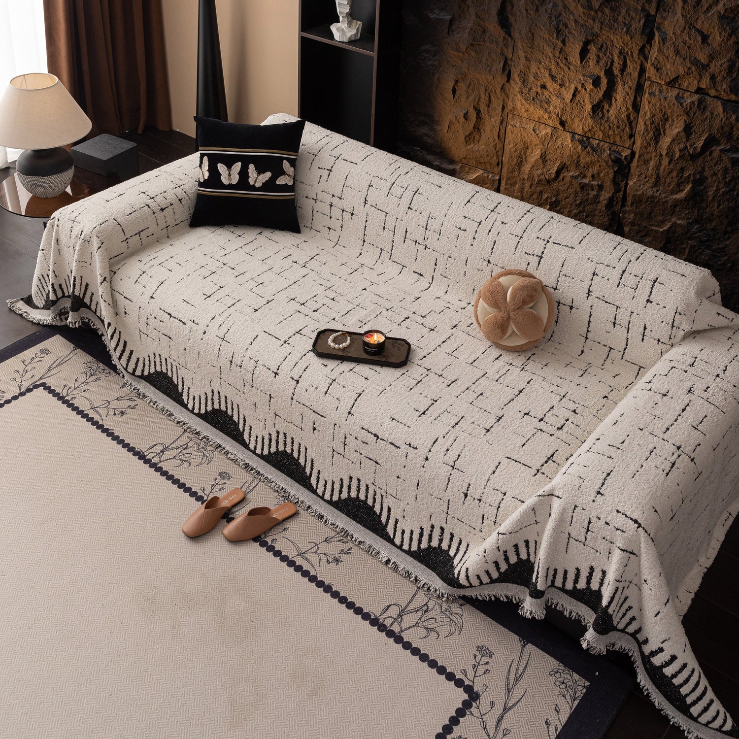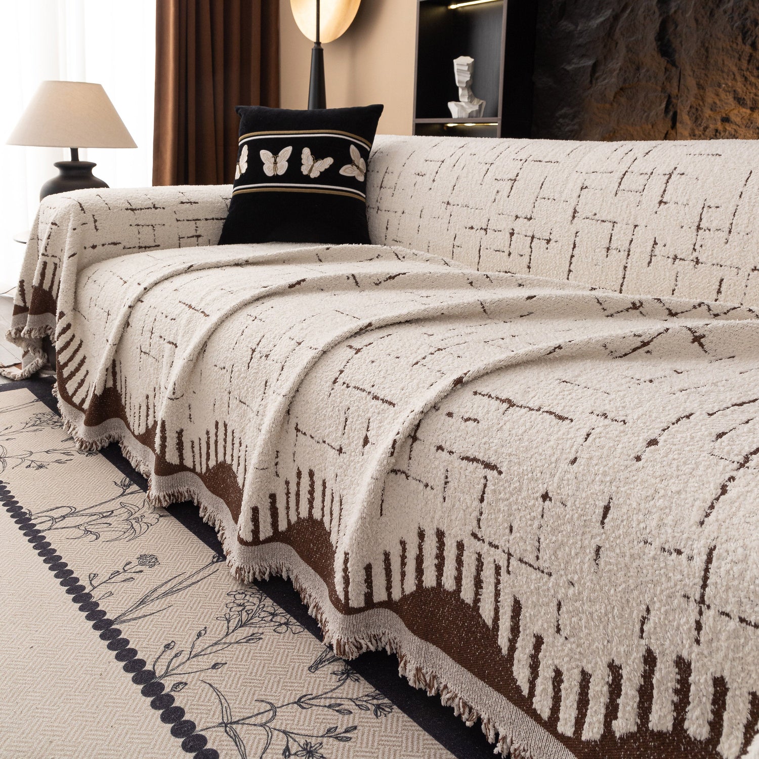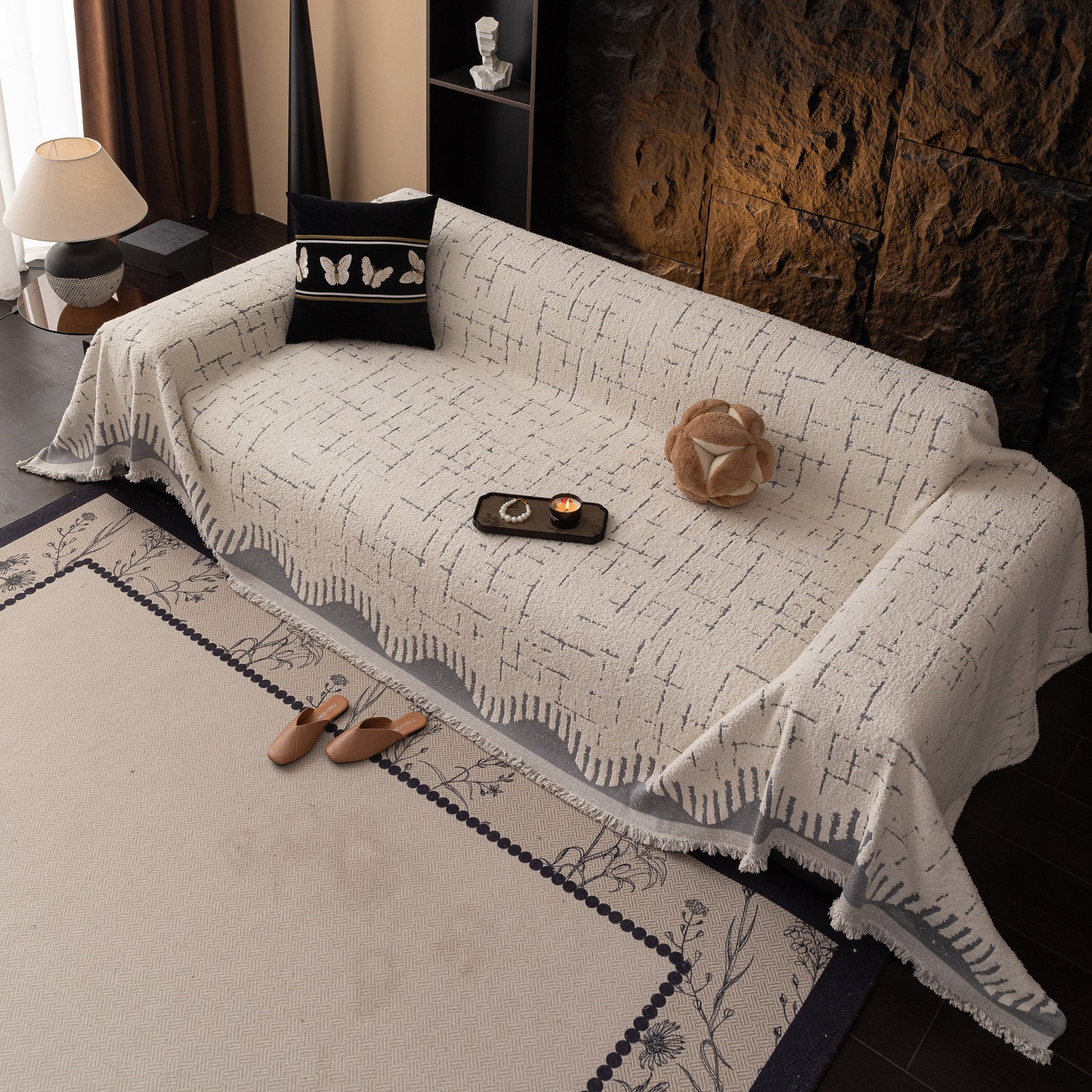 This woven chenille sofa cover throw offers a simple and textured look suitable for a variety of interiors. Made from soft chenille polyester, it functions both as a decorative accent and as a practical furniture slipcover to help protect your sofa from dust, light wear, or pet hair. The fabric has a medium weight with a subtle woven pattern that adds depth without being overly bold. Designed to drape across loveseats, couches, or sectional sofas, it can also be used as a lightweight throw blanket when needed.