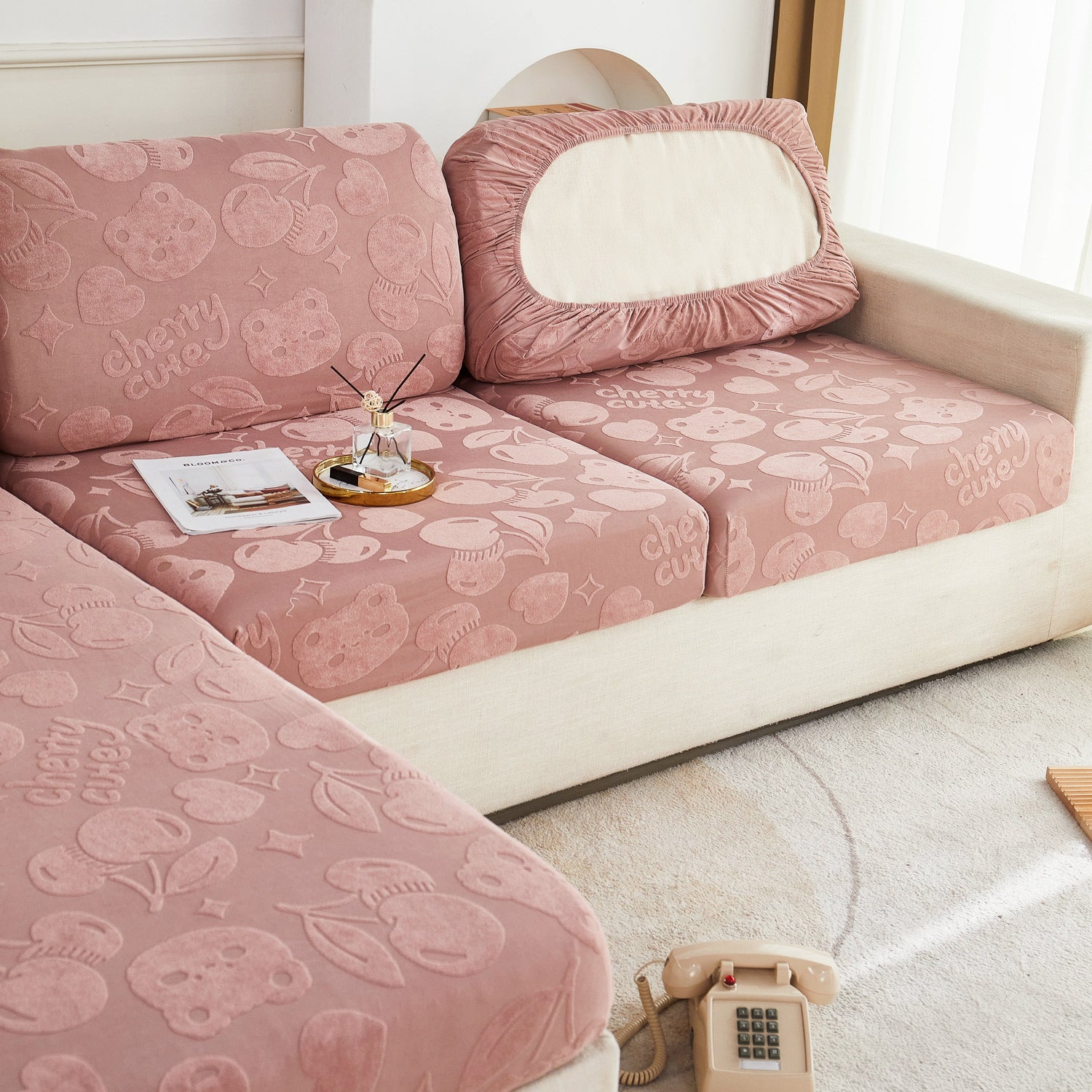 Cherry Cute Cooling Silk Fabric Stretch Couch Cushion Covers, Non-Slip Furniture Protector for Kids
