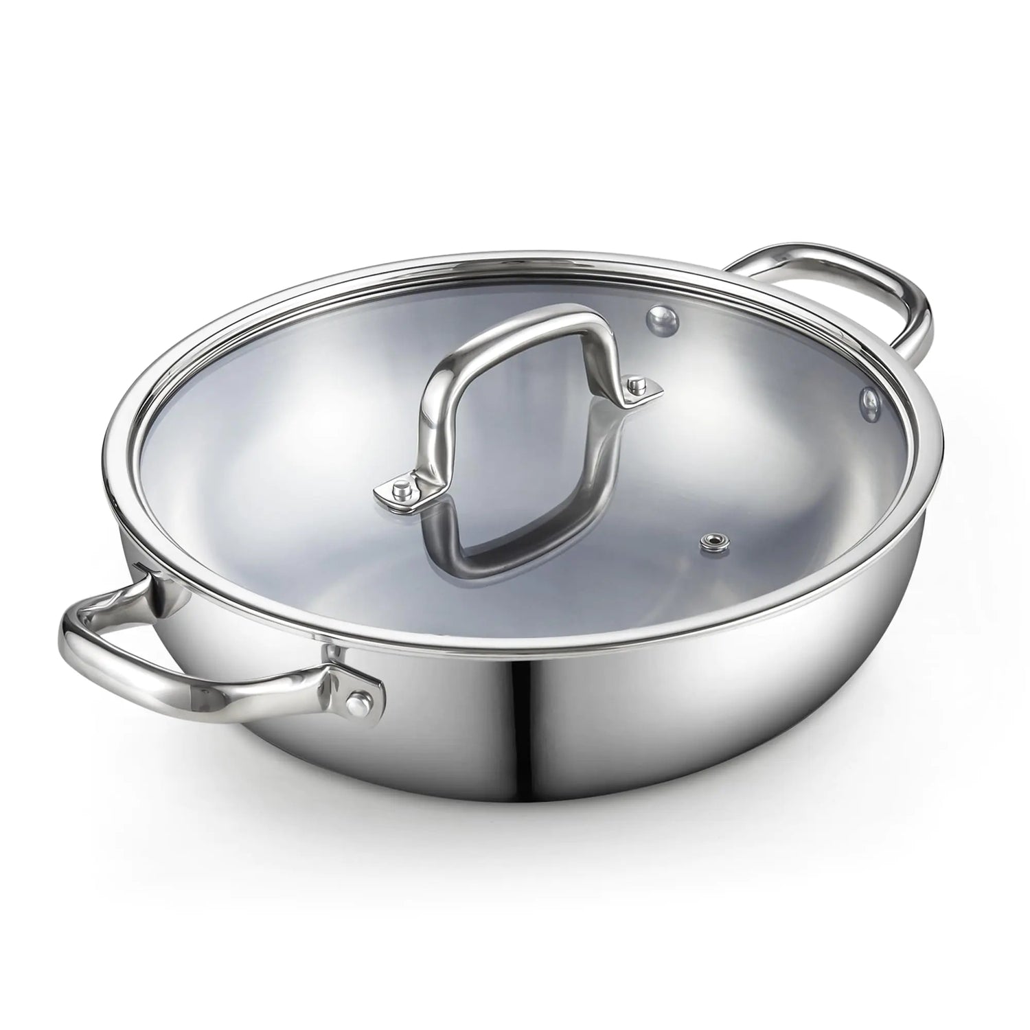 [Tri Ply Clad: The 12 inch stainless steel wok is made of 18/10 stainless steel and multi element aluminum core; It is resistant to high temperatures corrosion and deformation" Even Heating: Tri ply clad structure ensures even heat distribution this design ensures good thermal conductivity and heat preservation making heating more even and cooking better Ergonomic handle: Stainless steel wok equipped with tempered glass lids and steam vent that allow steam to escape for viewing food while cooking; Ergonomics handles stay cool during use stainless steel are riveted for strength Compatible with all Stovetops: Stainless steel wok suitable for induction gas electric glass ceramic halogen etc; Oven safe up to 500℉; Dishwasher safe easy to clean Enjoy Cooking: The 12 inch stainless steel wok suitble for stir-frying sautéing deep frying and steaming; Cook N Home wok stir fry pan is an ideal addition to any home kitchen]