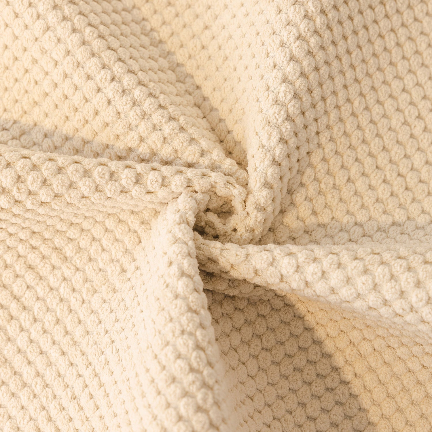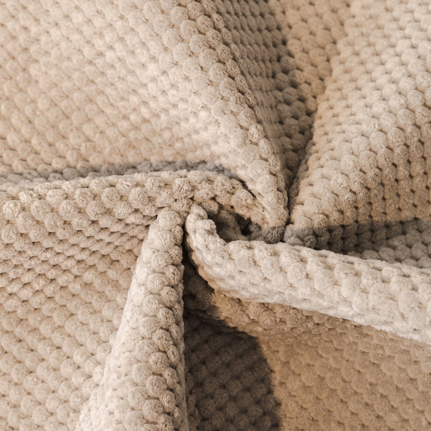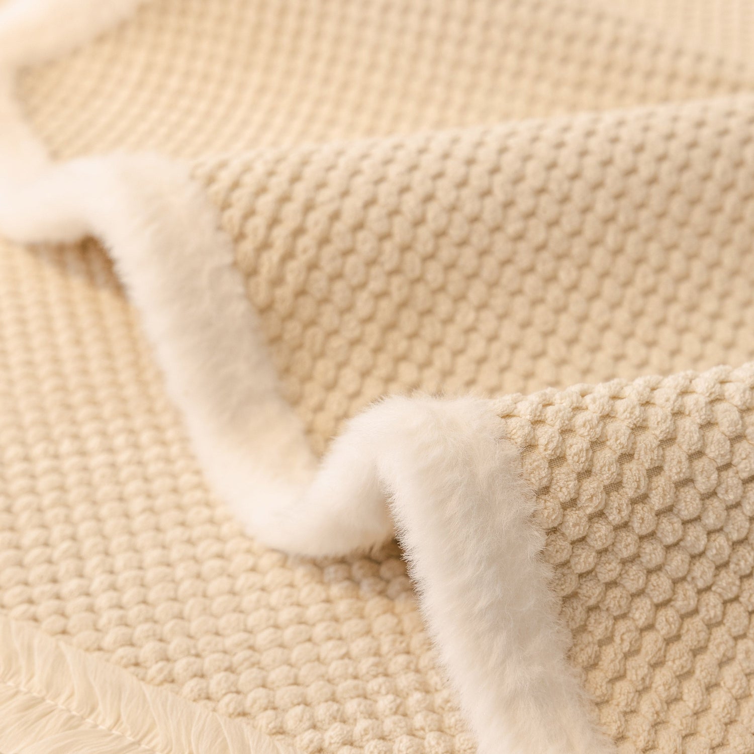 - Material & Texture: Made from 100% polyester, thick honeycomb texture that is soft, warm, and breathable. The edges are trimmed with plush, ultra-soft faux rabbit fur for a cozy, luxurious finish.