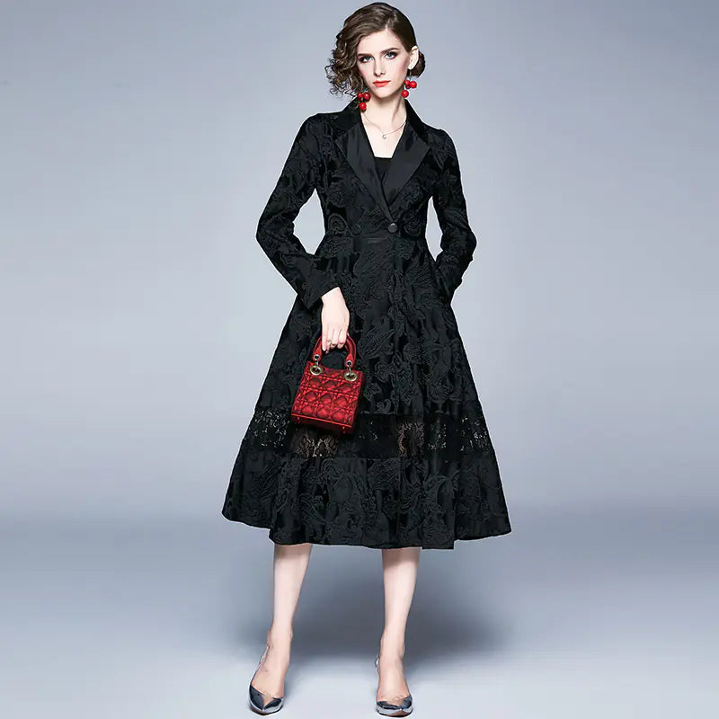 Embrace the beauty of the changing seasons with our stunning Autumn and Winter Women's European Station Pure Color Jacquard Windbreaker. This elegant jacket is designed for the discerning woman who values both style and comfort. With its big swing silhouette and long sleeves, it adds a touch of sophistication to any outfit, whether you're heading to a casual brunch or an evening out.
