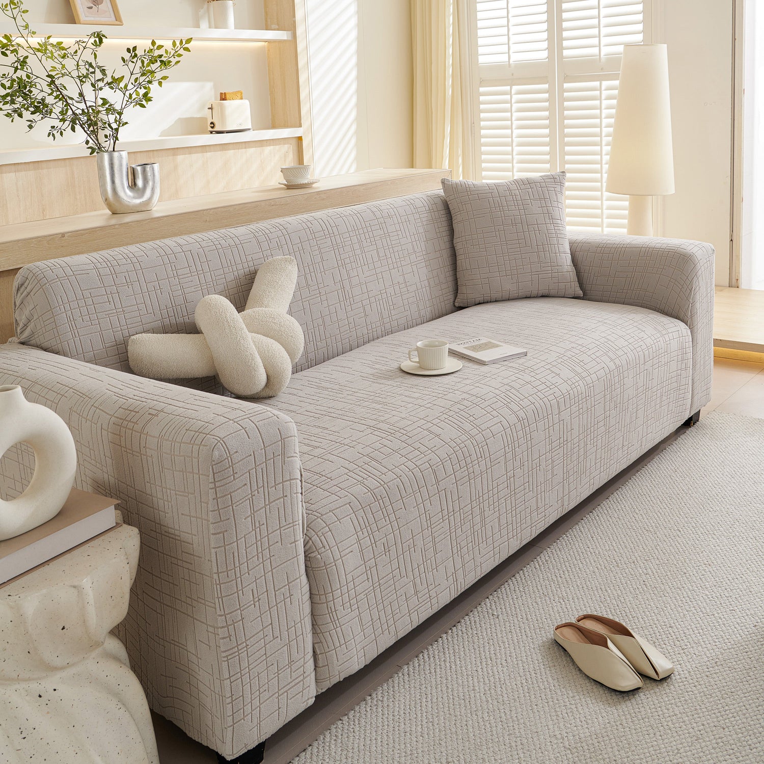 Embossed Lines Couch Covers Stretchable Non-Slip & Washable Sofa Slipcovers
