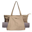 ESVAN Yoga Tote Bag for Women Shoulder Bags Drawstring for Office Workout Travel Carryall Pilates Gym and Beach (Khaki)