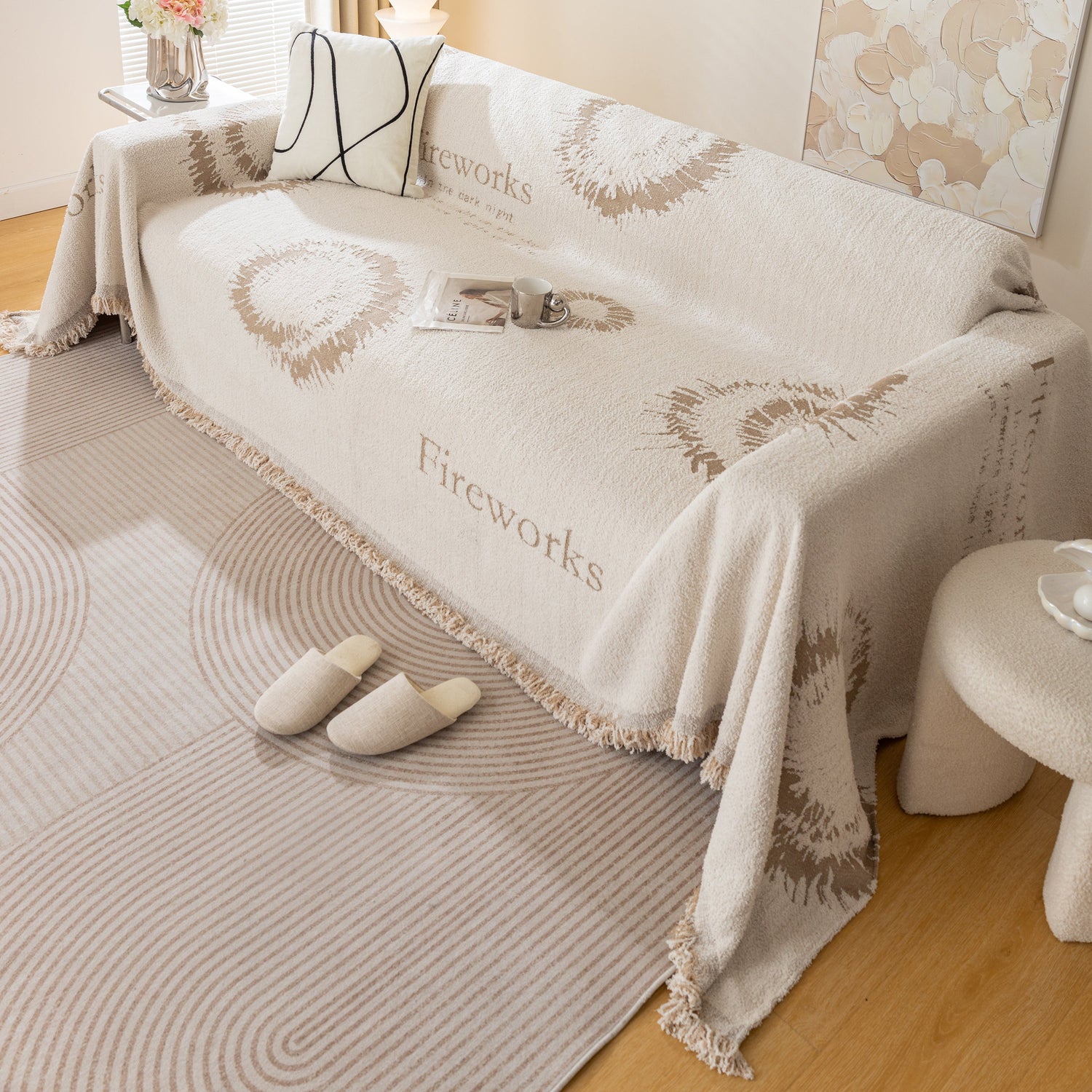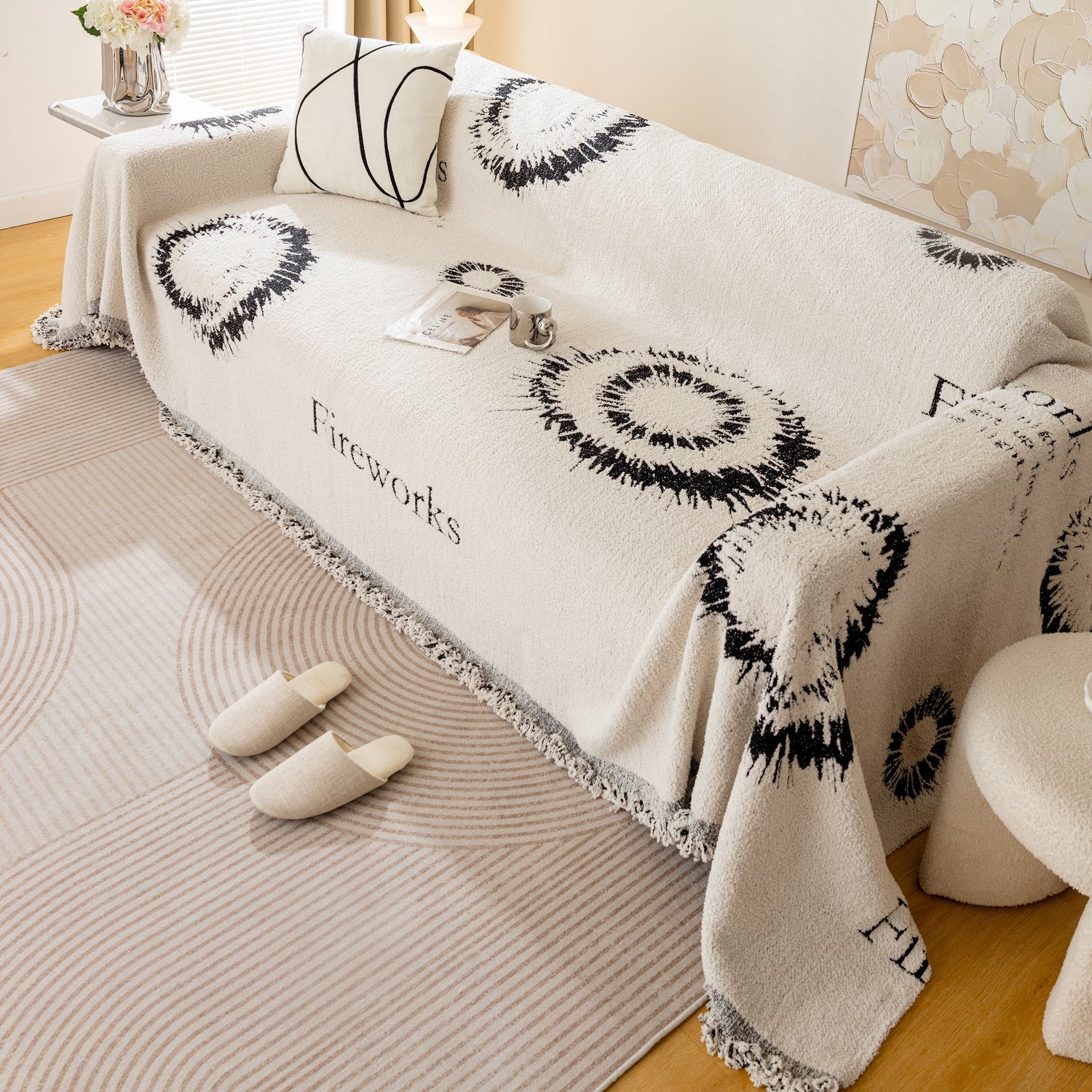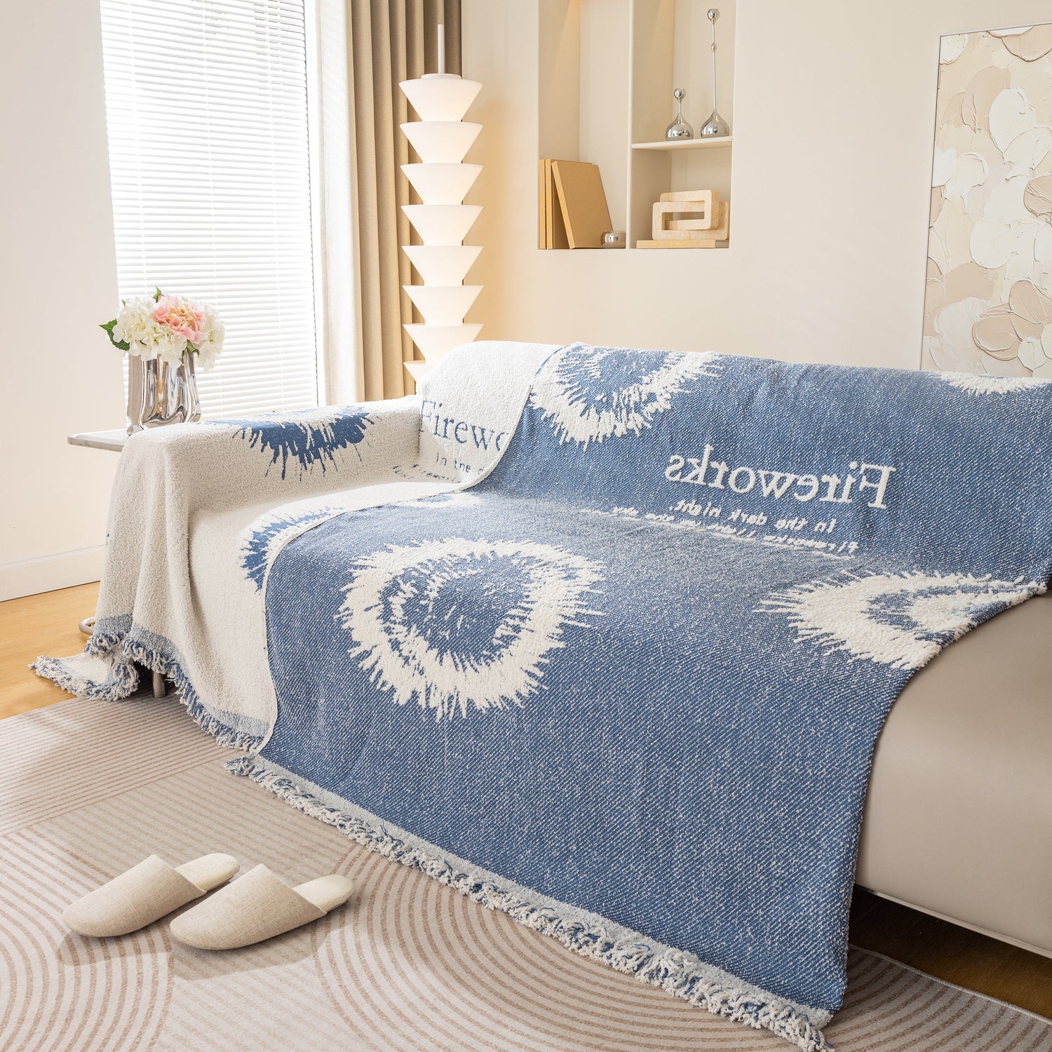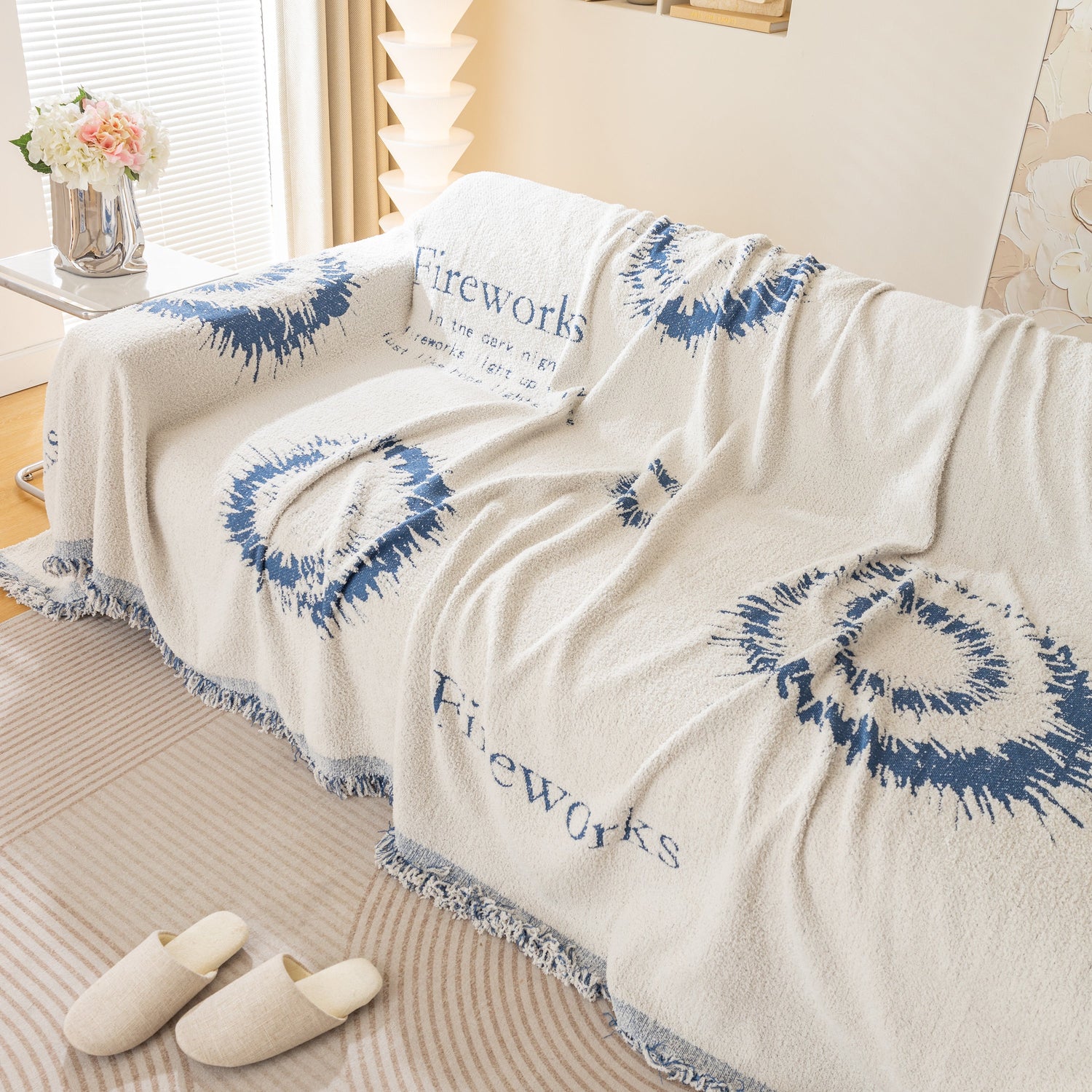 Brighten your space with the Fireworks Reversible Couch Cover Blanket. Washable, durable, and perfect for most shape sofas, it adds style and protects your furniture effortlessly.