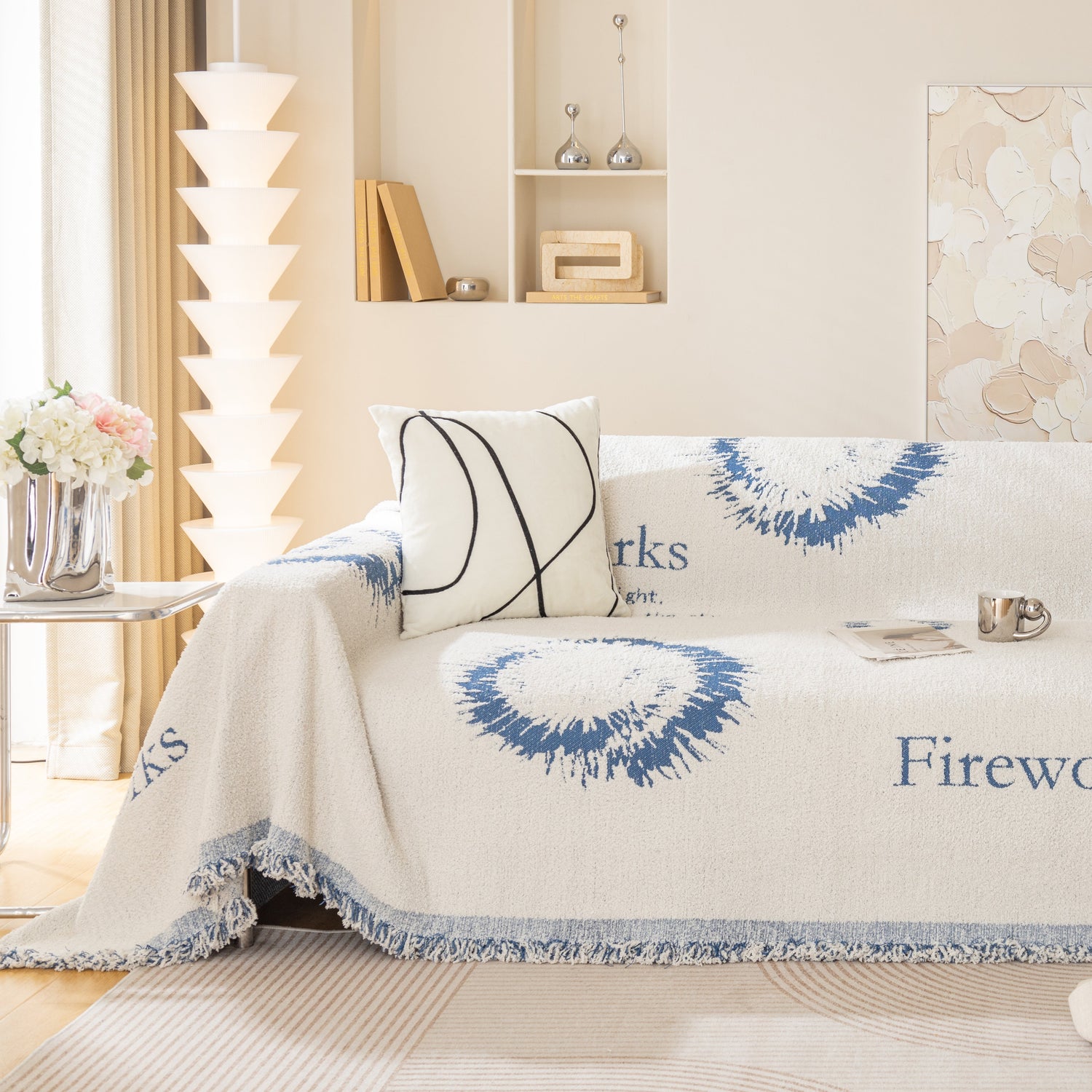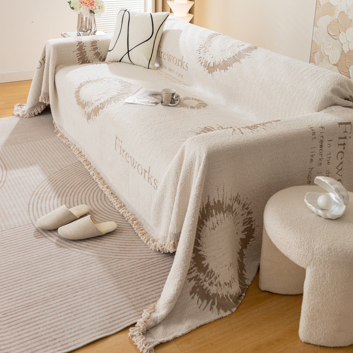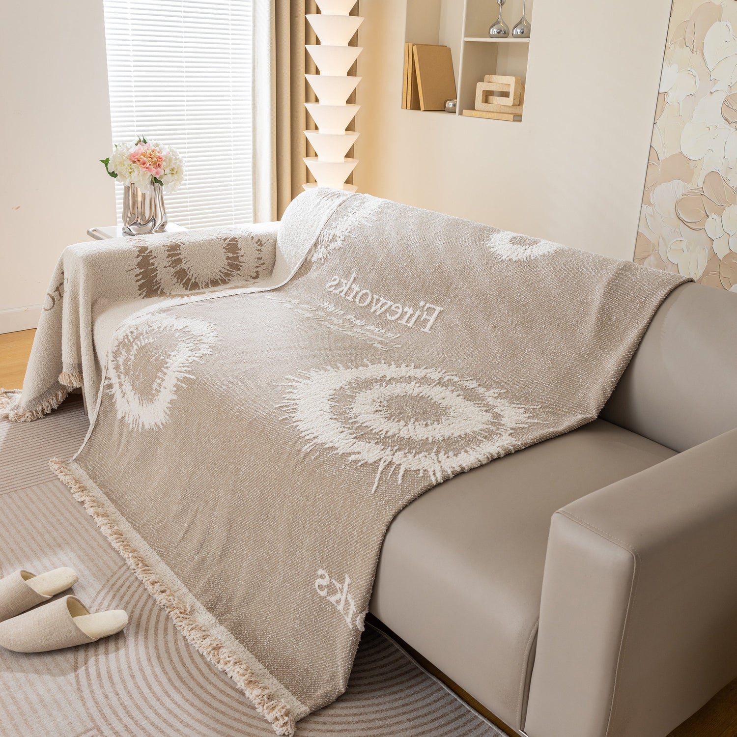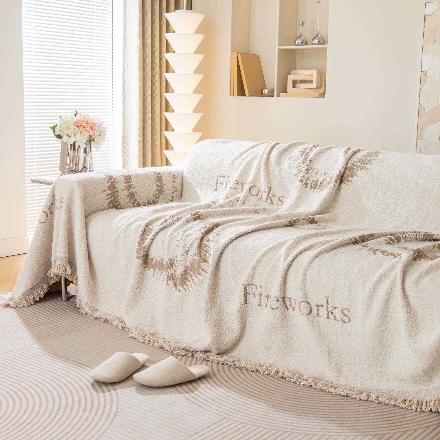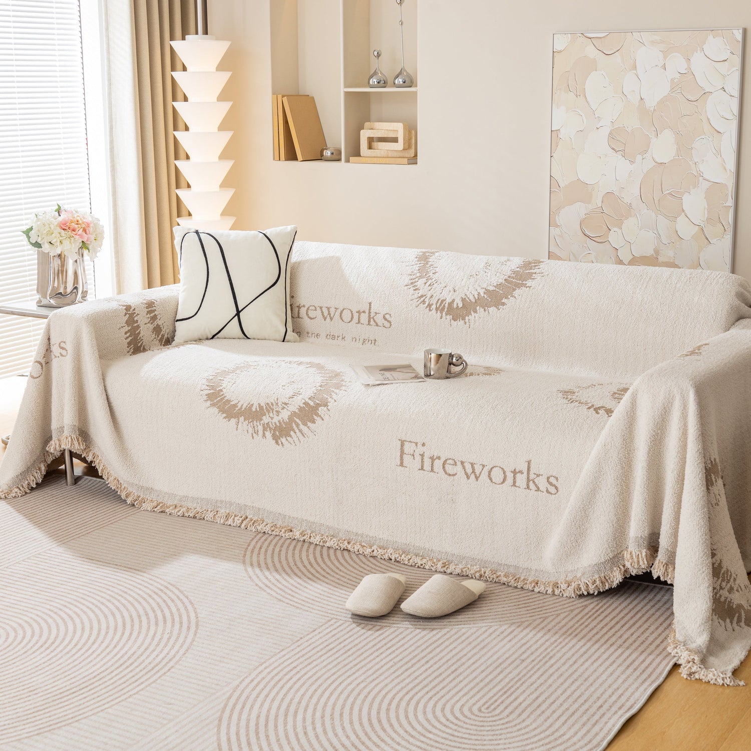 Brighten your space with the Fireworks Reversible Couch Cover Blanket. Washable, durable, and perfect for most shape sofas, it adds style and protects your furniture effortlessly.