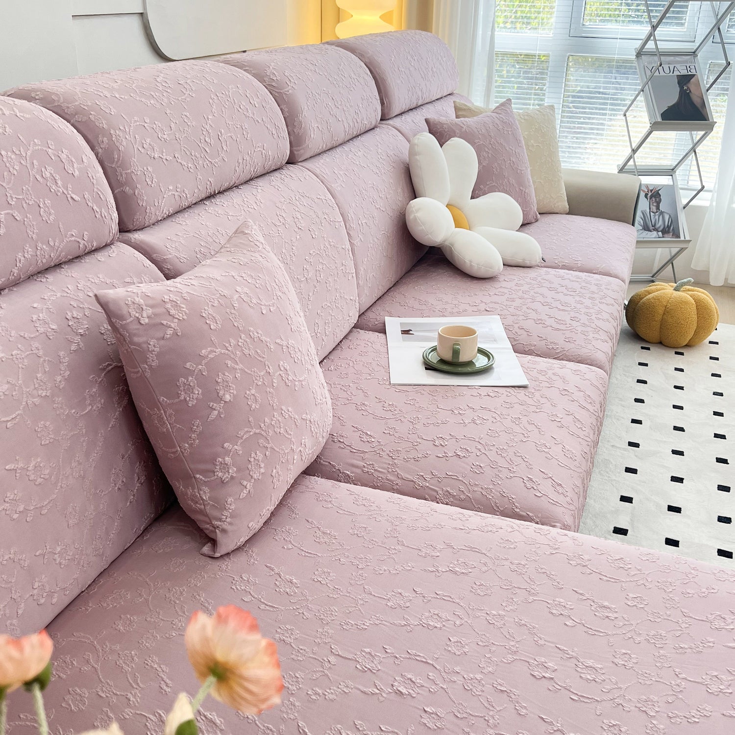Protect your couch with our KAS Frost Flower Cooling Silk Cushion Cover. Stretchable, non-slip, and easy to install. Keep your sofa seats cool and stylish. Shop now!