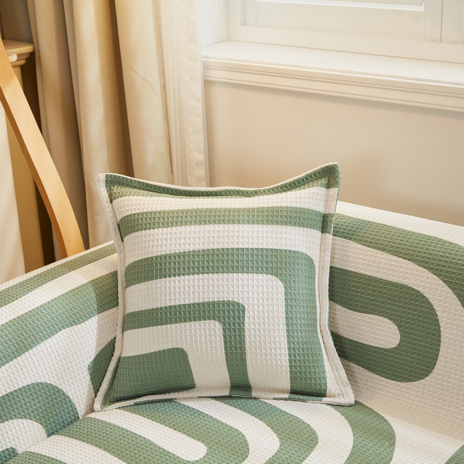 Transform your sofa into a new statement piece with the SlipcoverKAS Waffle Lattice Fabric Sofa Cover Throw. This gorgeous, lightweight furniture cover has a textured, contemporary pattern that adds an exciting layer to your living space. It's also designed for pet-proof protection and durability. Bring your style to life!