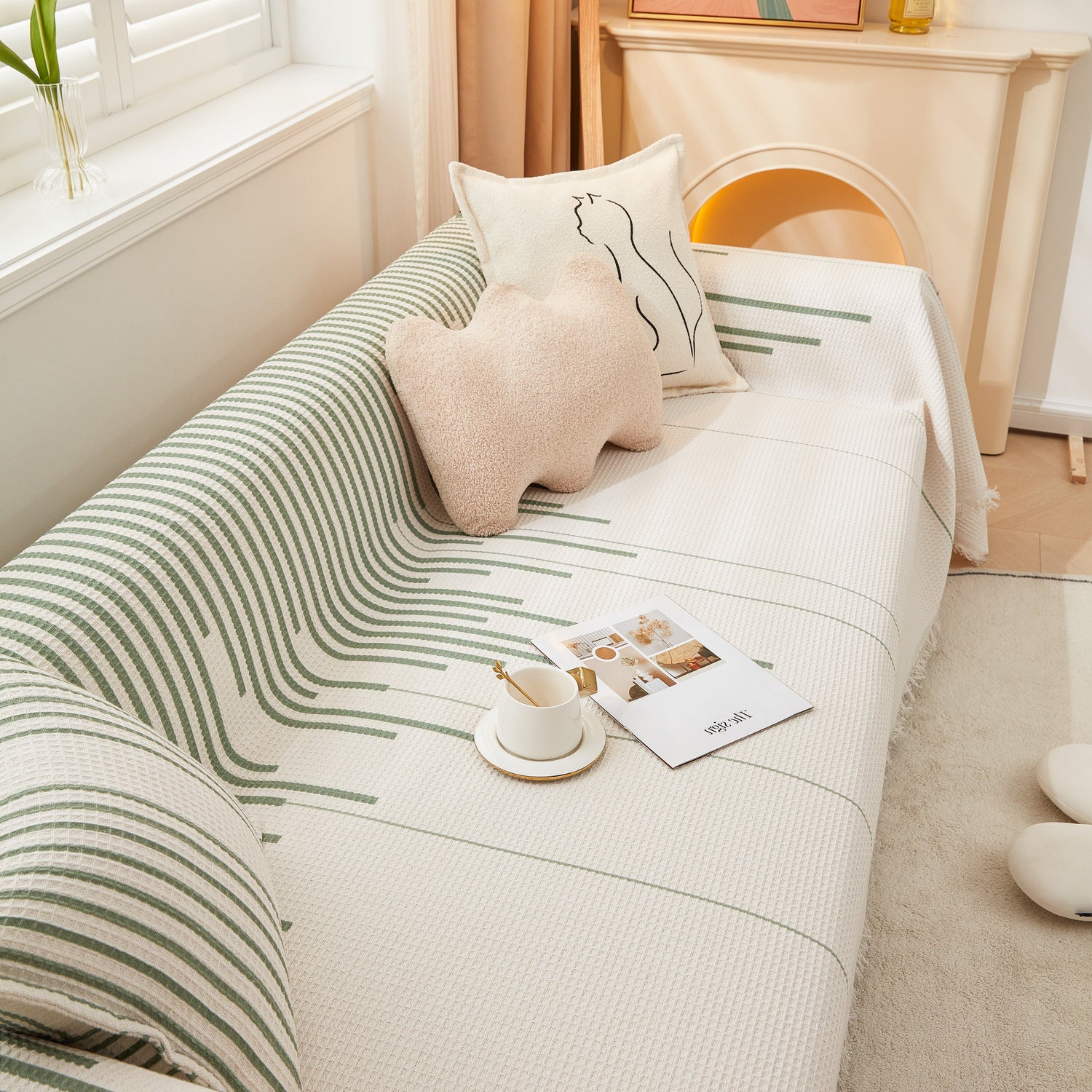 - High-quality materials: This sofa cover is made from carefully chosen, finely combed polyester fiber, providing a soft and delicate touch. It is also resistant to cat scratches.