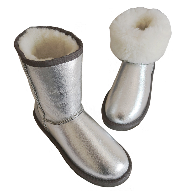 Genuine White Waterproof Women's Sheepskin Snow Boots - Metallic grey / 40 is backordered and will ship as soon as it is back in stock.