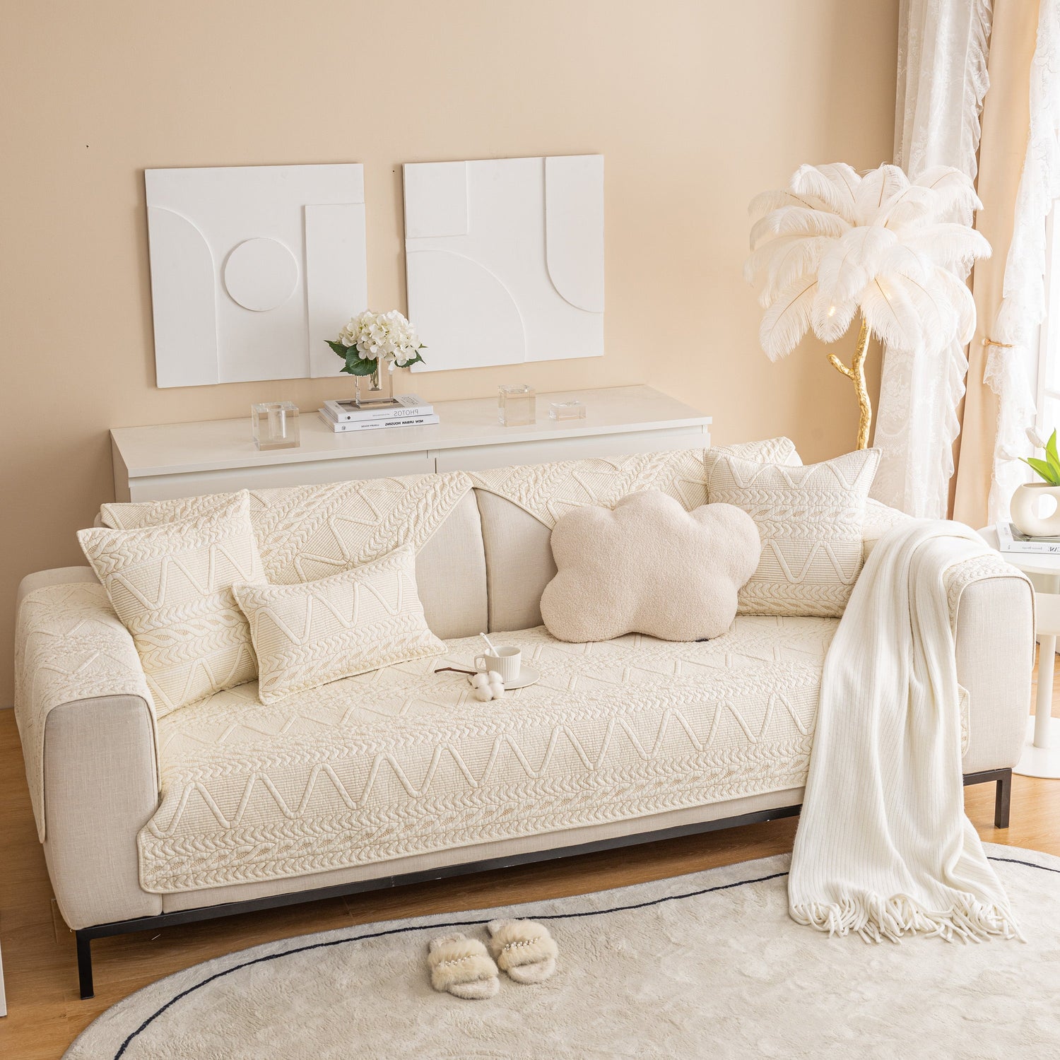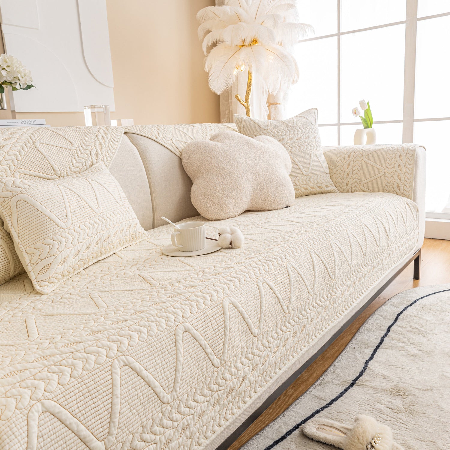 Geometric Textured Cotton Quilted Sofa Cover, Non-Slip Washable Couch Protector