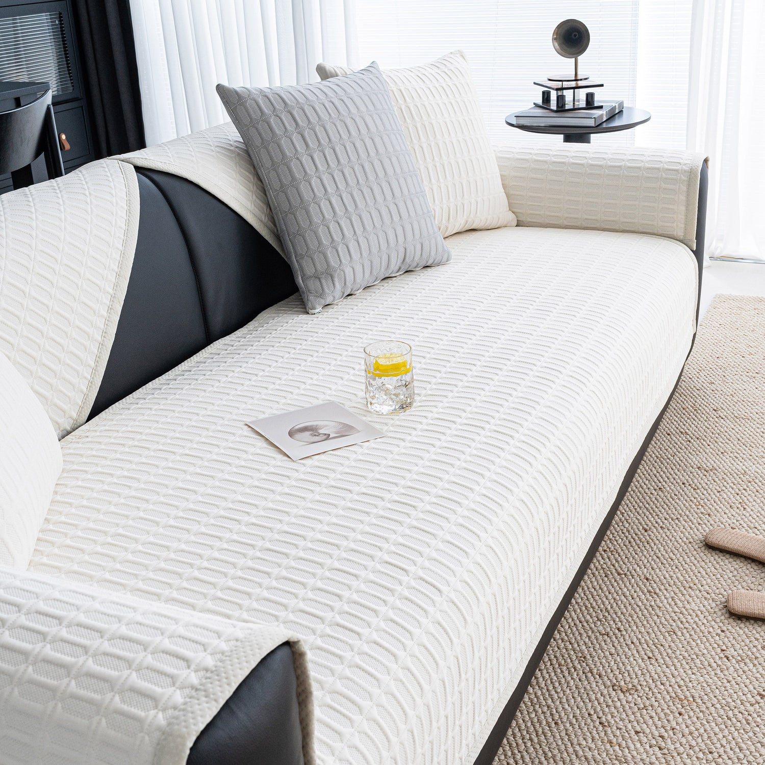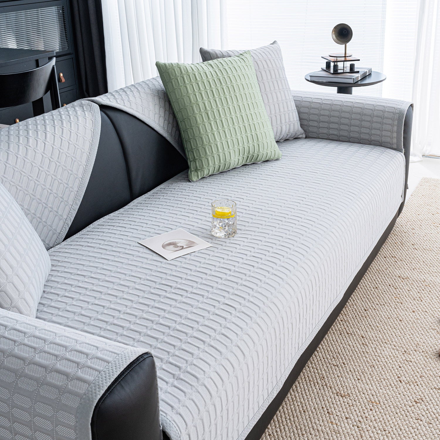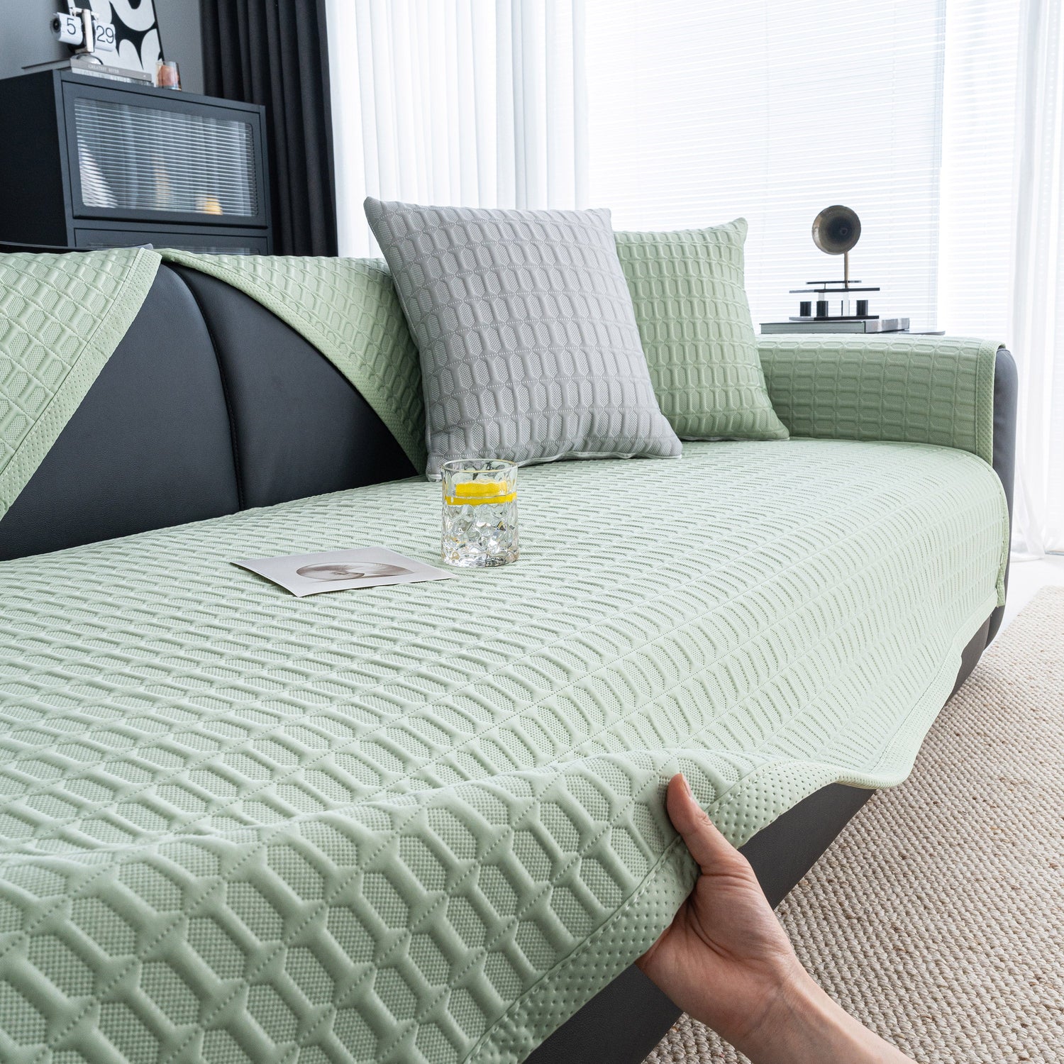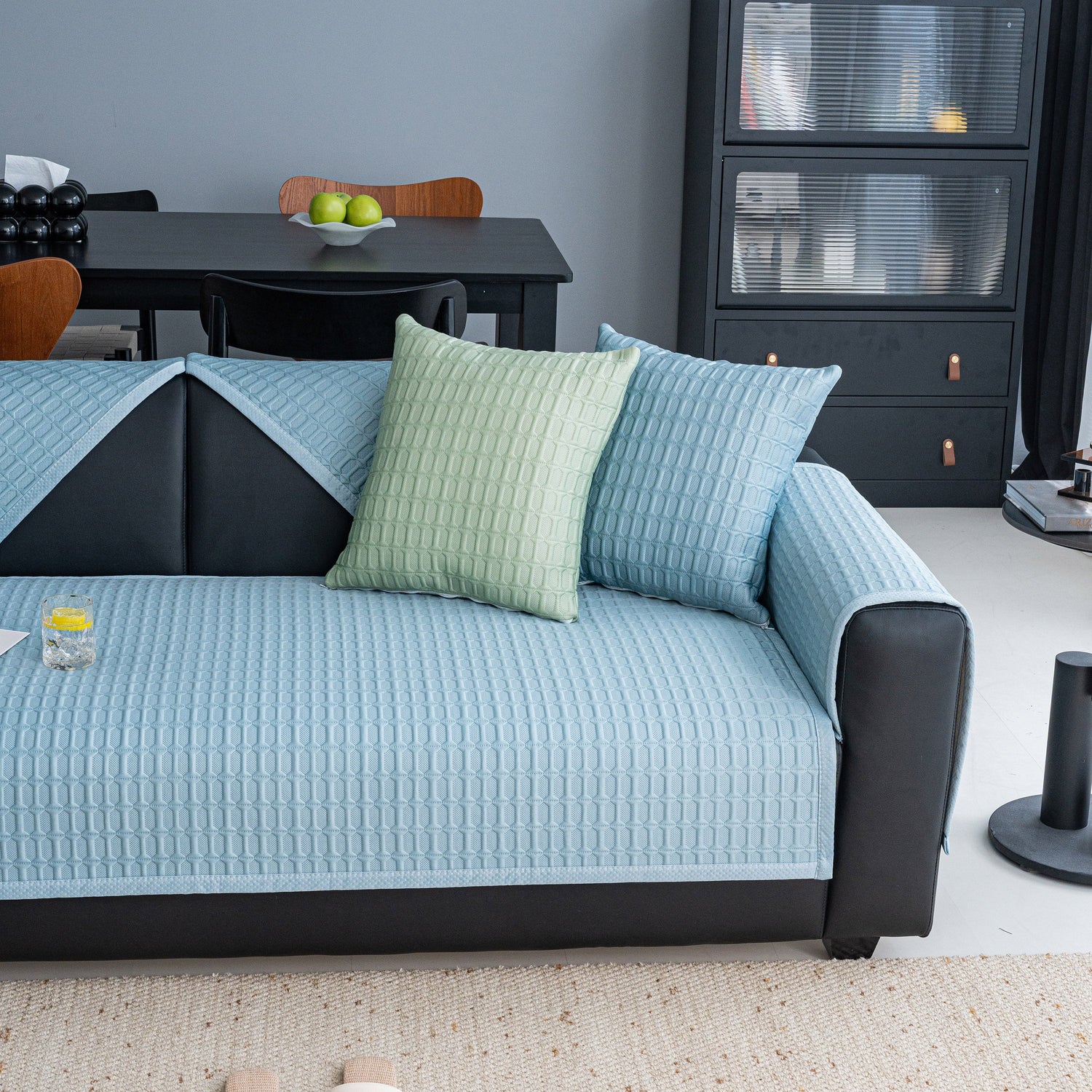 Geometric Textured Couch Slipcover Protector Non-Slip Ice Silk Sofa Cover for Couch