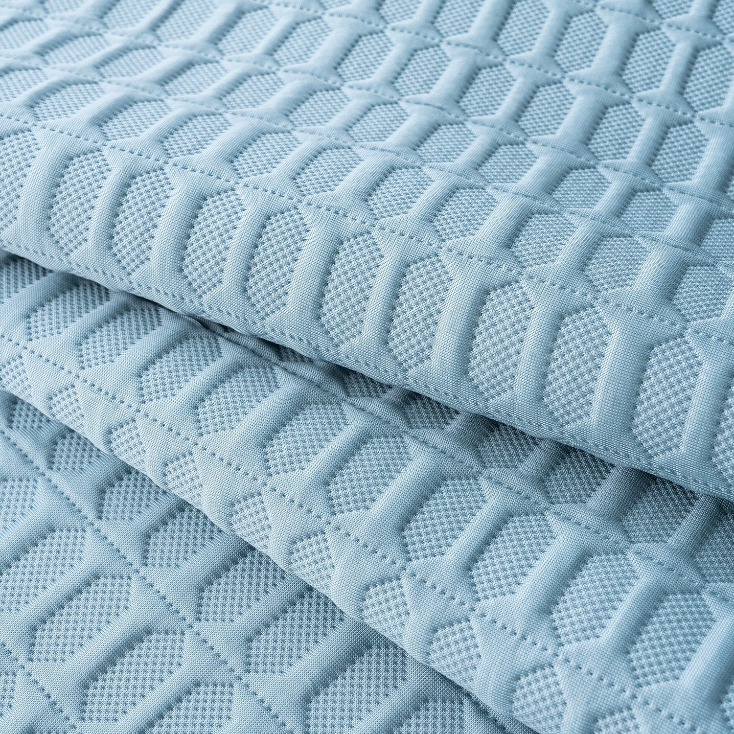 This cooling couch cover is made from a high-density polyester blend with an ice silk surface. The material is smooth, soft, and breathable, suitable for direct contact with the skin during summer. The surface features a three-dimensional geometric woven texture that adds a decorative visual effect while enhancing airflow. The back is lined with non-slip silicone dots, providing strong grip and stability on both fabric and leather sofas. Each part of the cover (seat, backrest, and armrest) is sold separately, allowing free combination to fit different sofa sizes and configurations. The cover is machine washable or hand washable, with low-temperature washing recommended. Tumble drying is not advised; air drying is preferable for maintaining product longevity.