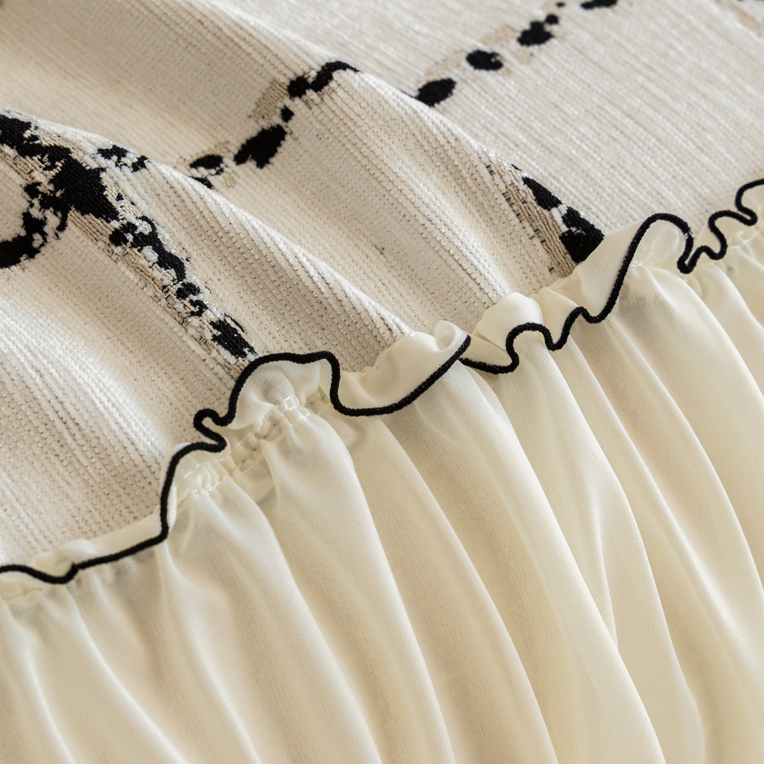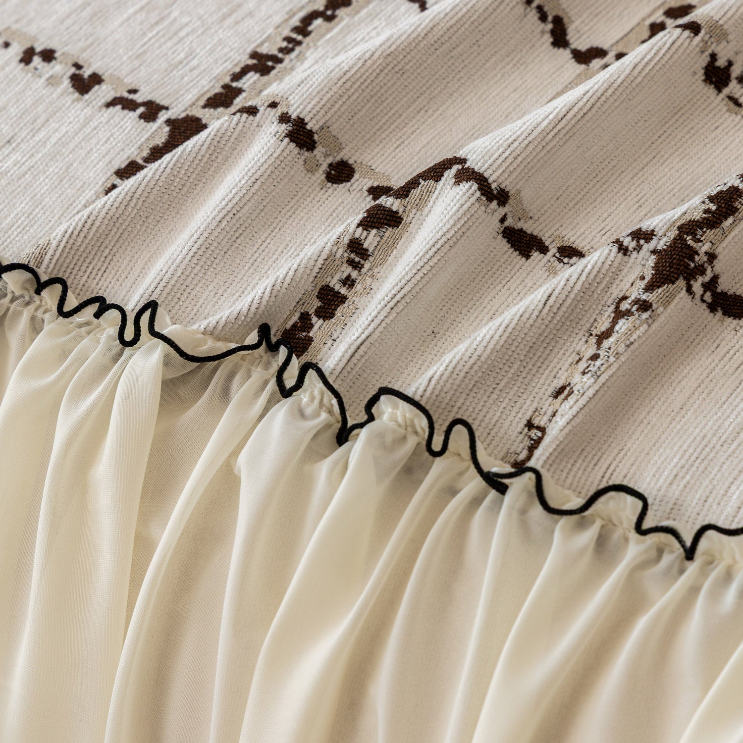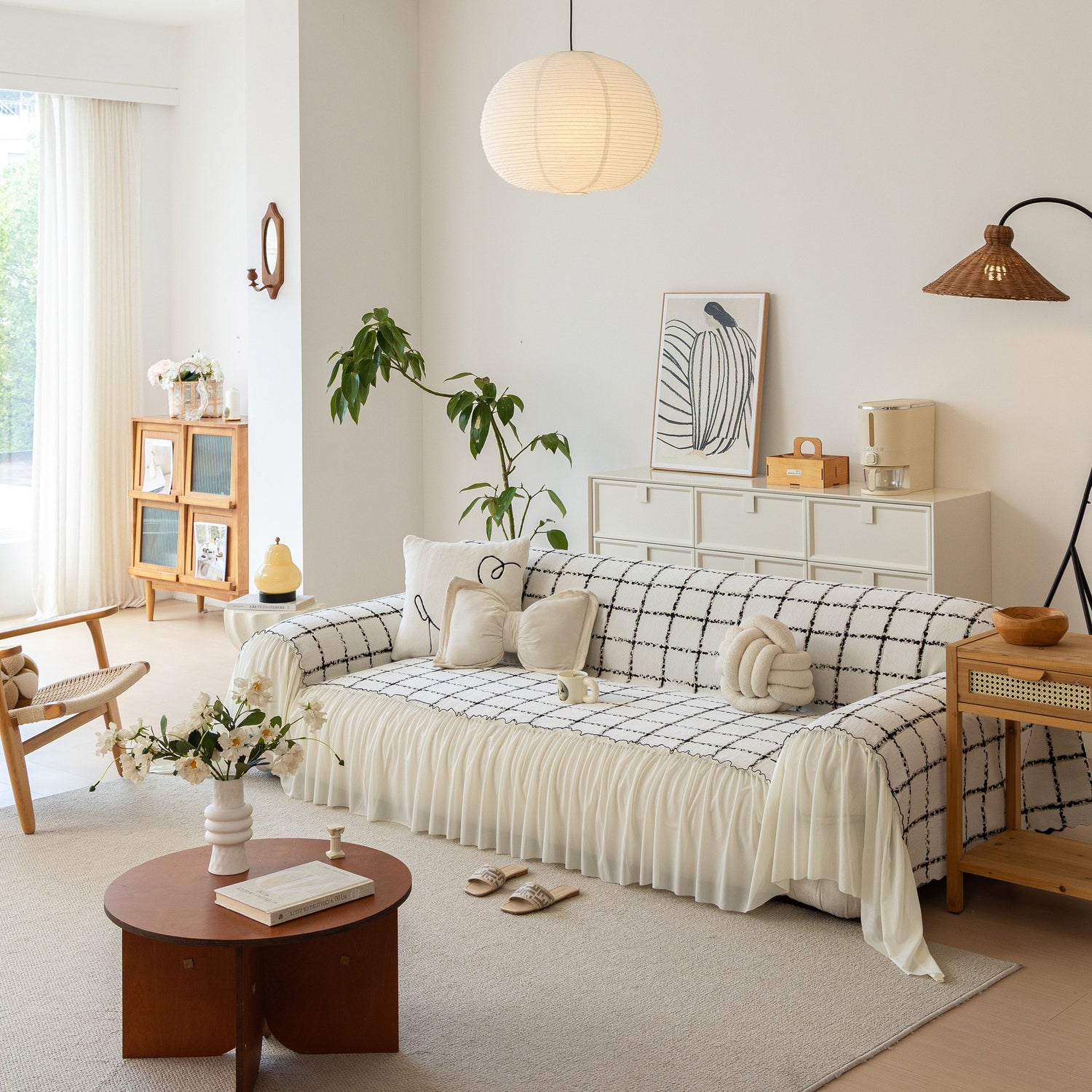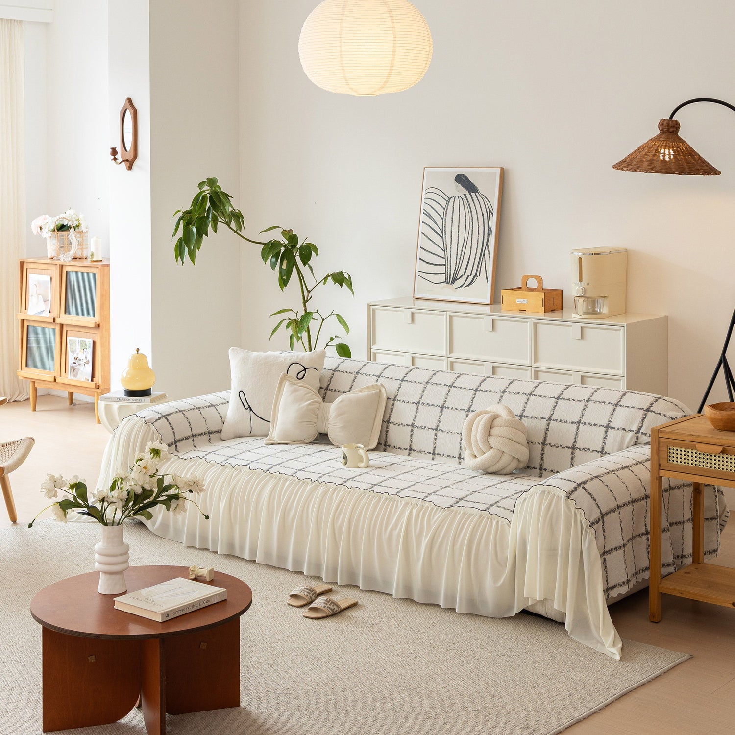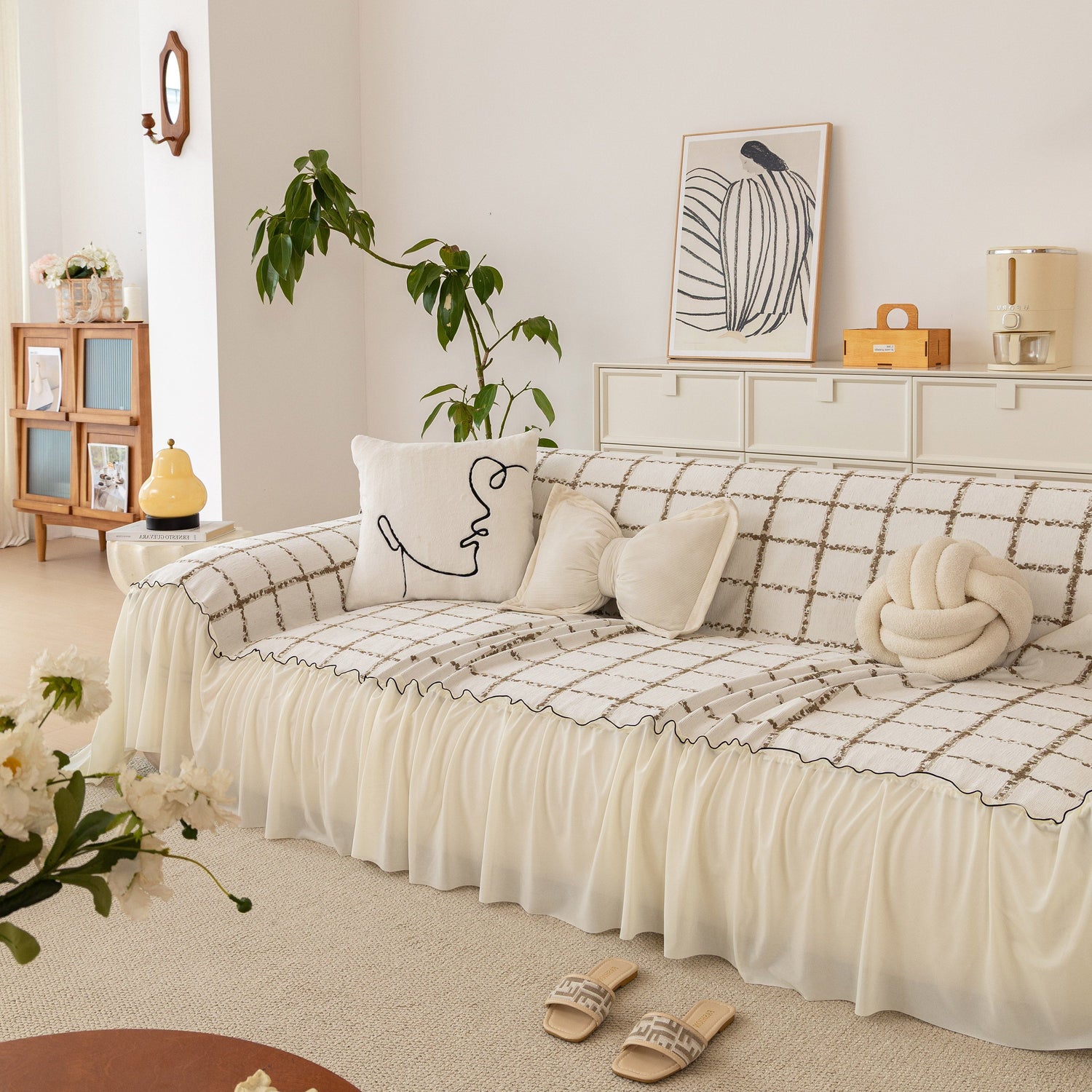 Grid Sofa Cover with Ruffle Skirt – Soft, Decorative, Full-Cover Couch Protector
