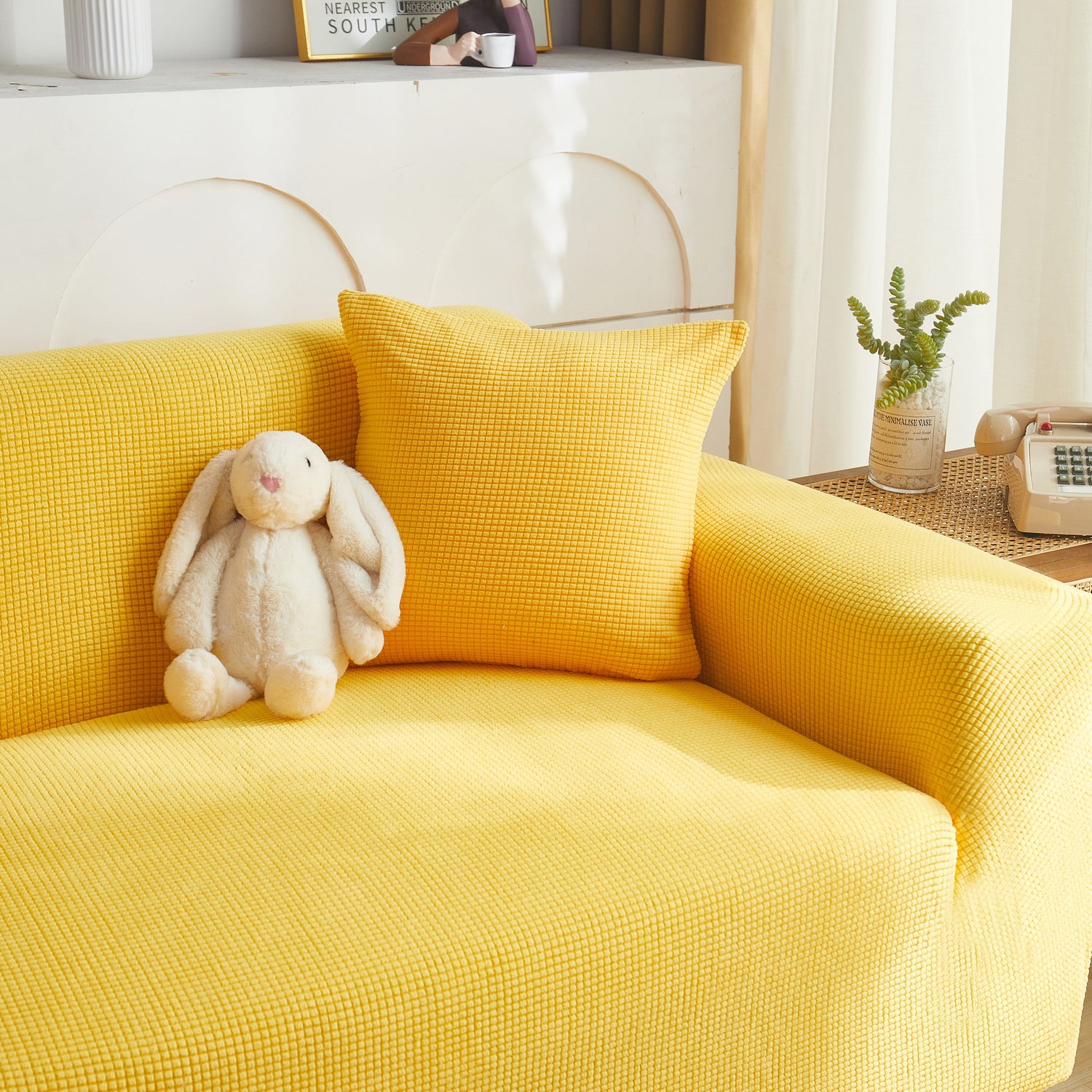 Grid Textured Stretch Sofa Cover, Soft Elastic Slipcover for Couch Protection