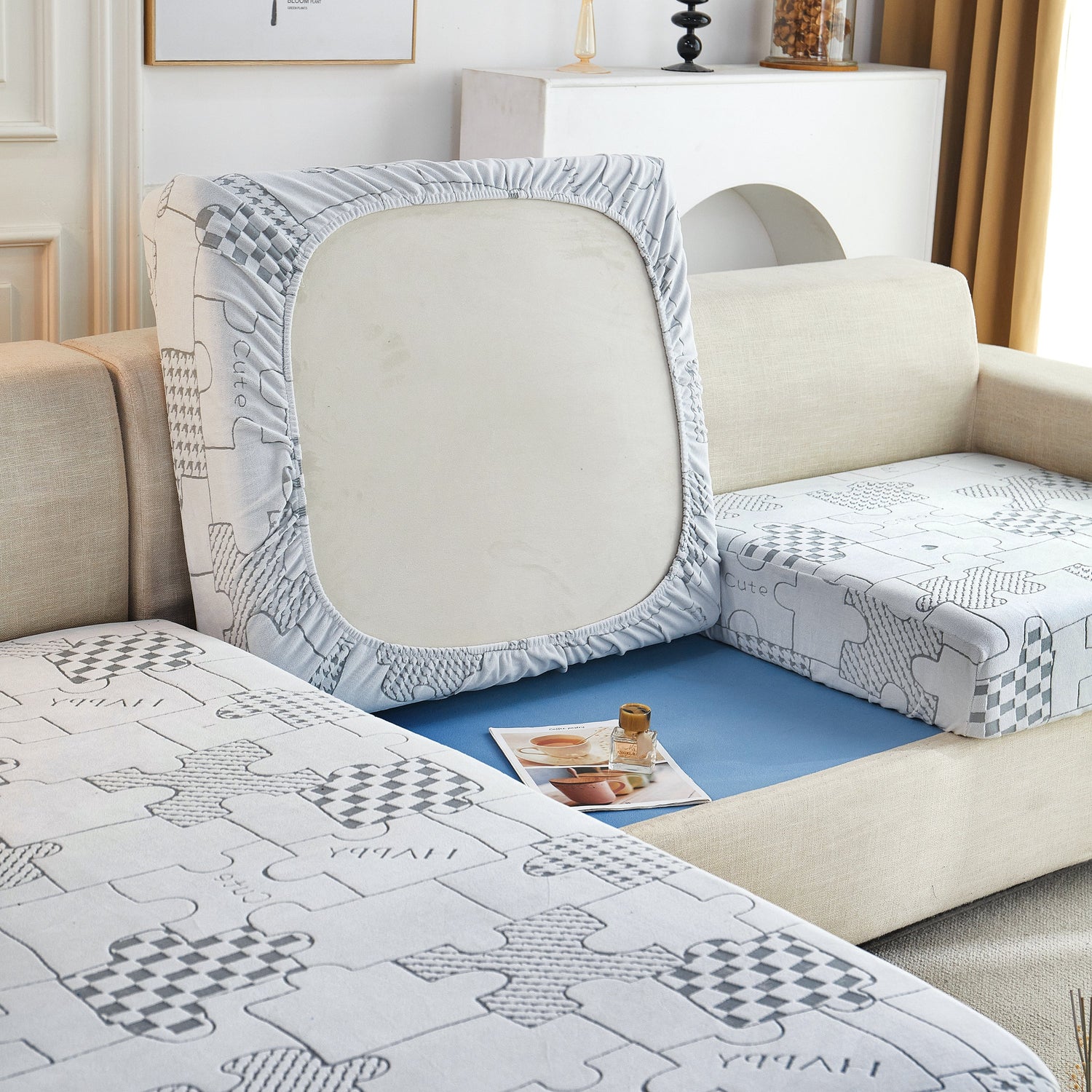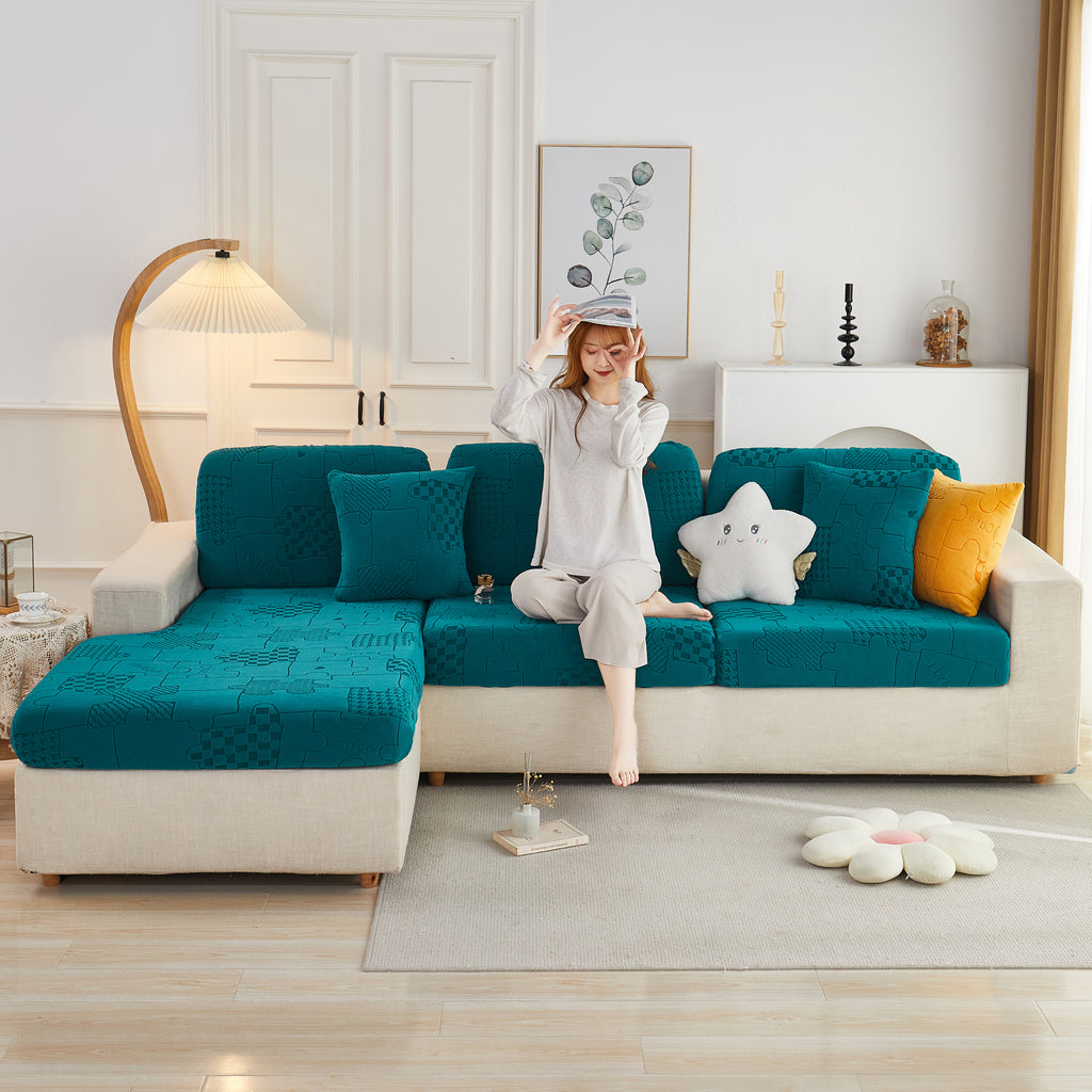 Happy Puzzle Jacquard Fleece Stretchable Cushion Cover, Non-Slip L Shaped Couch Covers for Pets