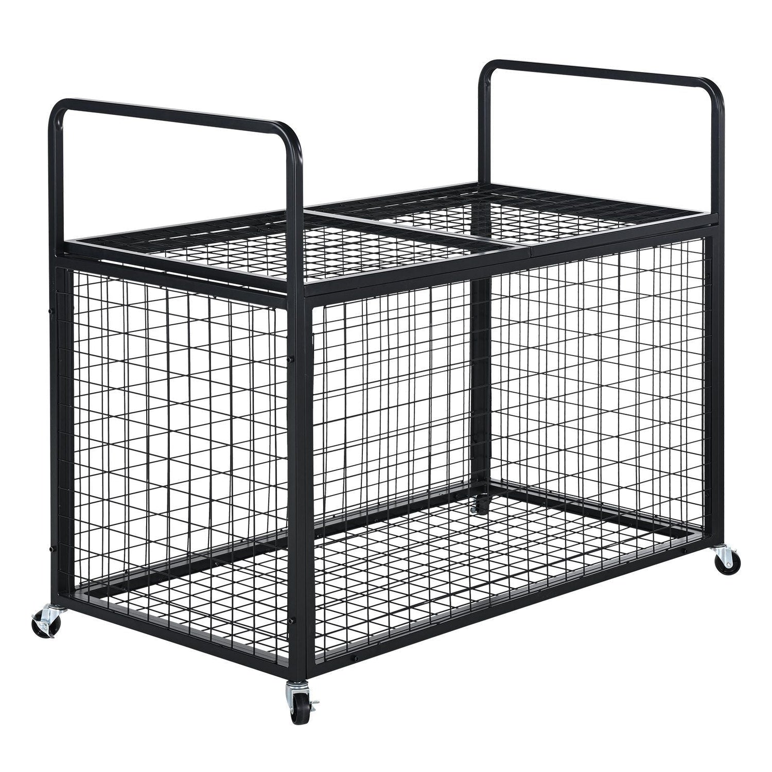 This sports equipment storage organizer features 4 swivel wheels with brakes, enabling easy mobility to any location. The wheels allow users to secure the cart with ease, enhancing the stability and safety of the cage.
