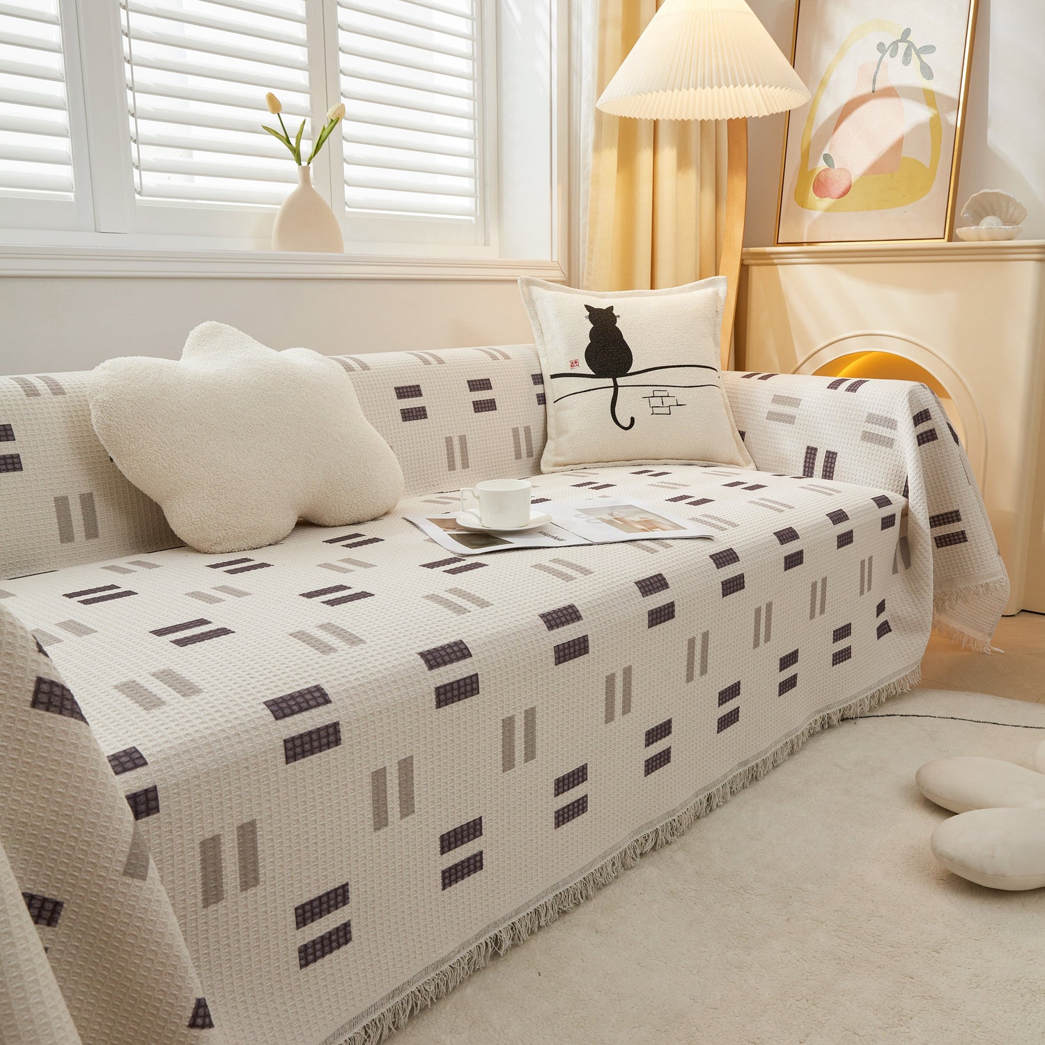 • High-quality materials: This sofa throw is crafted from a luxurious waffle fabric blend of 30% cotton and 70% polyester fiber. This combination provides a soft and delicate touch while also being resistant to cat scratches.