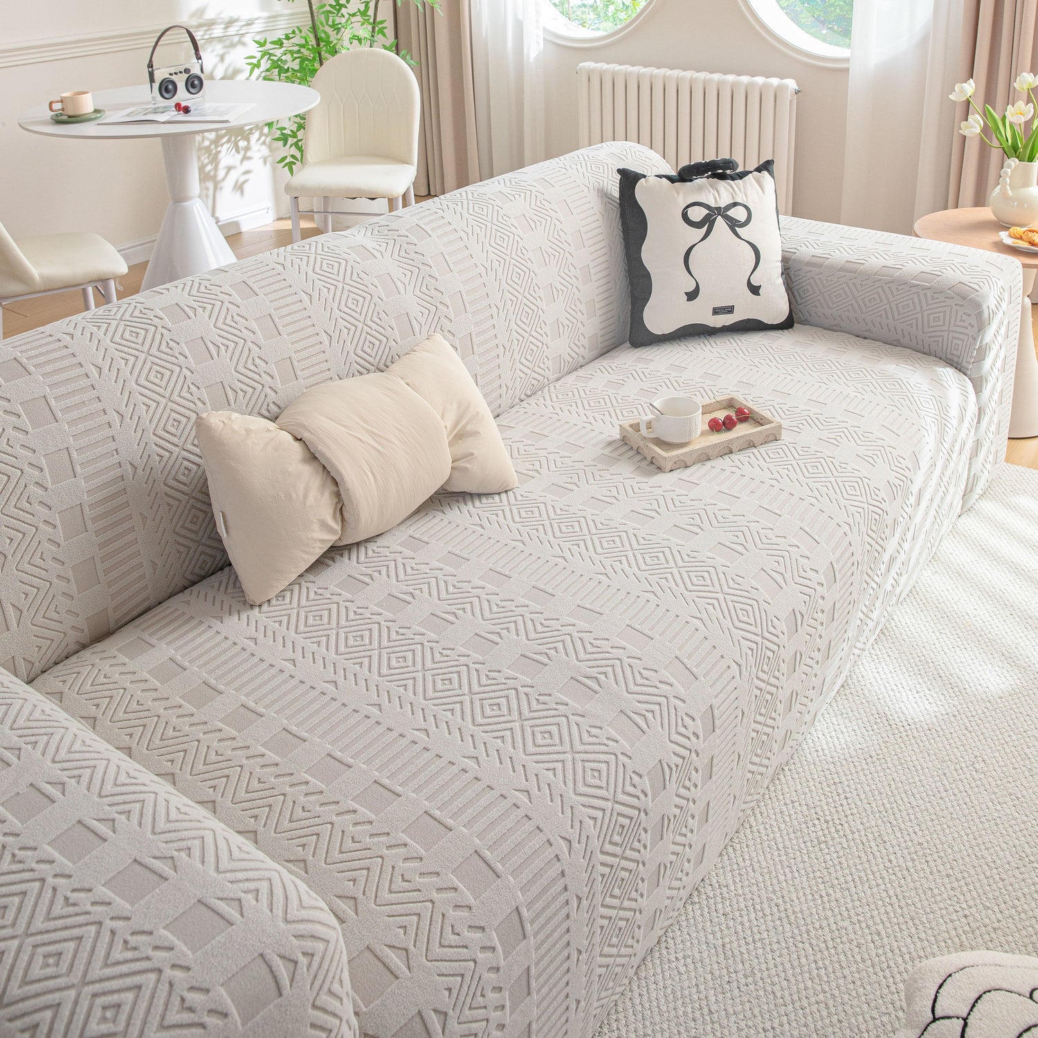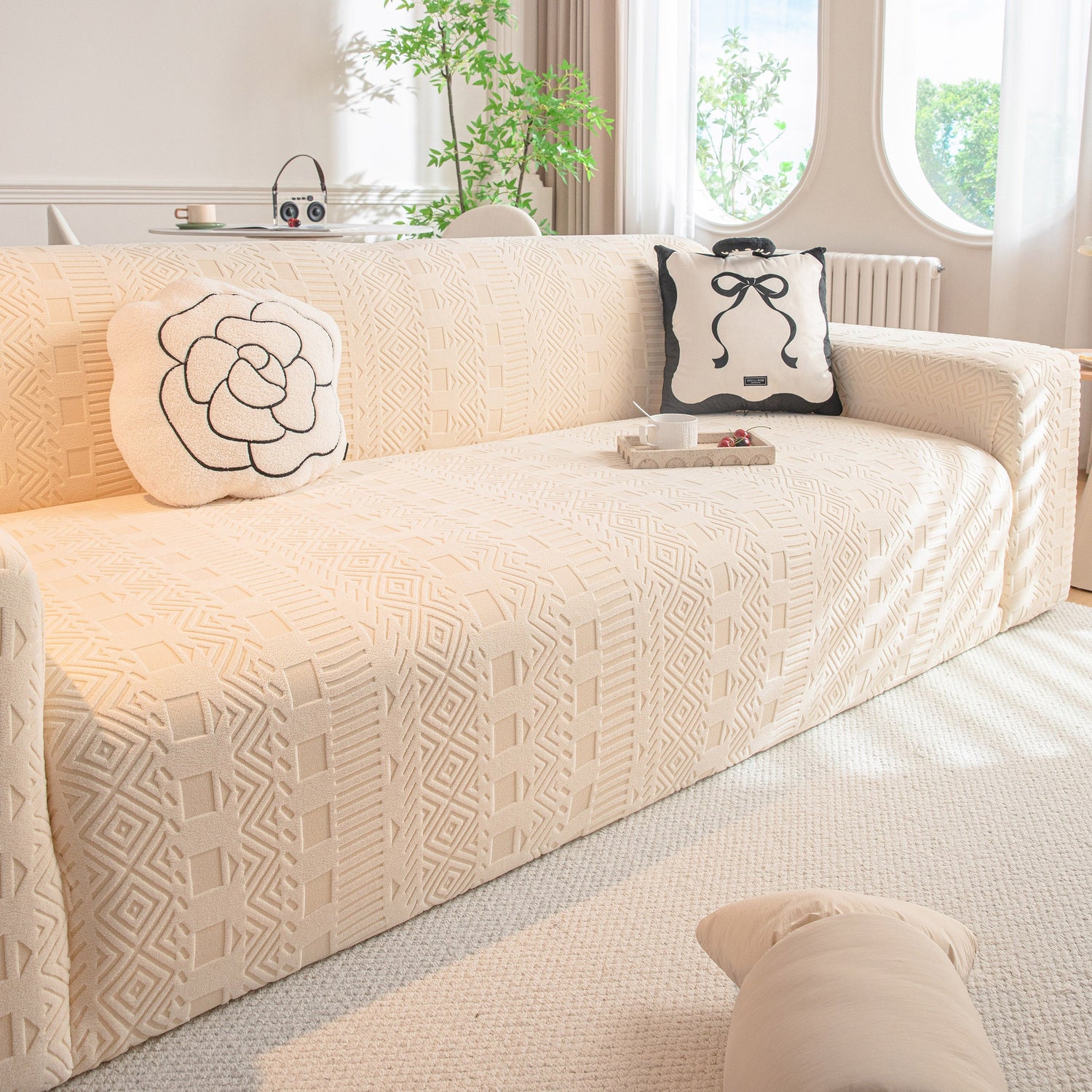 High Stretch Embossed Geometric Slipcover for Couch, Cozy Plush Fleece Couch Cover