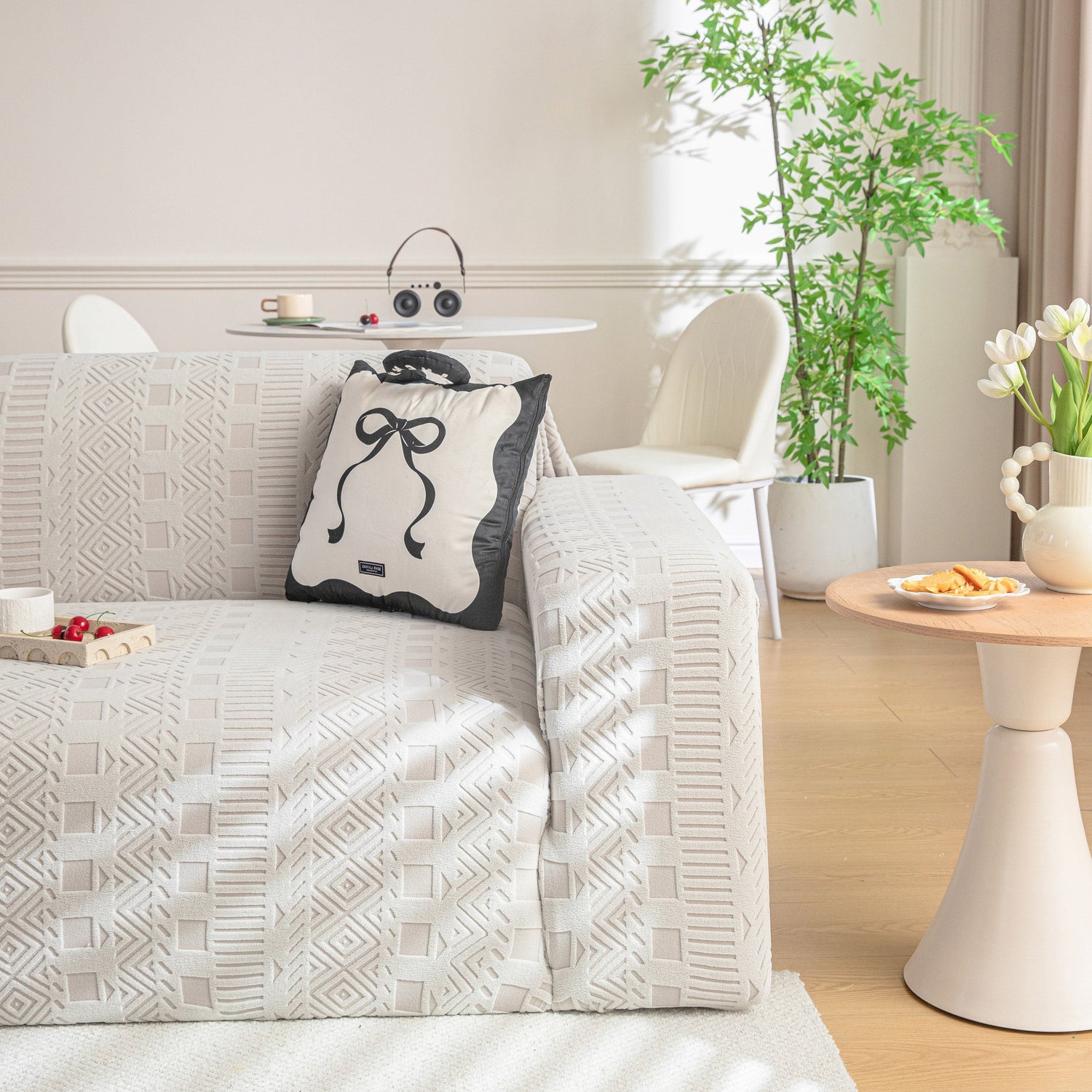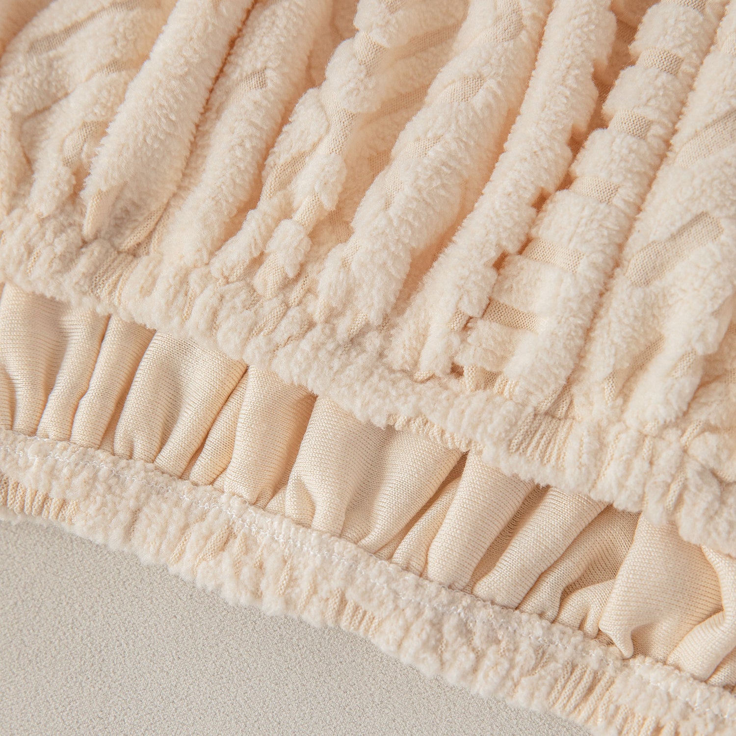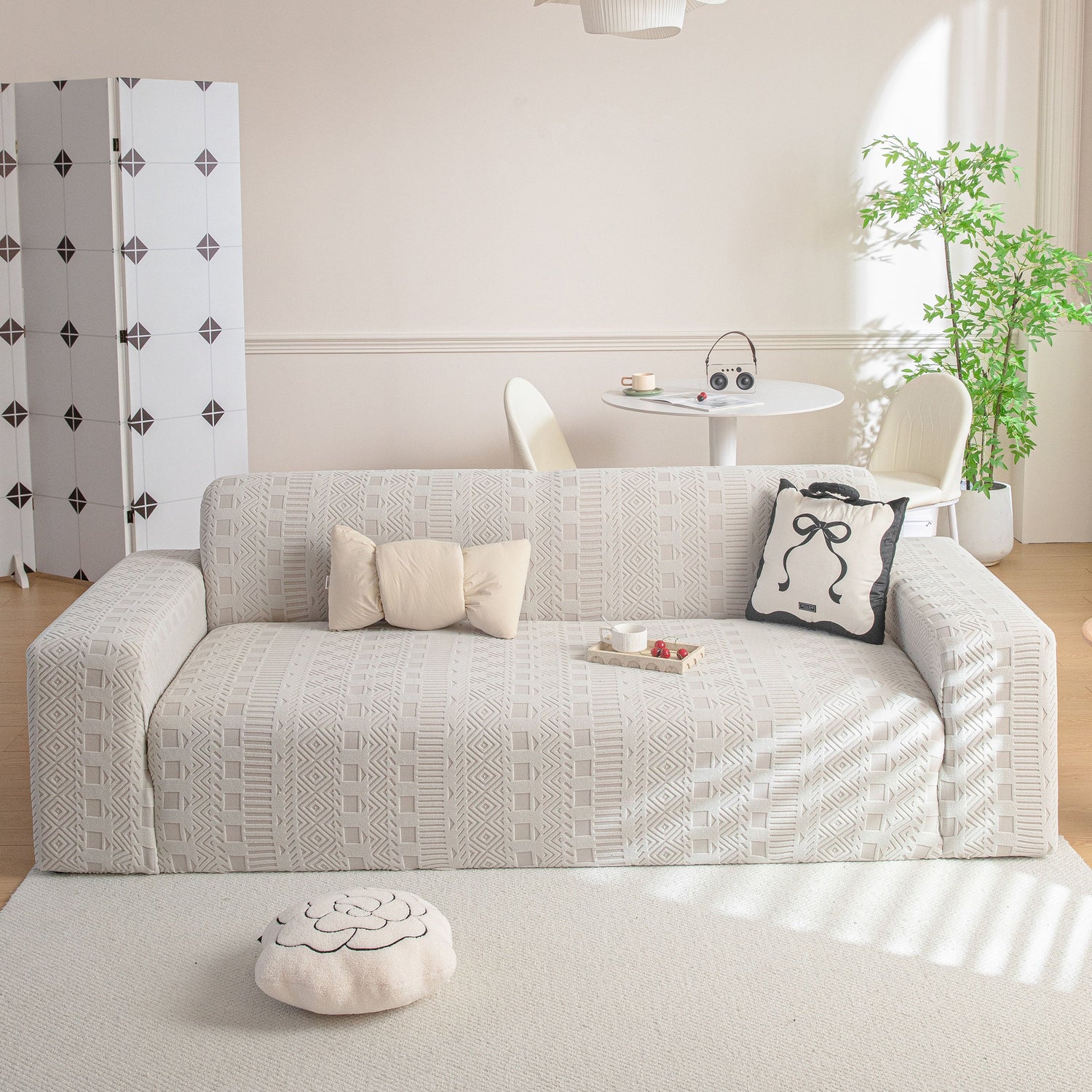 This sofa cover is made from a soft, high-quality polar fleece, designed to add both comfort and style to your living room. Its most distinct feature is the embossed geometric pattern, which gives the fabric a modern, three-dimensional texture that elevates its look beyond a simple cover. As a high-stretch slipcover, it is engineered to fit snugly over your furniture, creating a clean, tailored appearance that minimizes sagging and wrinkles. It’s a durable and practical choice for protecting your sofa from pet hair, spills, and daily wear, and is fully machine washable for easy care.