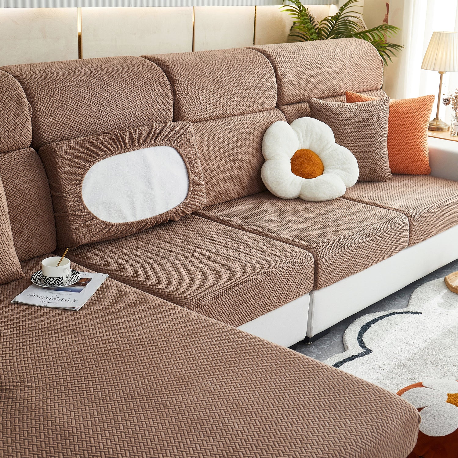 Enhance your L-shaped sectional couch with our high-stretch sofa slipcover. Designed with separate cushion covers for a snug fit, it offers excellent protection against wear and stains. Easy to install and perfect for homes.