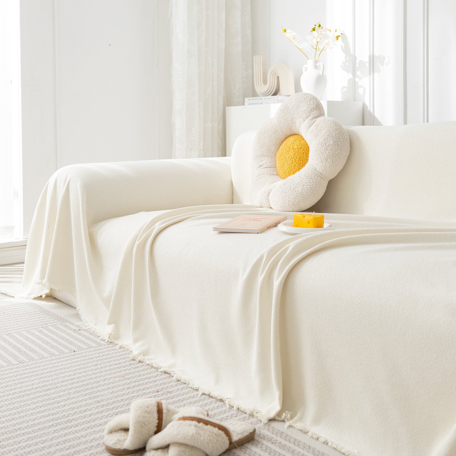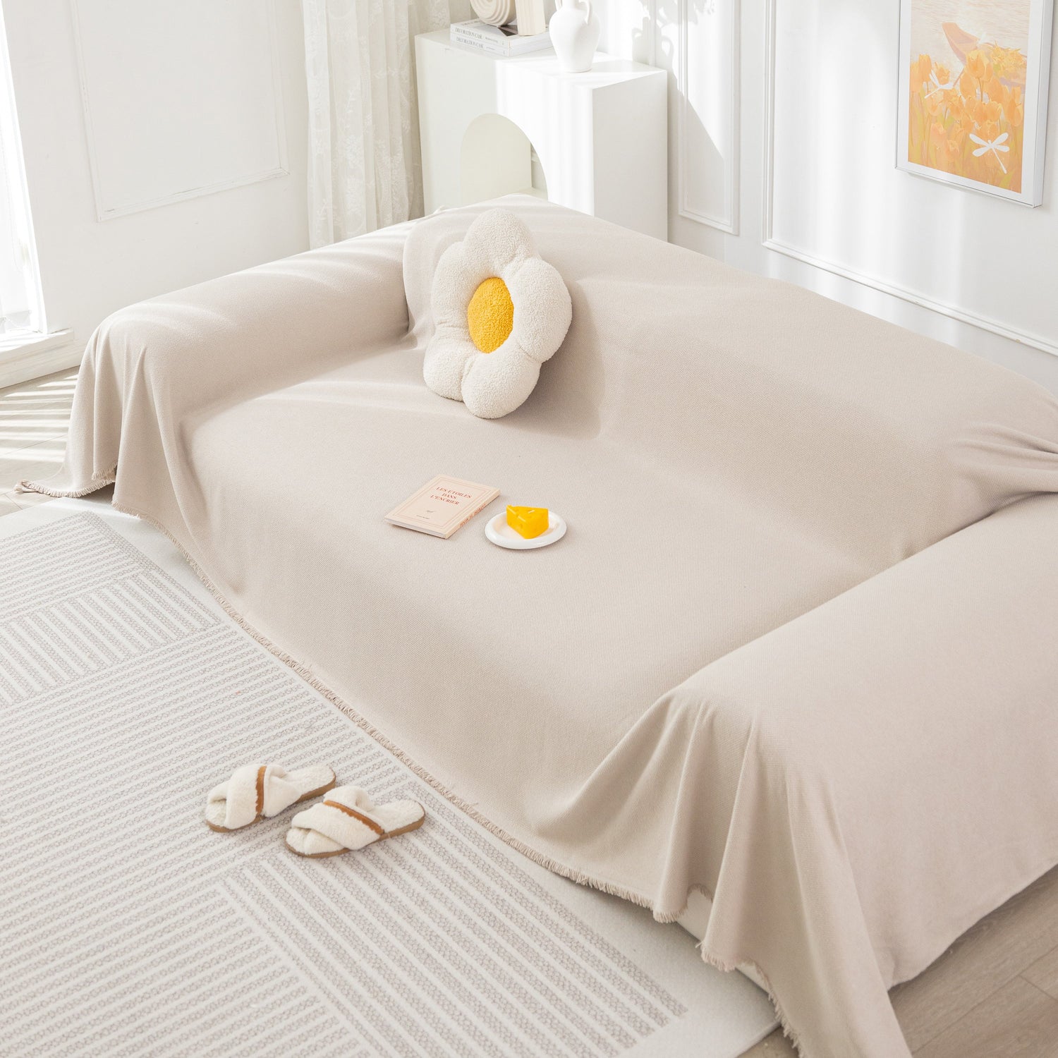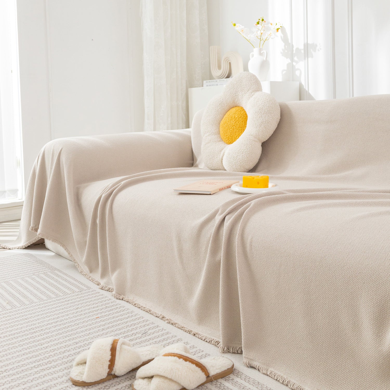 - Simple and Elegant Luxe: Elevate the Texture with a Minimalist and Elegant Design. The addition of fringe embellishments enhances the aesthetic appeal of the sofa, adding a touch of liveliness.
