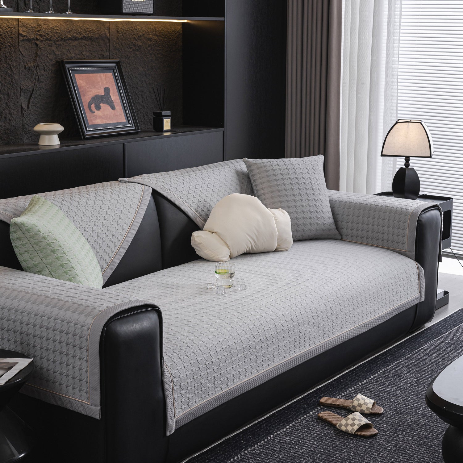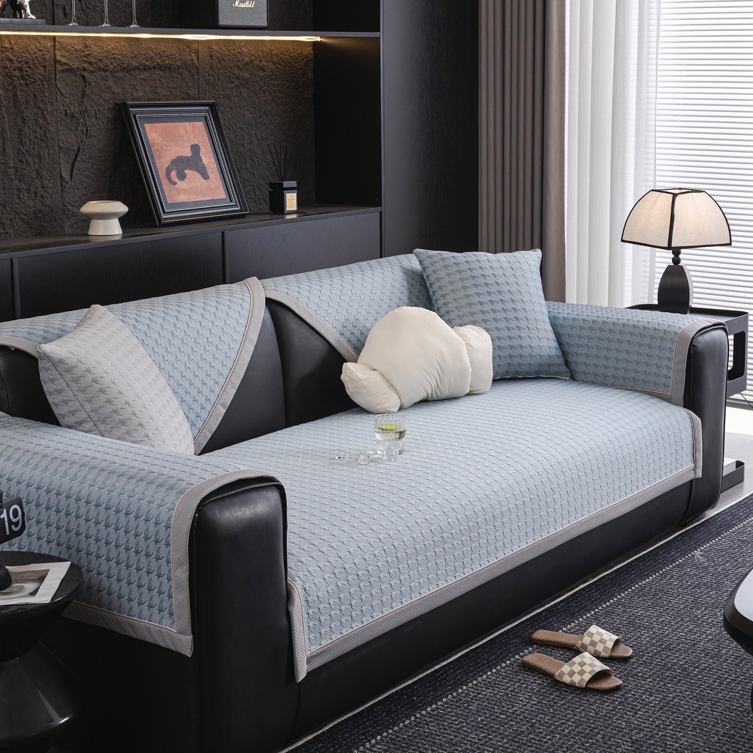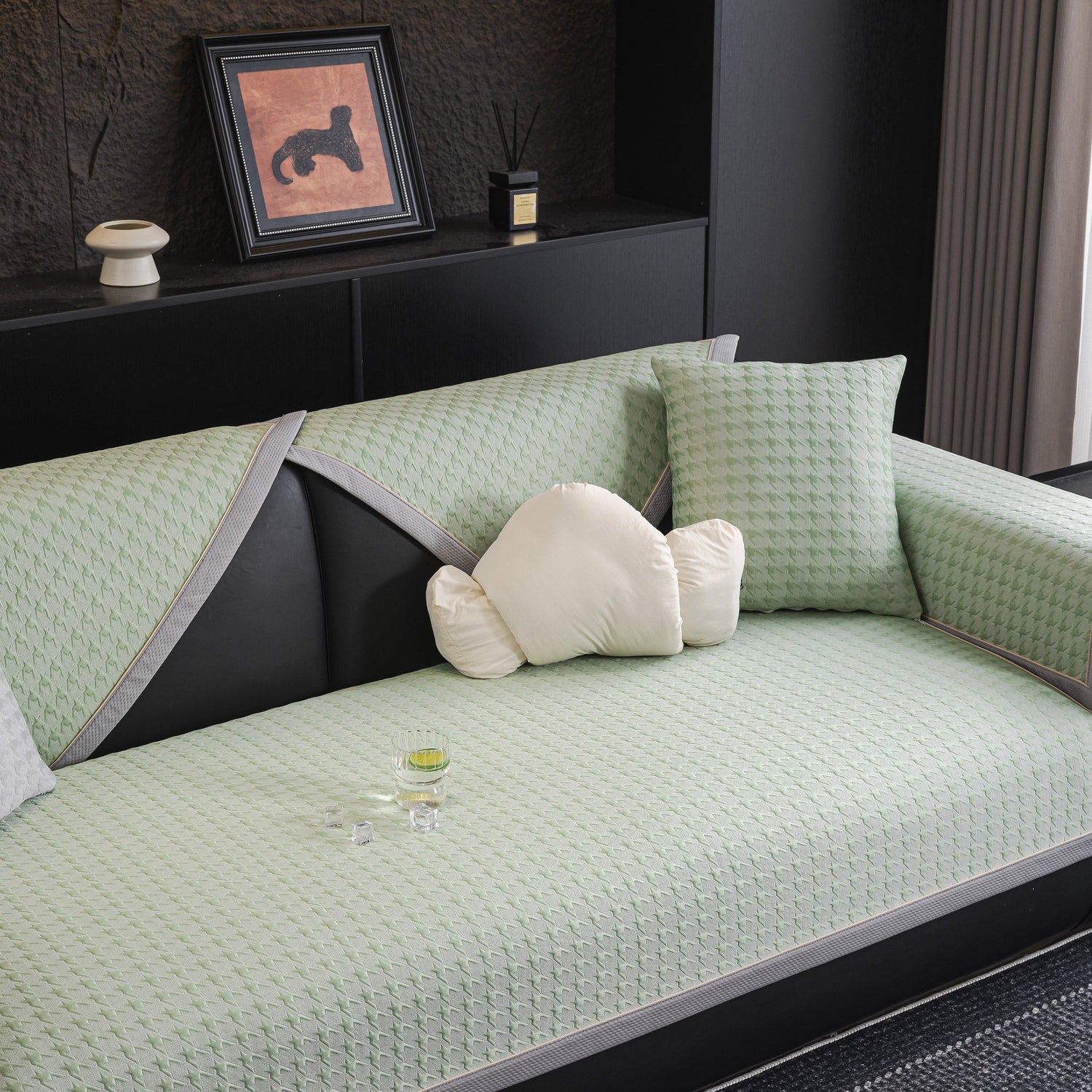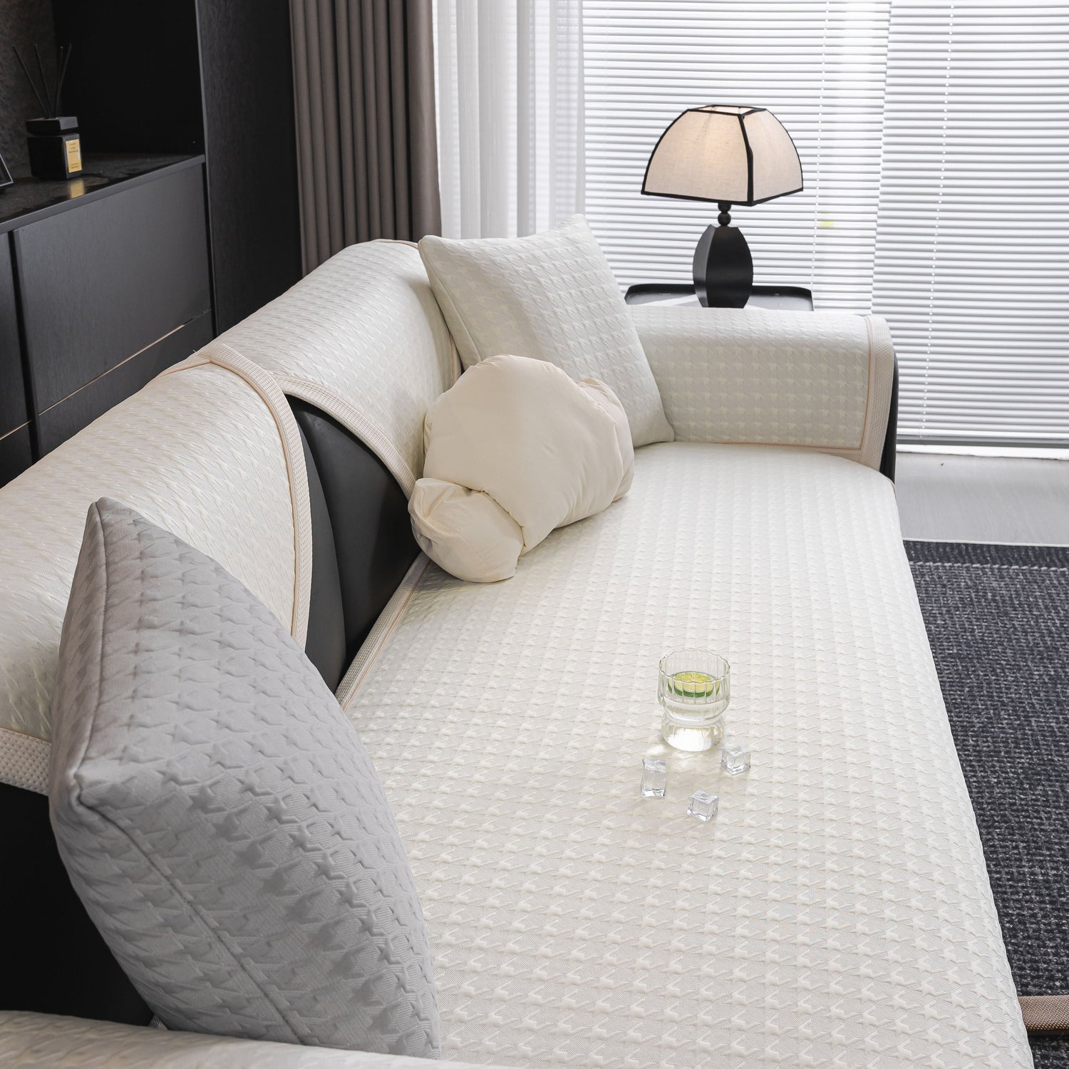 Houndstooth Ice Silk Breathable Sofa Cover, Modern Non-Slip Summer Couch Protector