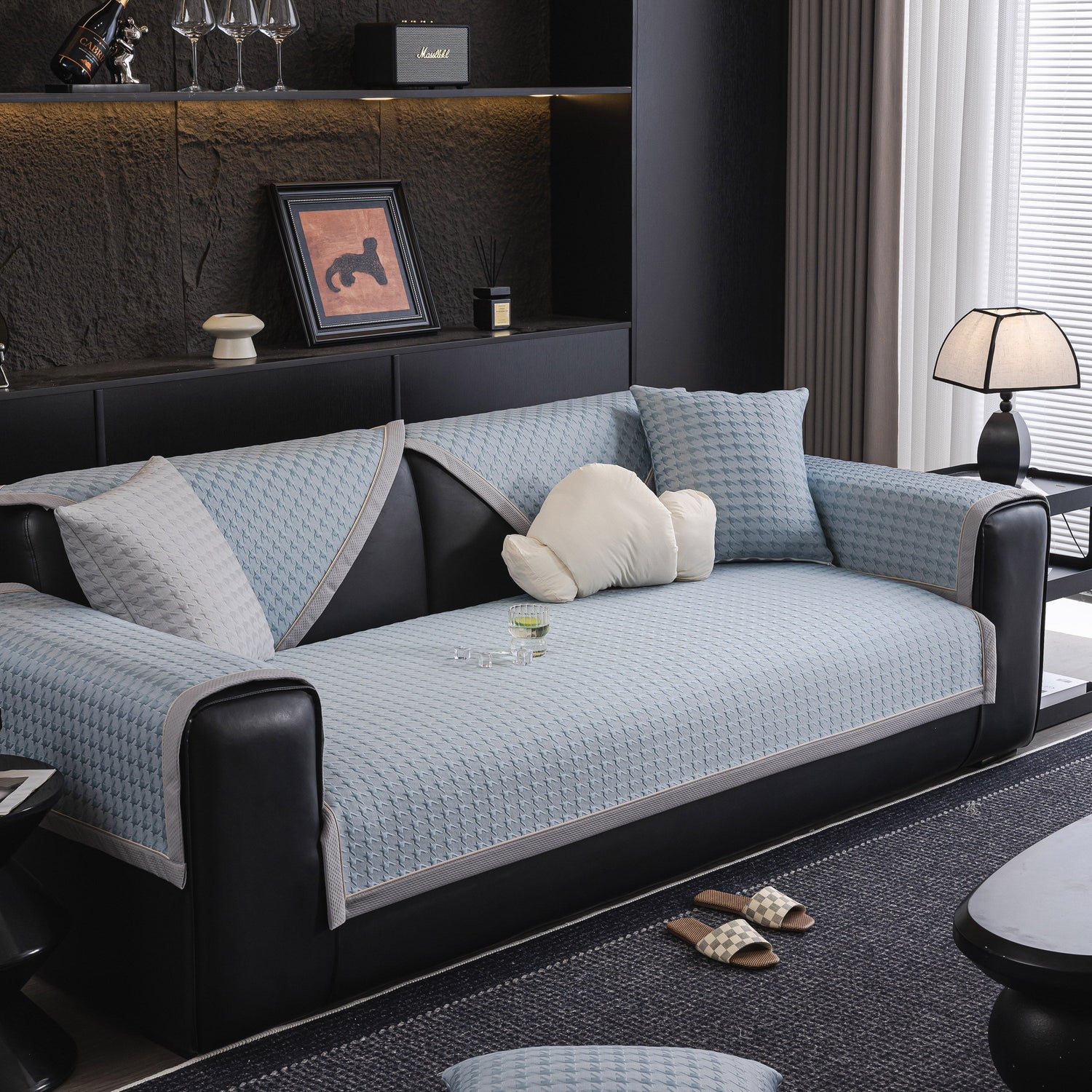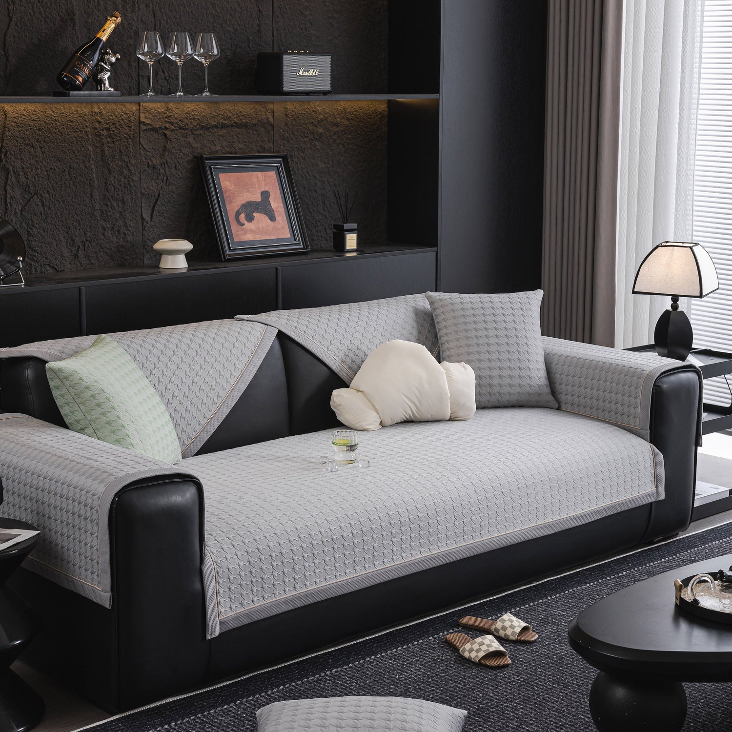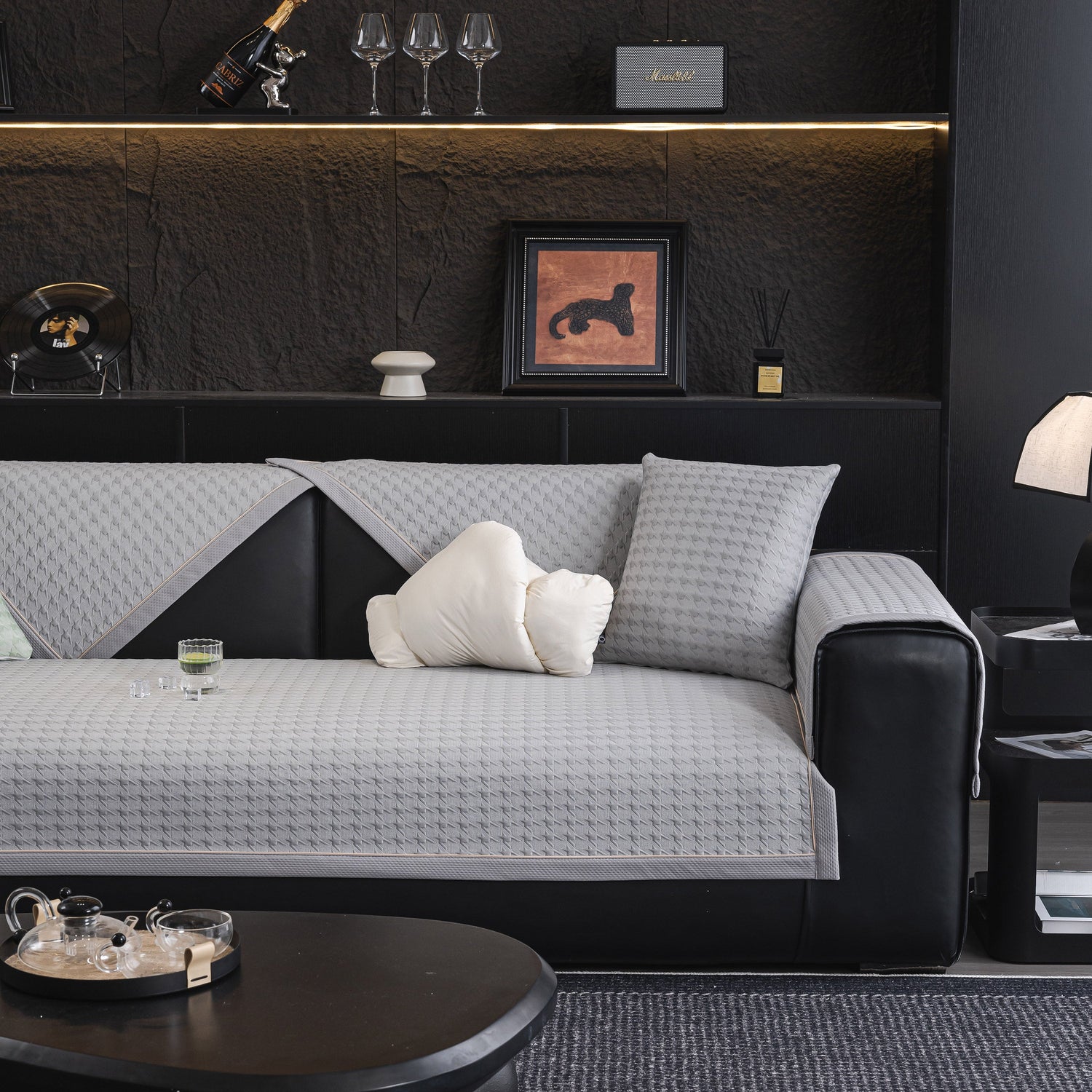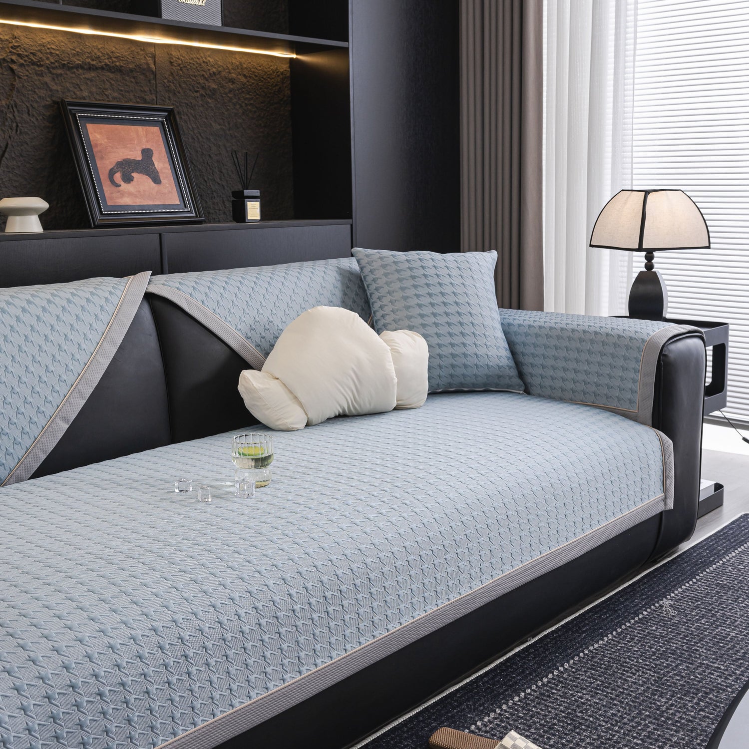 Houndstooth Ice Silk Breathable Sofa Cover, Modern Non-Slip Summer Couch Protector
