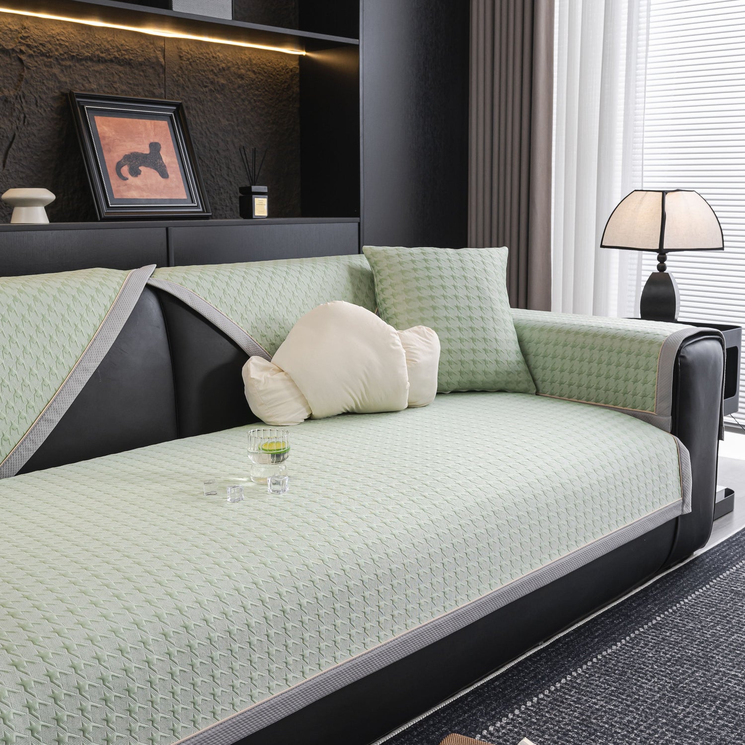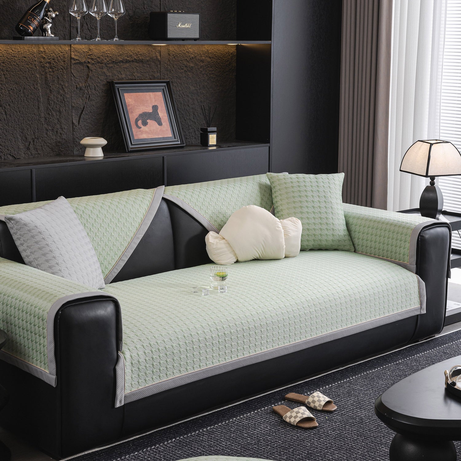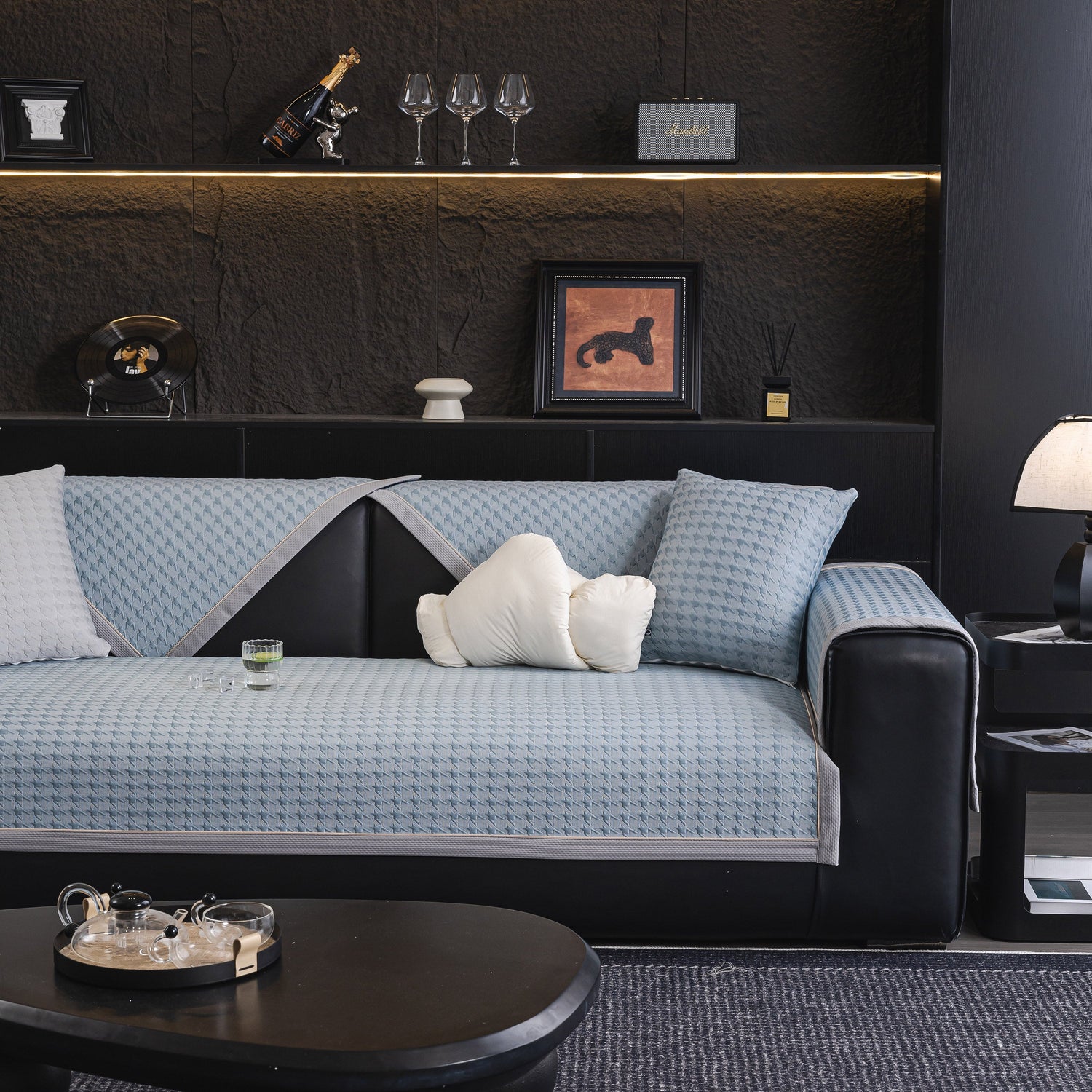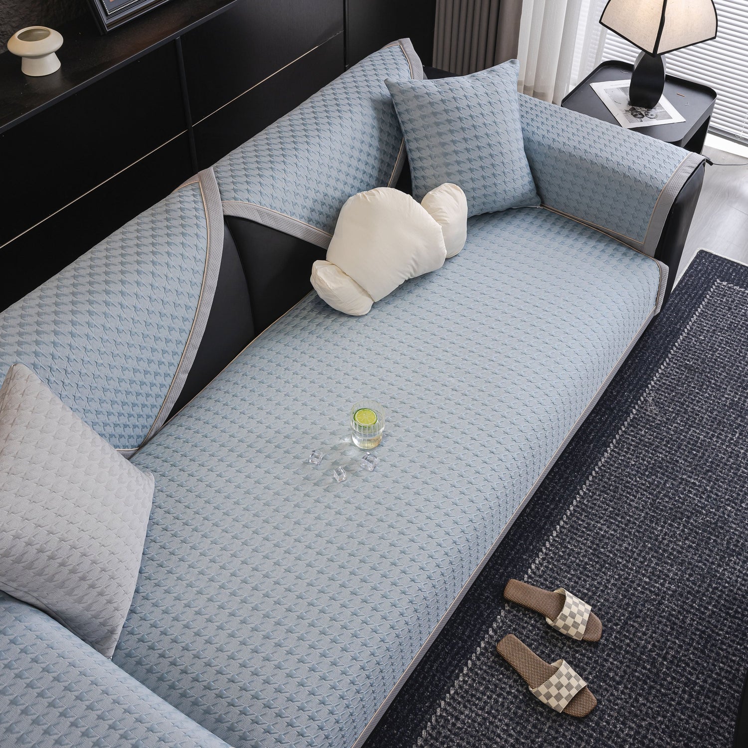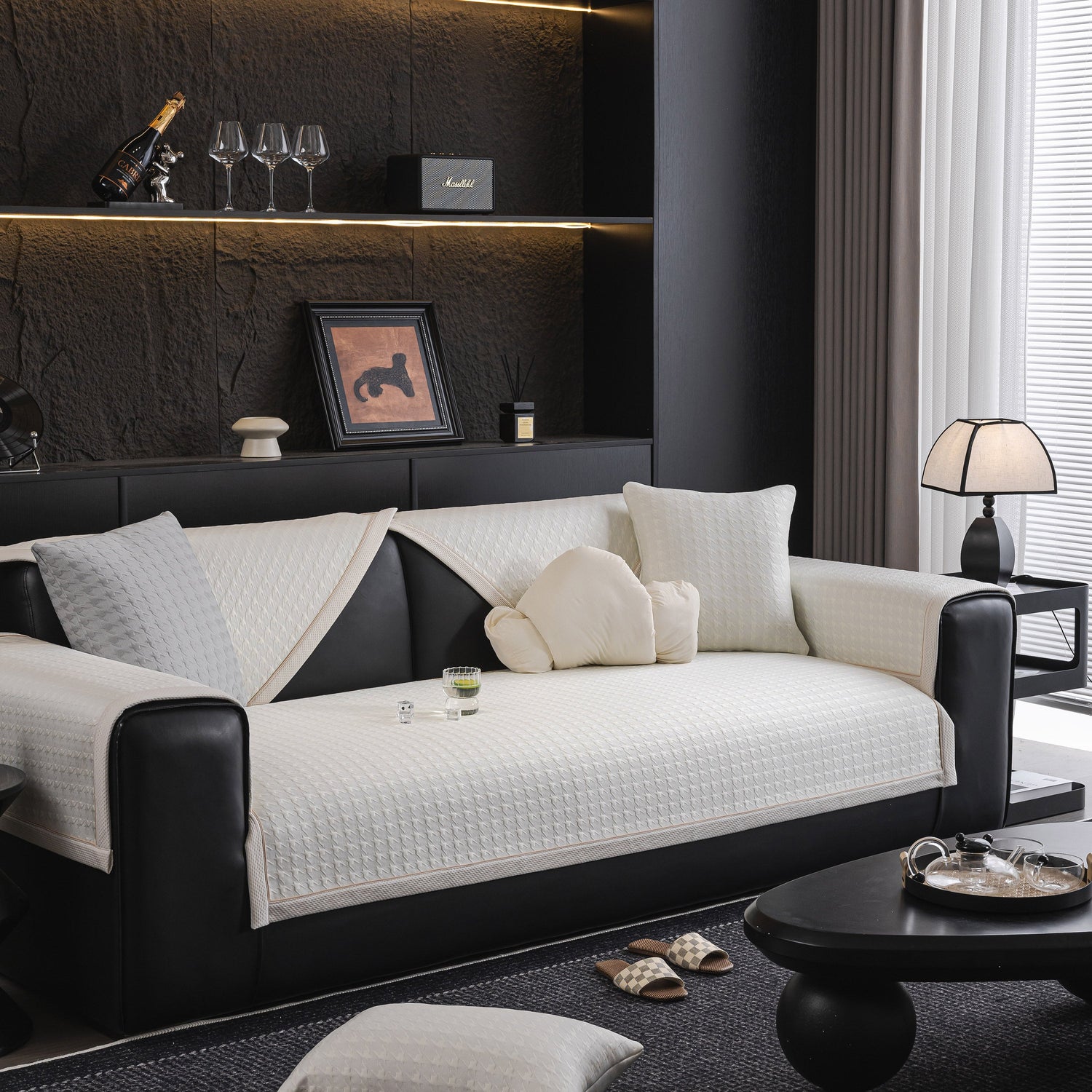 Houndstooth Ice Silk Breathable Sofa Cover, Modern Non-Slip Summer Couch Protector