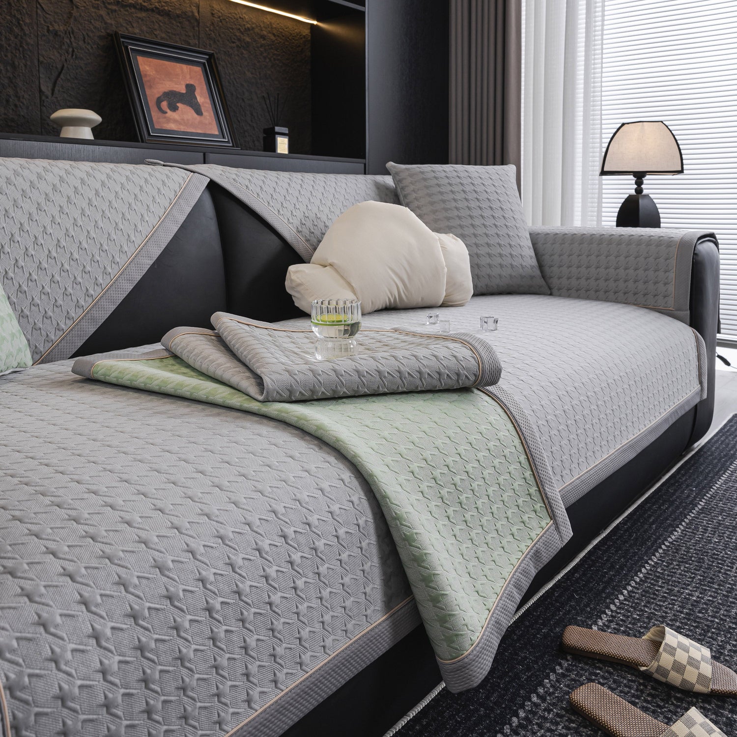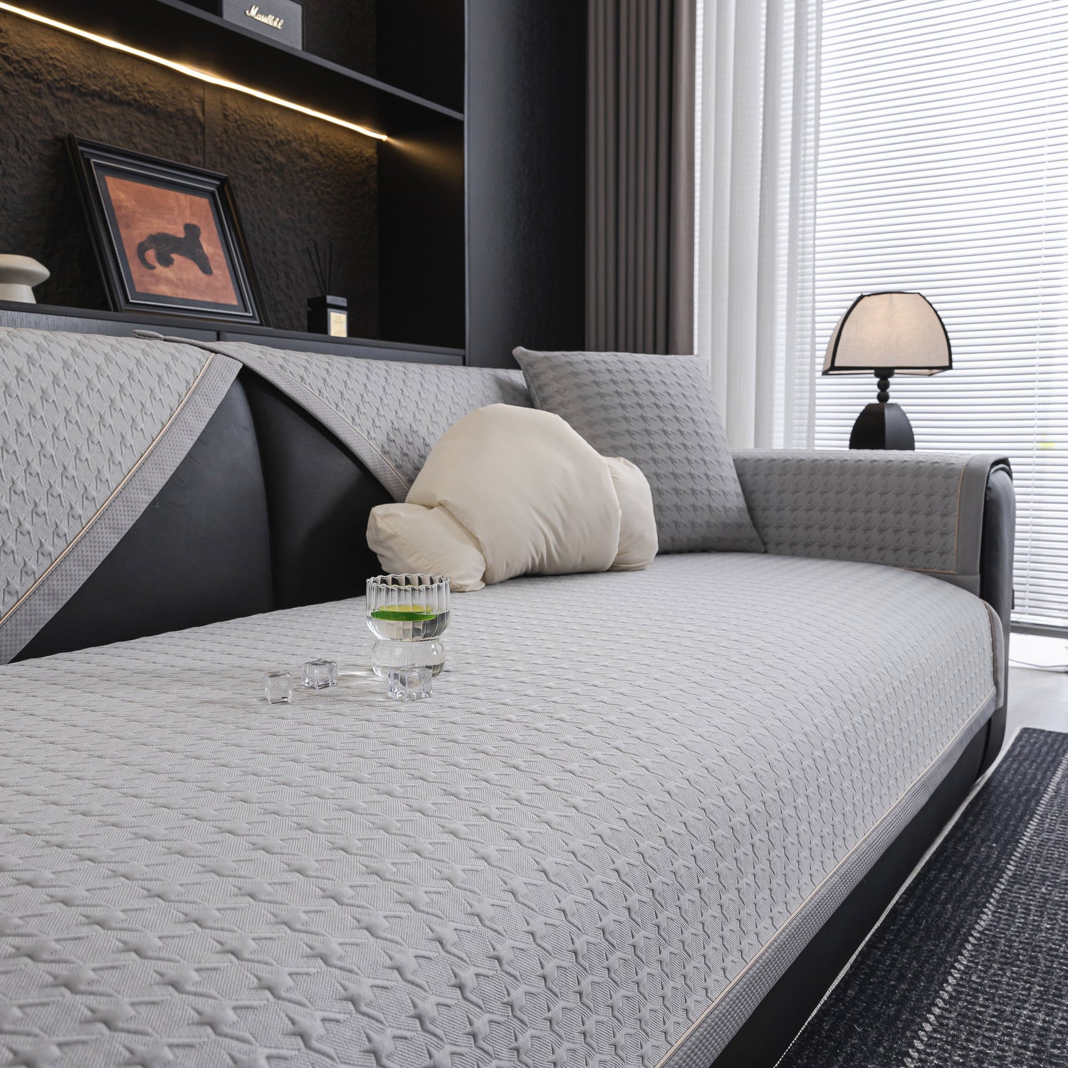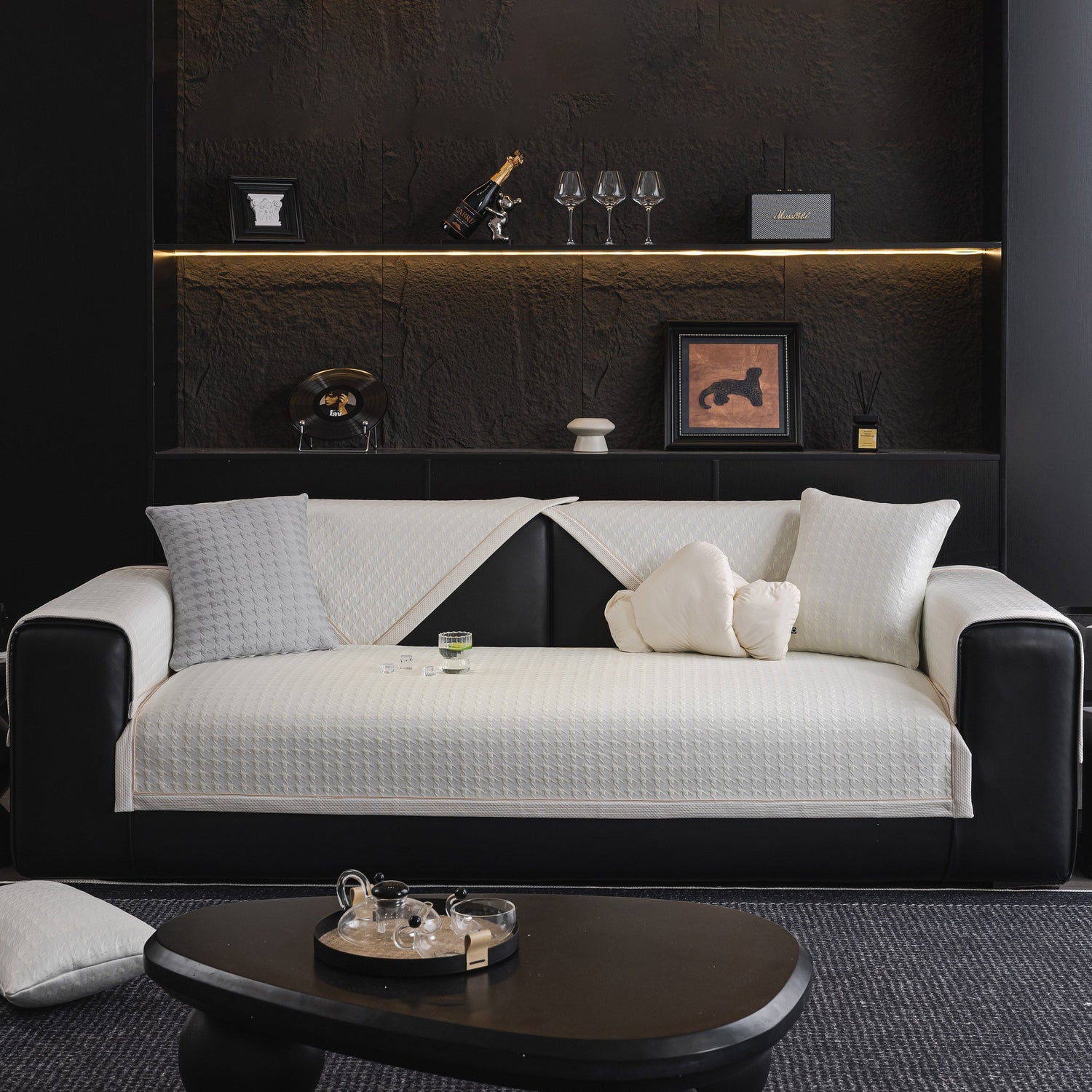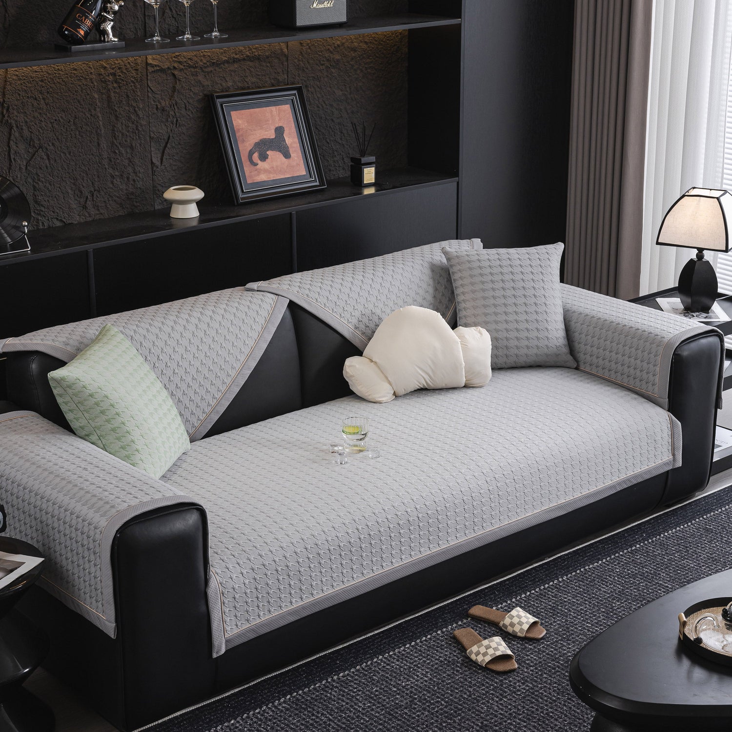 Houndstooth Ice Silk Breathable Sofa Cover, Modern Non-Slip Summer Couch Protector