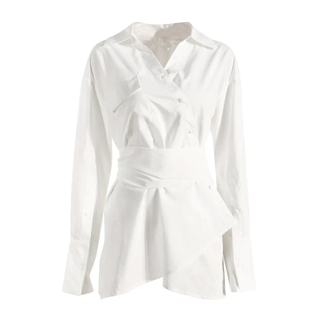 Irregular Shirt Dress for Women's Fashion - White / L is backordered and will ship as soon as it is back in stock.