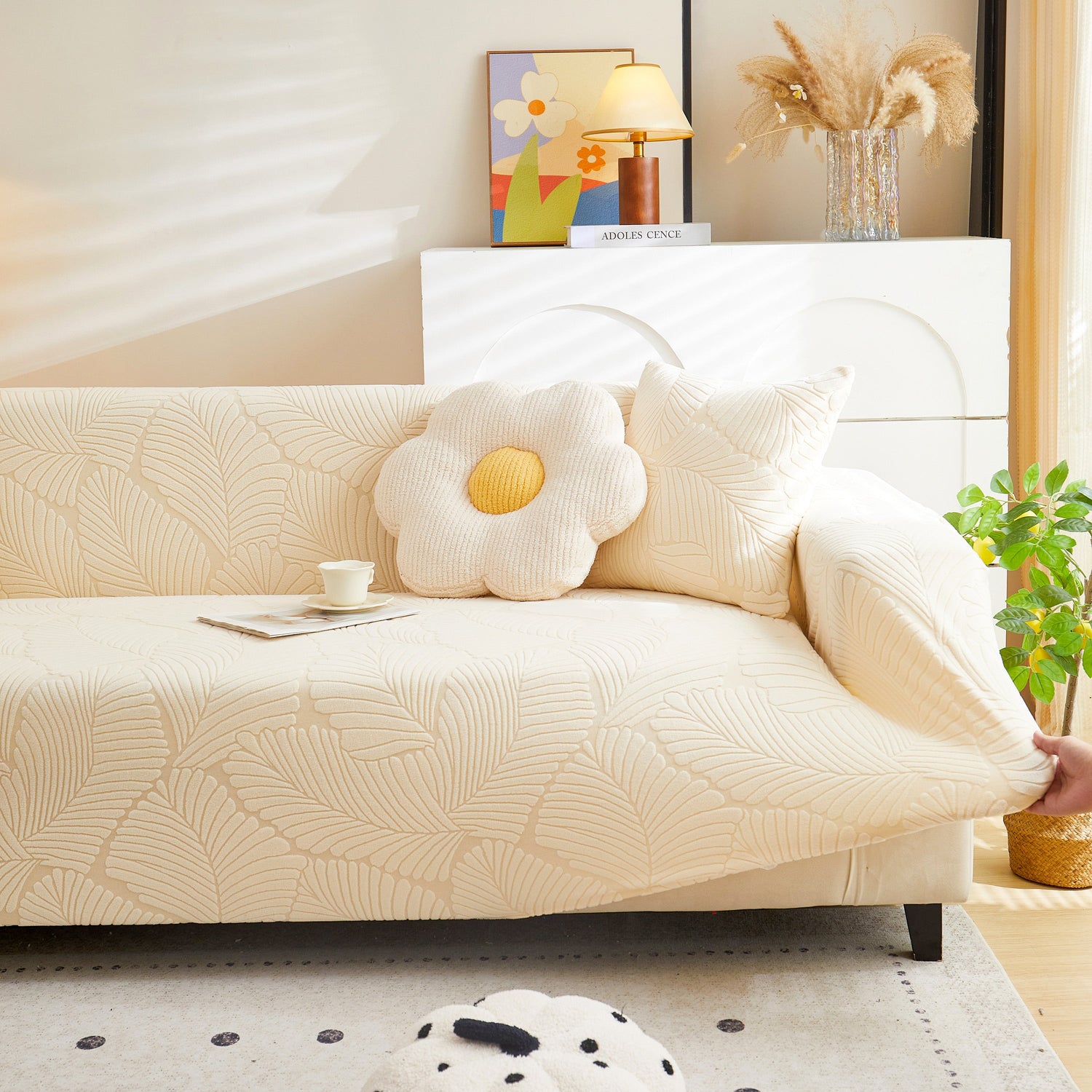 The Jacquard Leaf Stretch Sofa Protector Cover is made from high-elastic spandex blend fabric, offering a snug fit and protection against dust, pet hair, and wear. The textured jacquard leaf pattern enhances any décor, while the soft, breathable, and machine-washable fabric ensures easy maintenance. A non-slip bottom keeps it securely in place, making it a practical and stylish choice for your sofa.