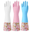 KINGFINGER 3 Pairs Rubber Cleaning Gloves Kitchen Gloves Large Dish Gloves with Flocked Cotton Liner Long cuff Household Cleaning Gloves for Washing Dishes(Blue White Pink)