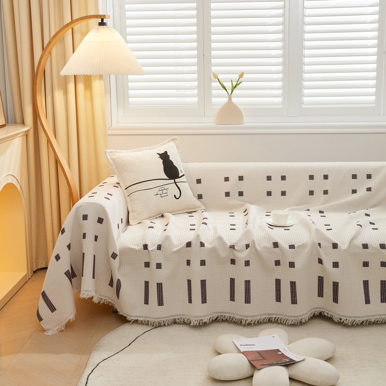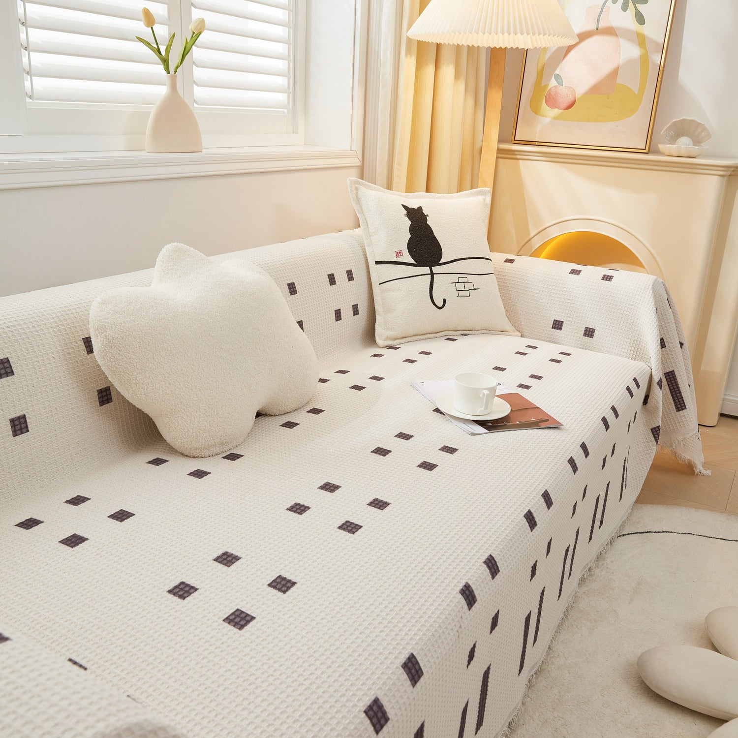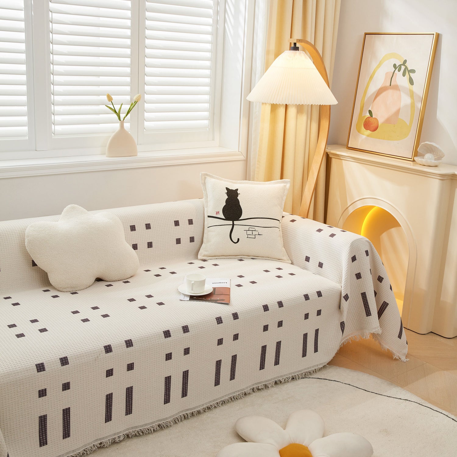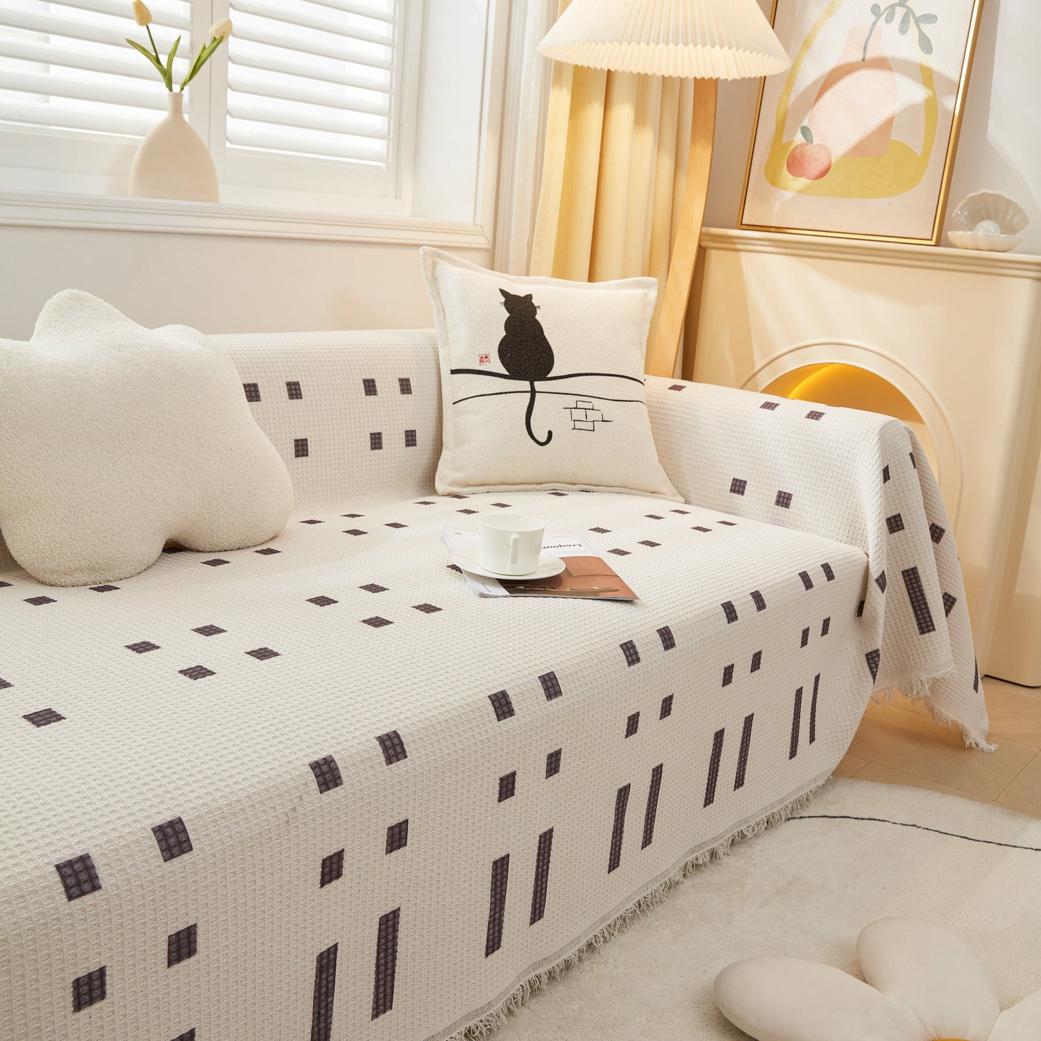 • High-quality materials: This sofa throw is crafted from a luxurious waffle fabric blend of 30% cotton and 70% polyester fiber. This combination provides a soft and delicate touch while also being resistant to cat scratches.