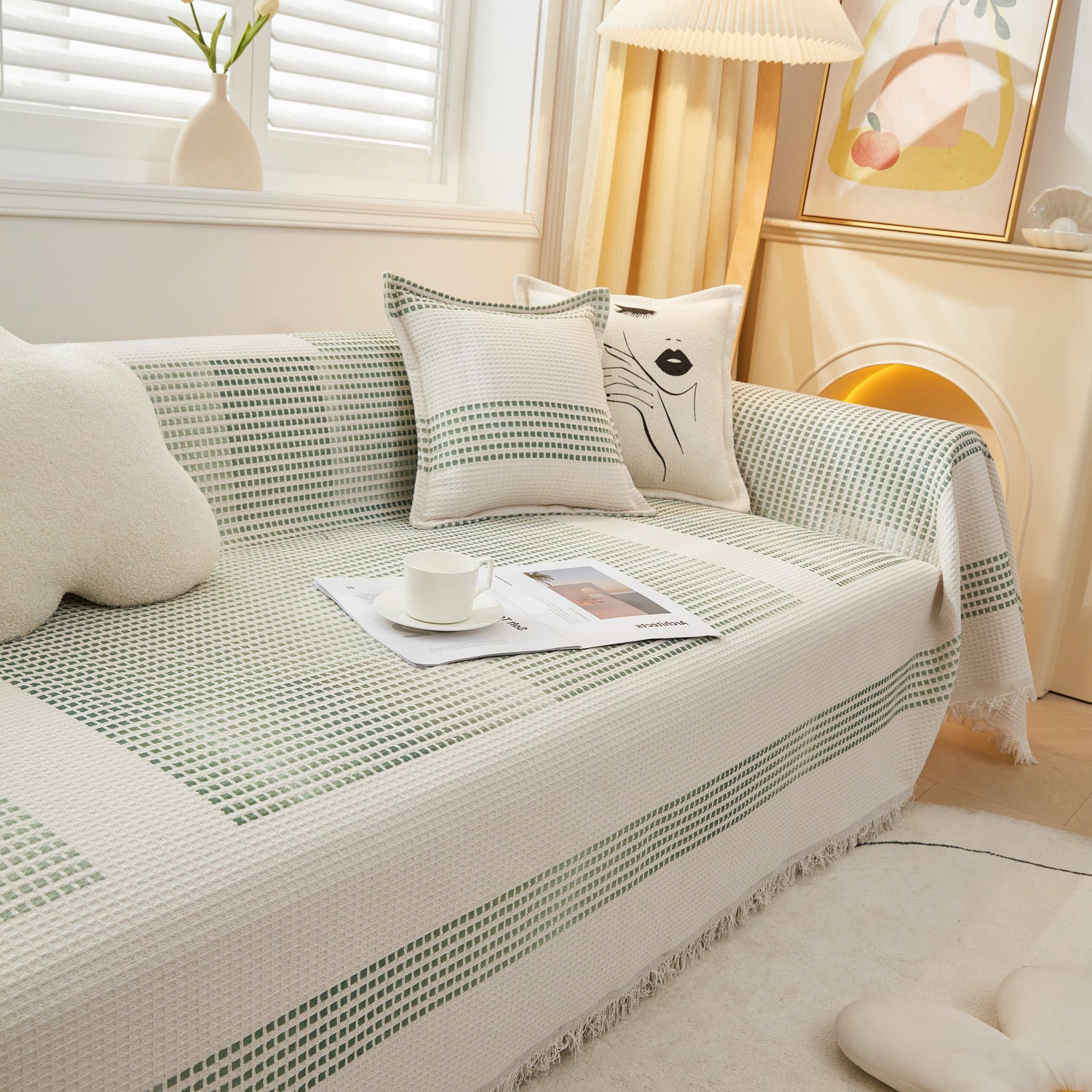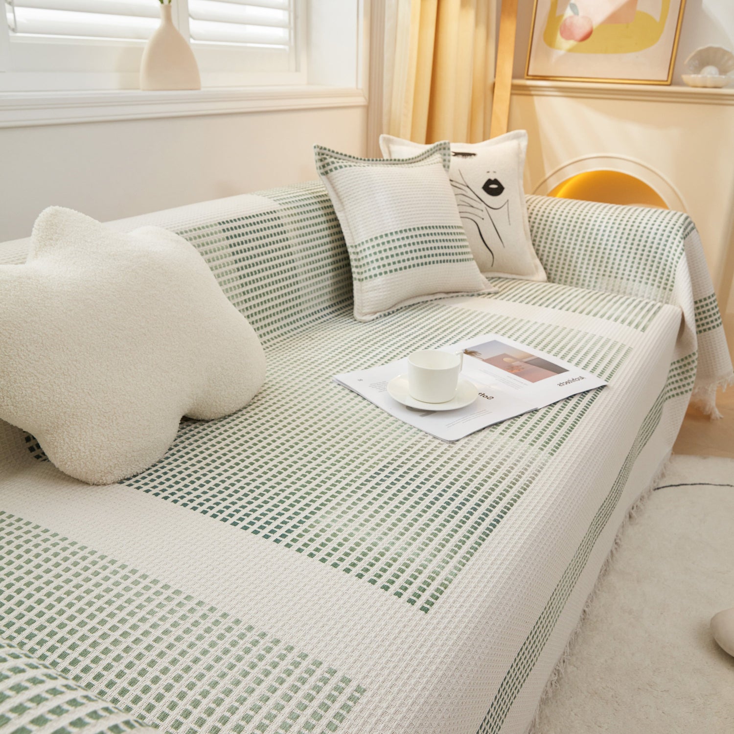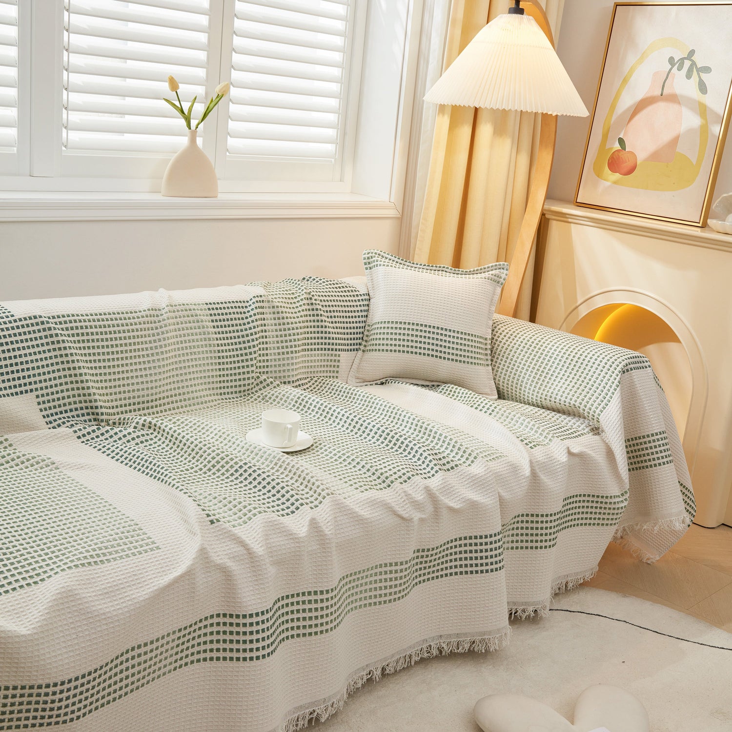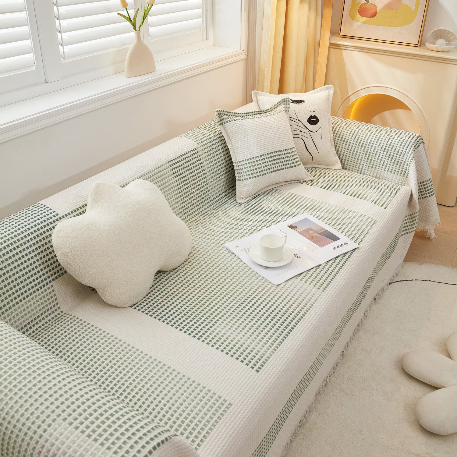 • High-quality materials: This sofa throw is crafted from a luxurious waffle fabric blend of 30% cotton and 70% polyester fiber. This combination provides a soft and delicate touch while also being resistant to cat scratches.