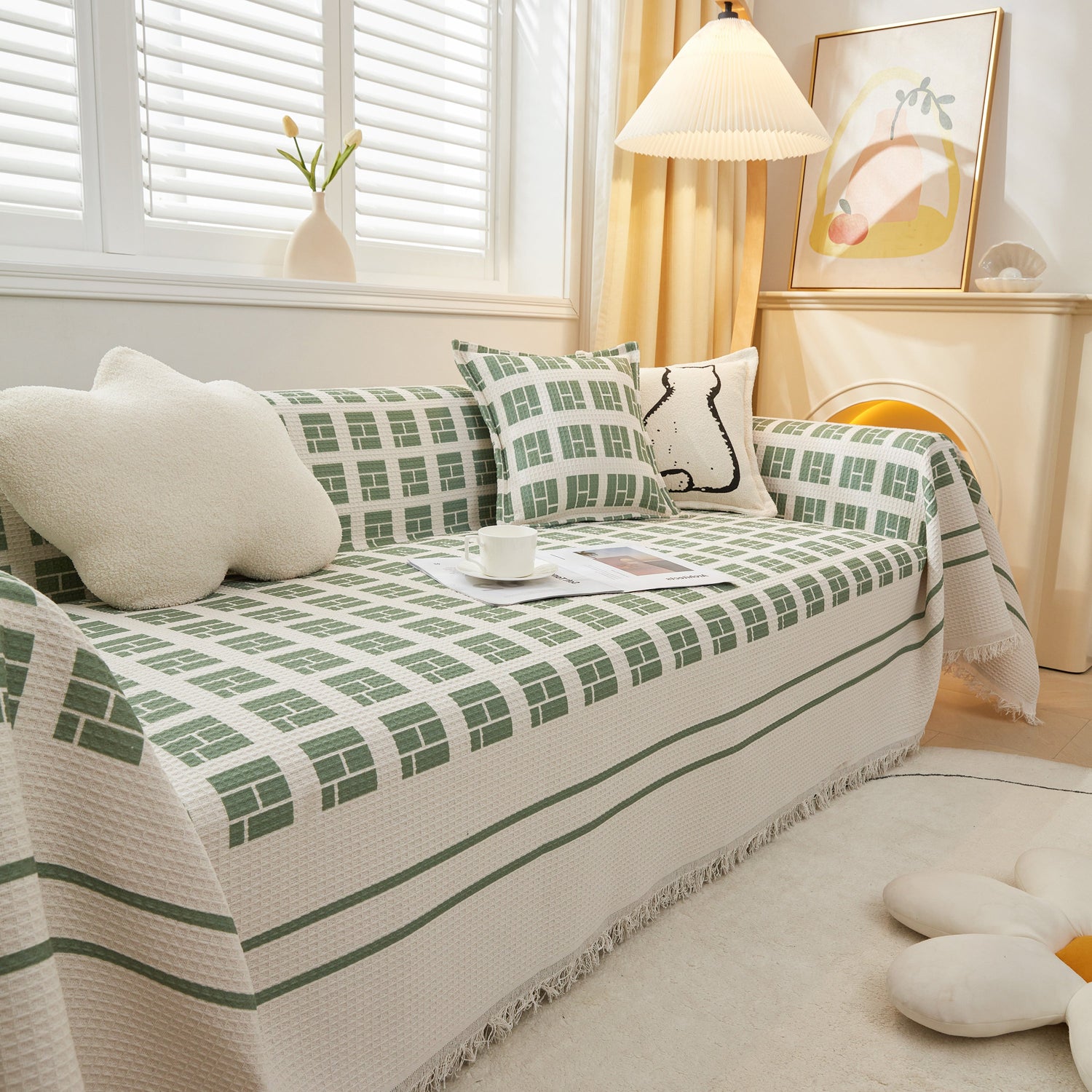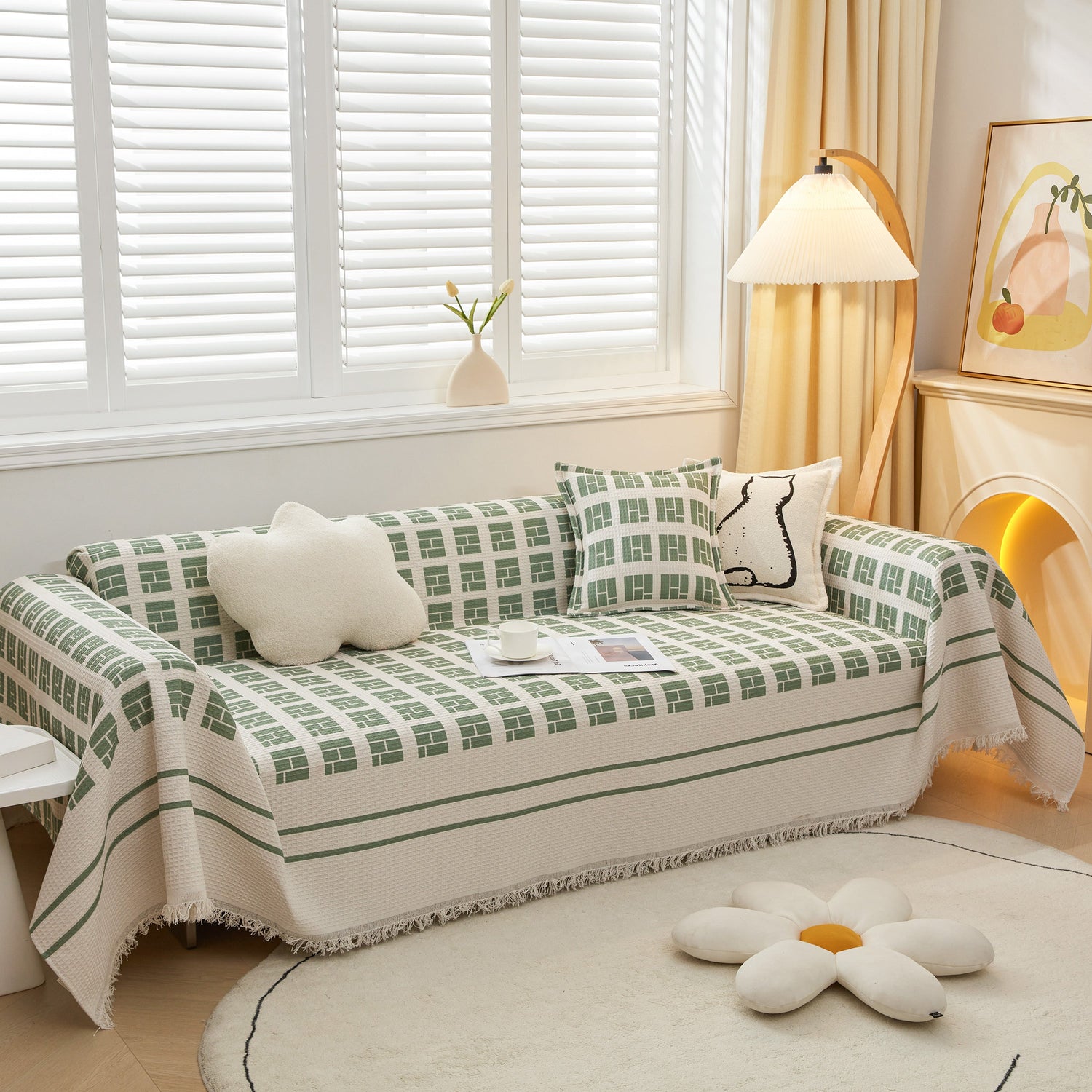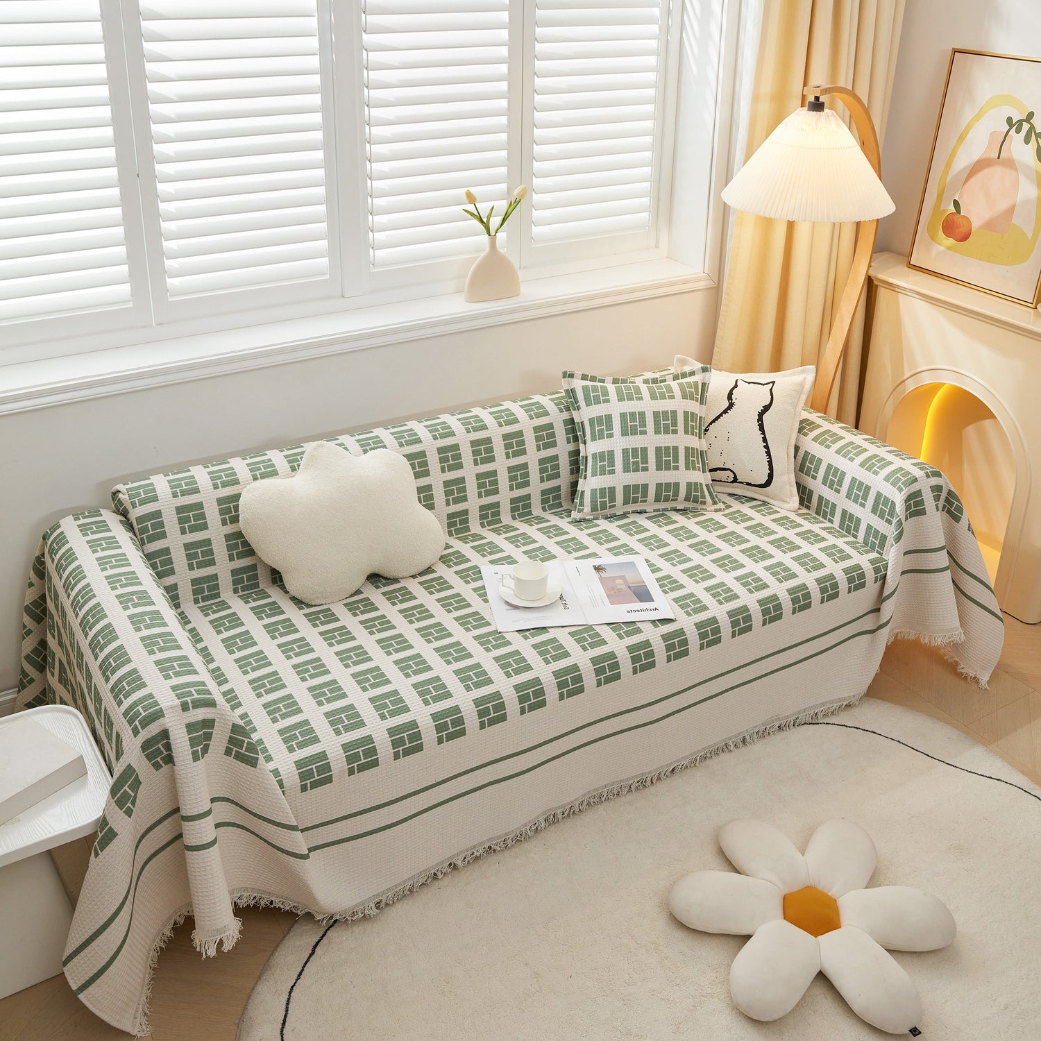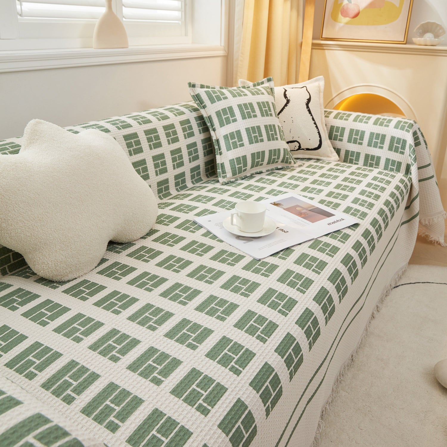 • High-quality materials: This sofa throw is crafted from a luxurious waffle fabric blend of 30% cotton and 70% polyester fiber. This combination provides a soft and delicate touch while also being resistant to cat scratches.