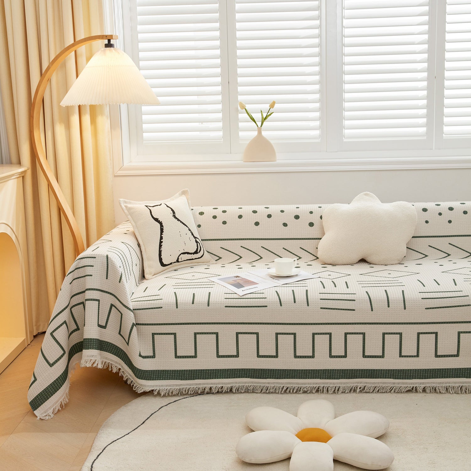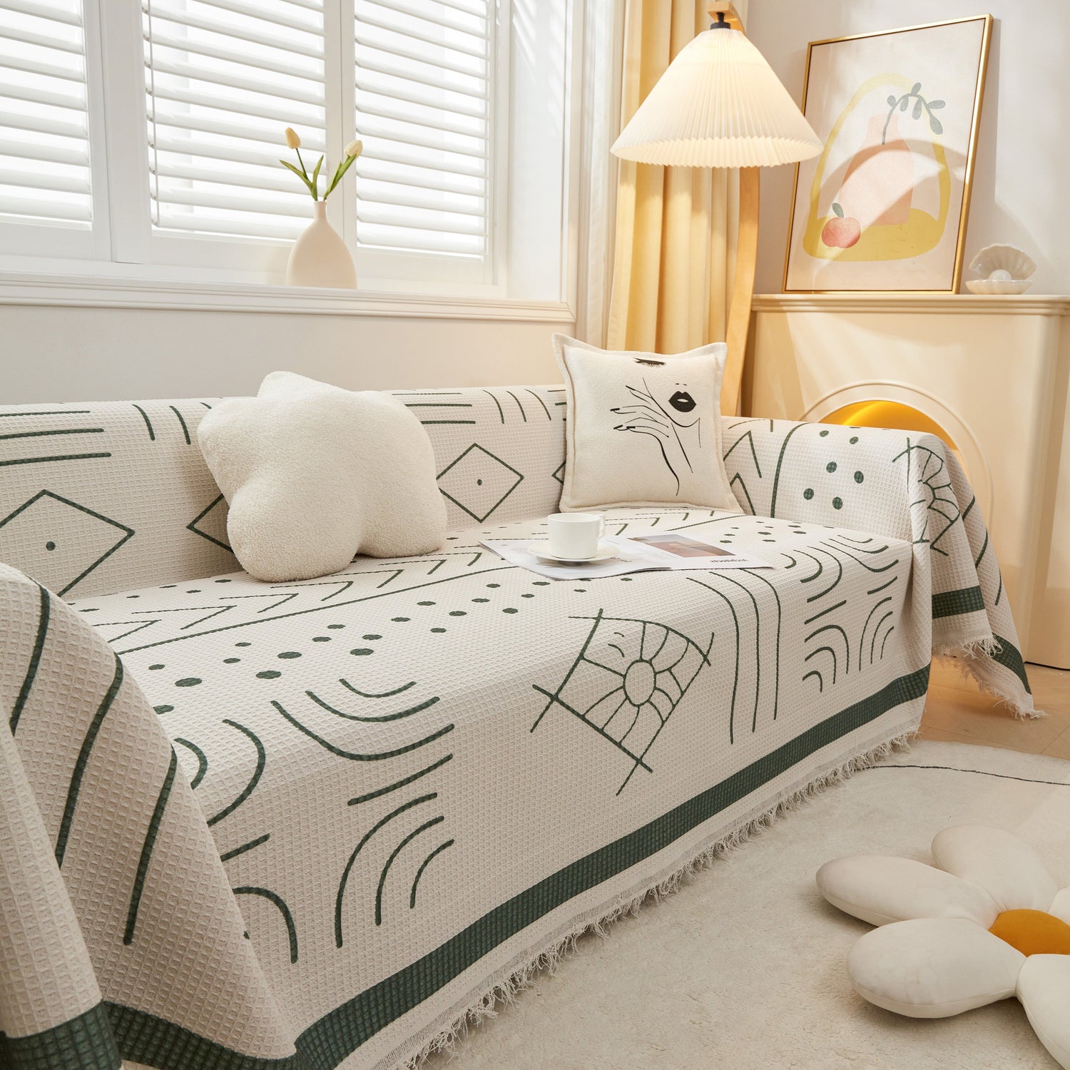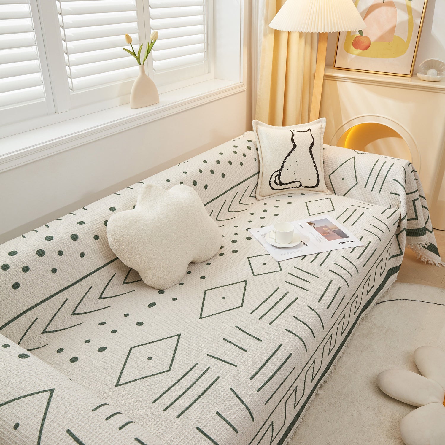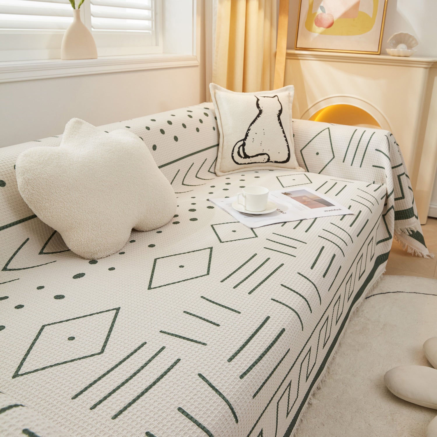 • High-quality materials: This sofa throw is crafted from a luxurious waffle fabric blend of 30% cotton and 70% polyester fiber. This combination provides a soft and delicate touch while also being resistant to cat scratches.